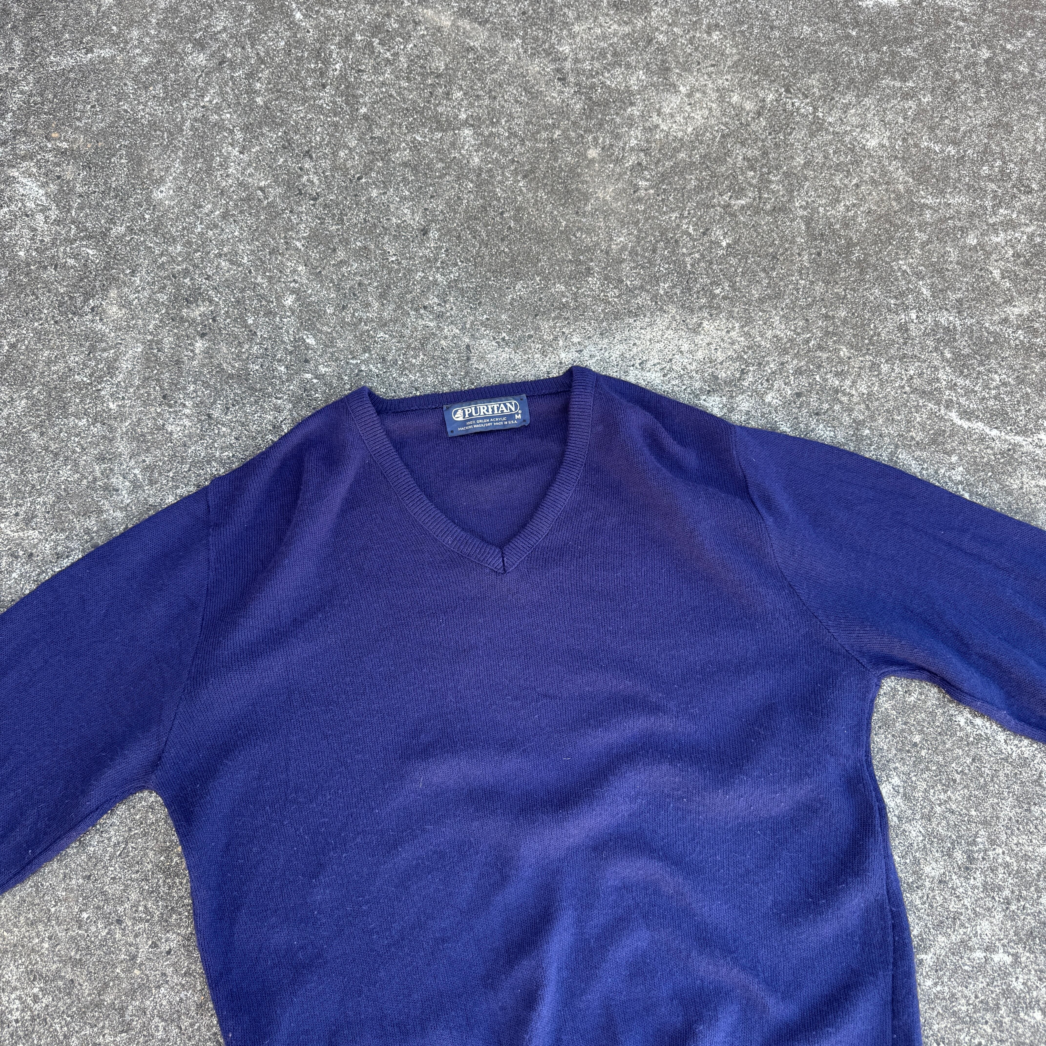 1919年創業の堂々たる老舗ブランド"ピューリタン"よりVネックのアクリルニット