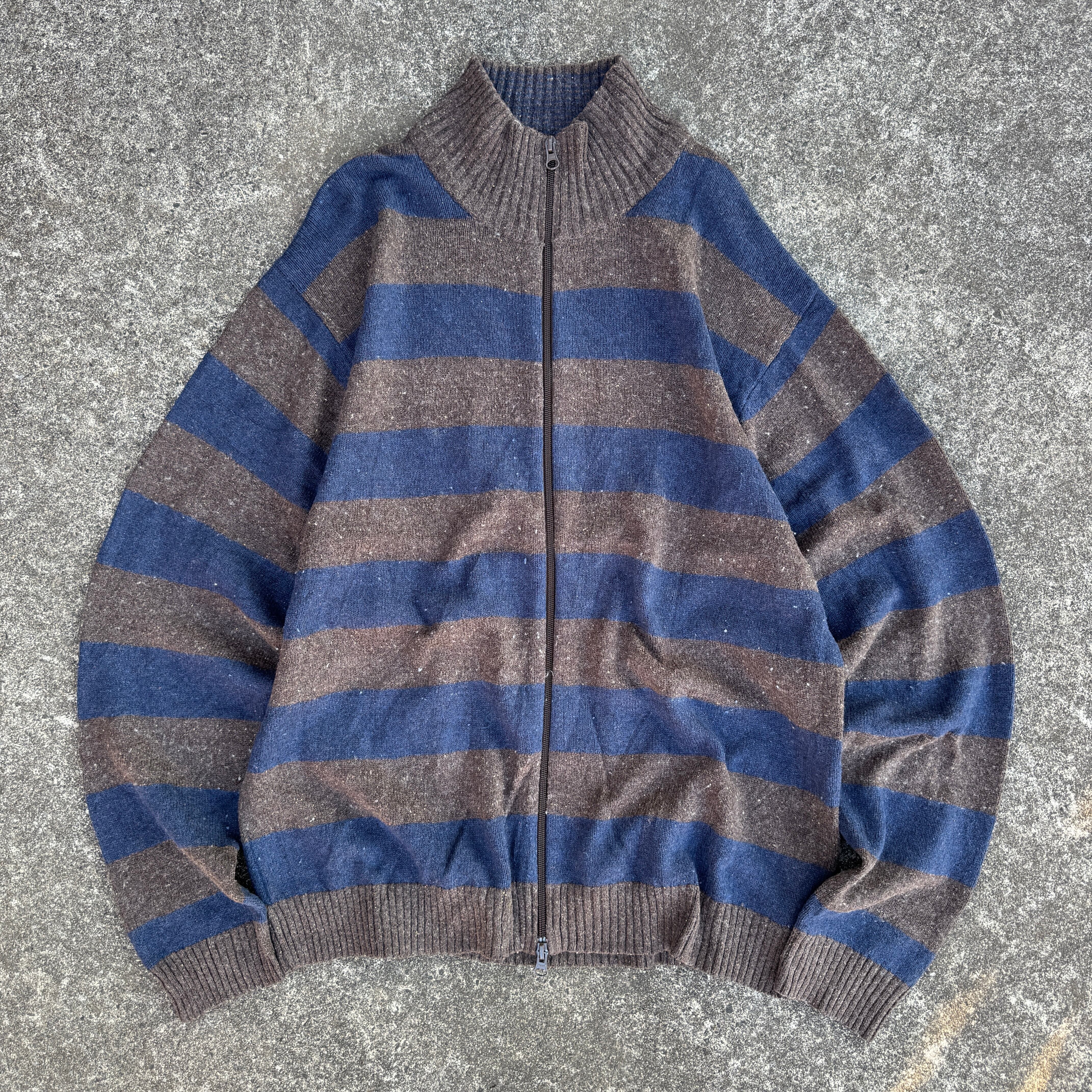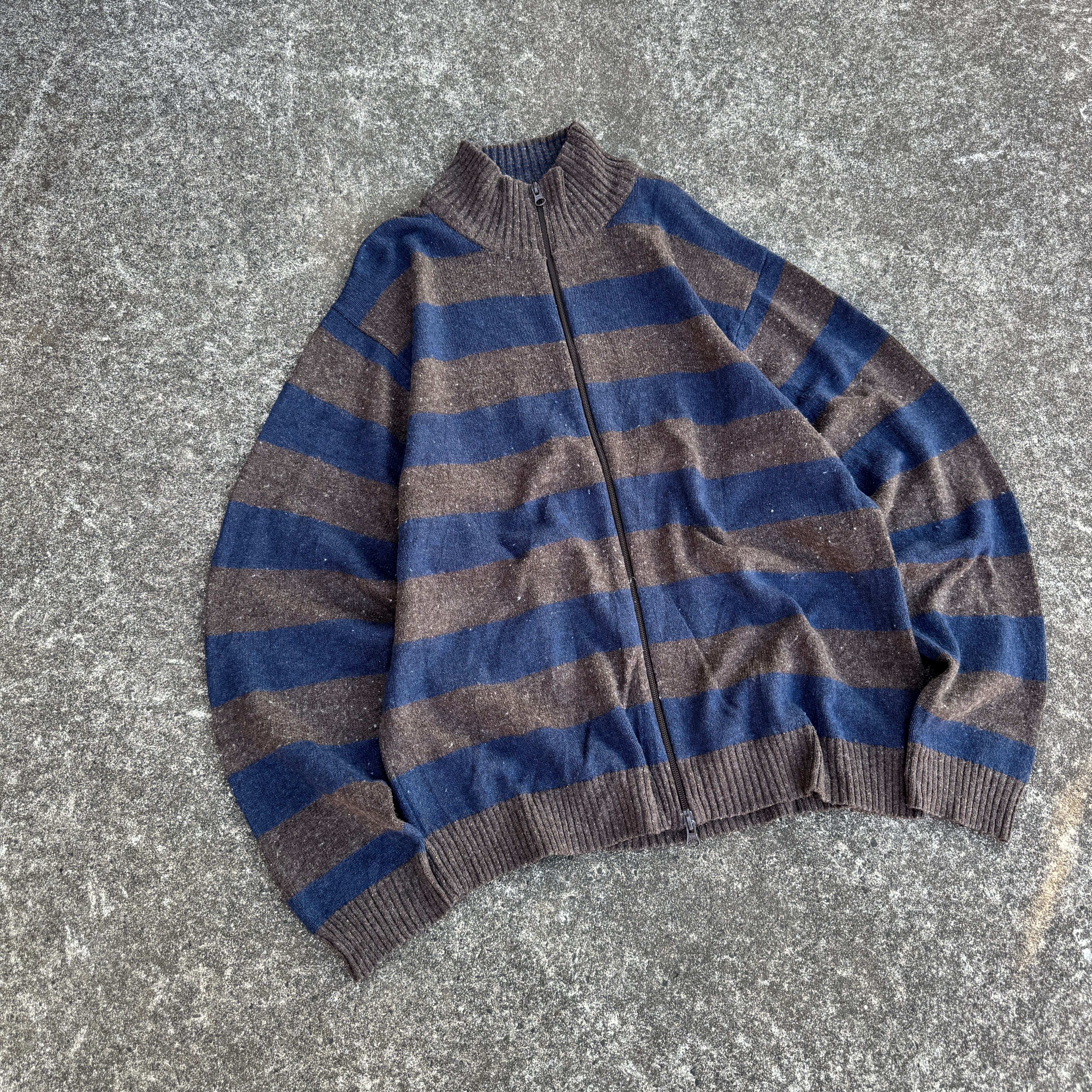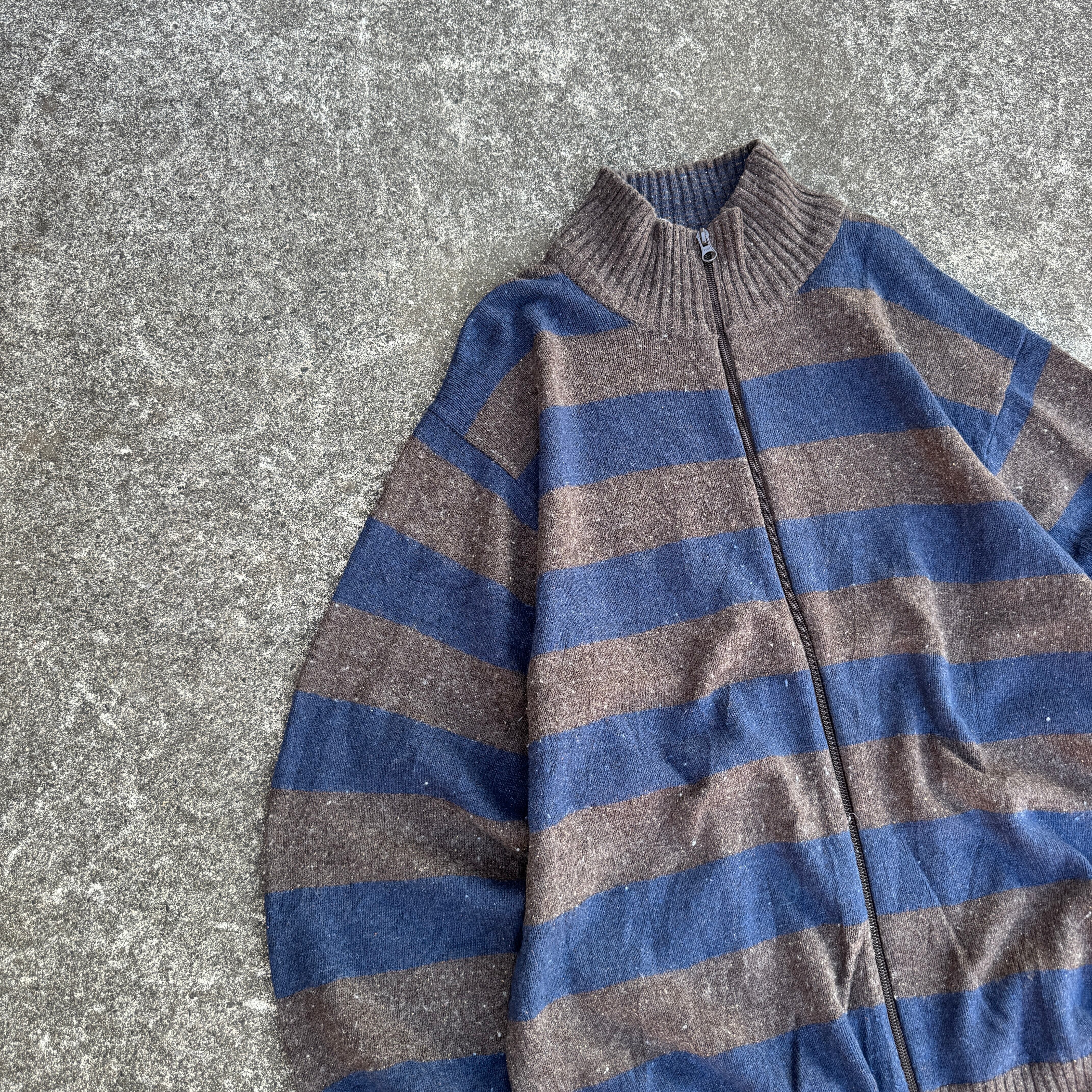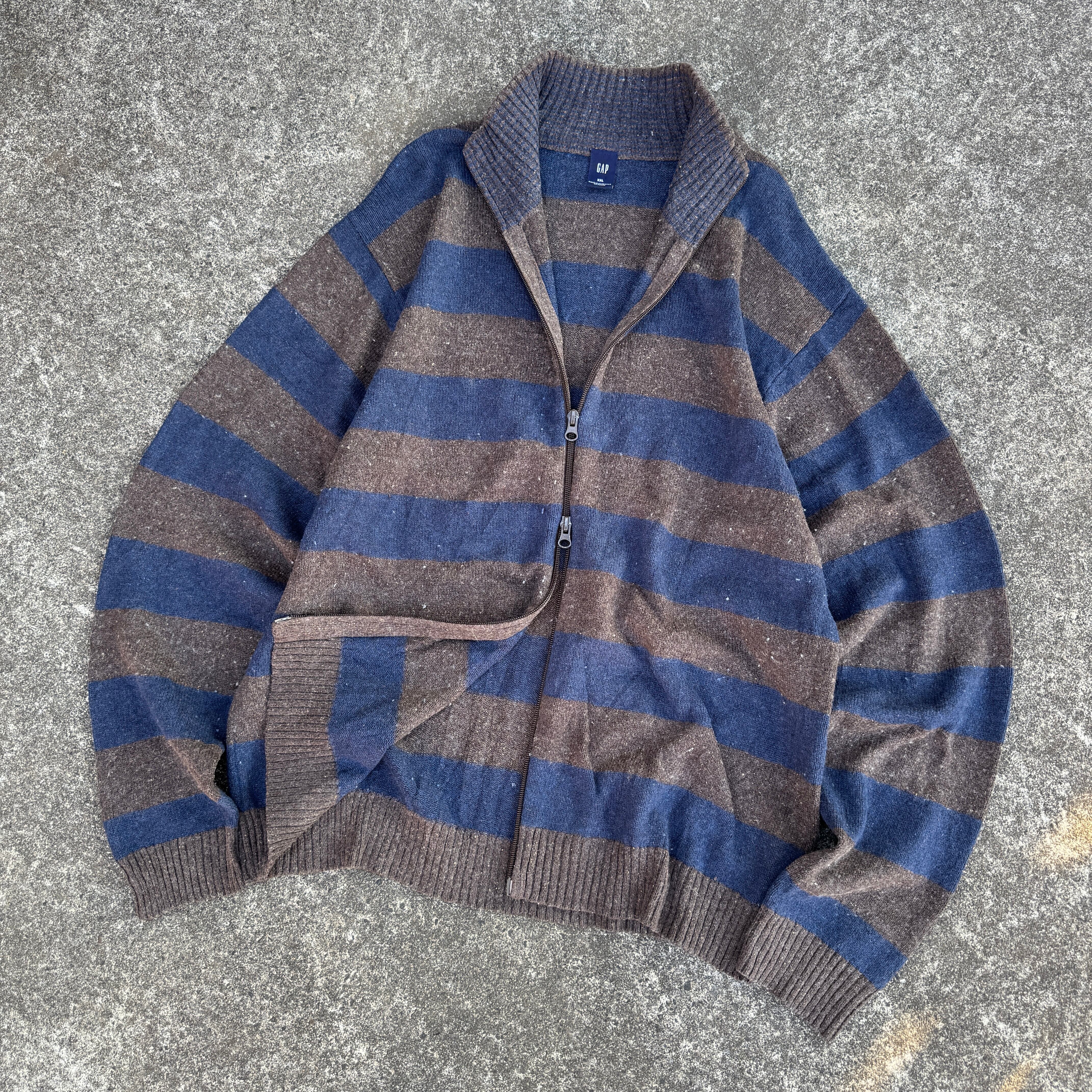 old GAP double zip up knit sweater border / オールドギャップ ダブルジップアップ ニット セーター
