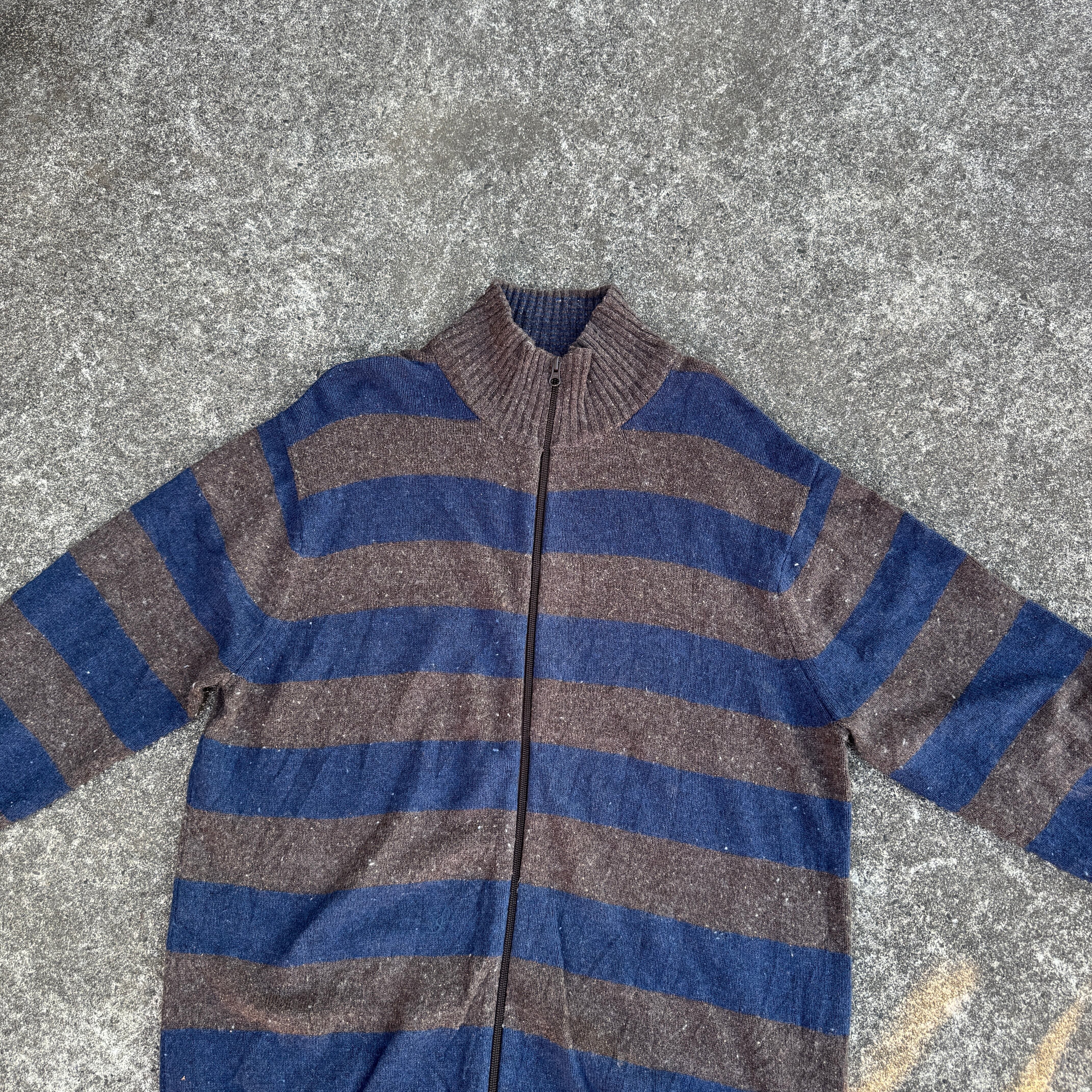 2000s "old GAP" double zip up knit sweater border / 2000年代 "オールドギャップ" ダブルジップアップ ニット セーター ボーダー