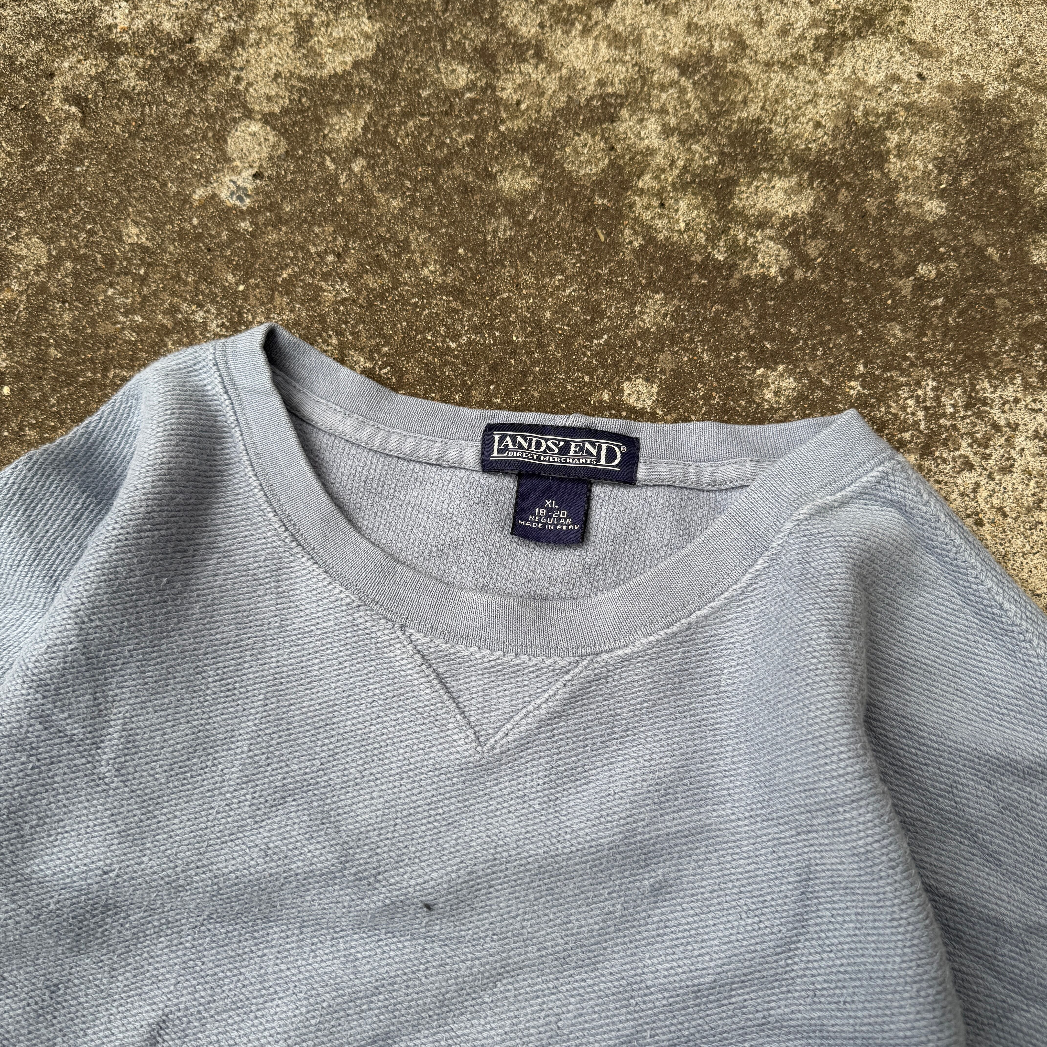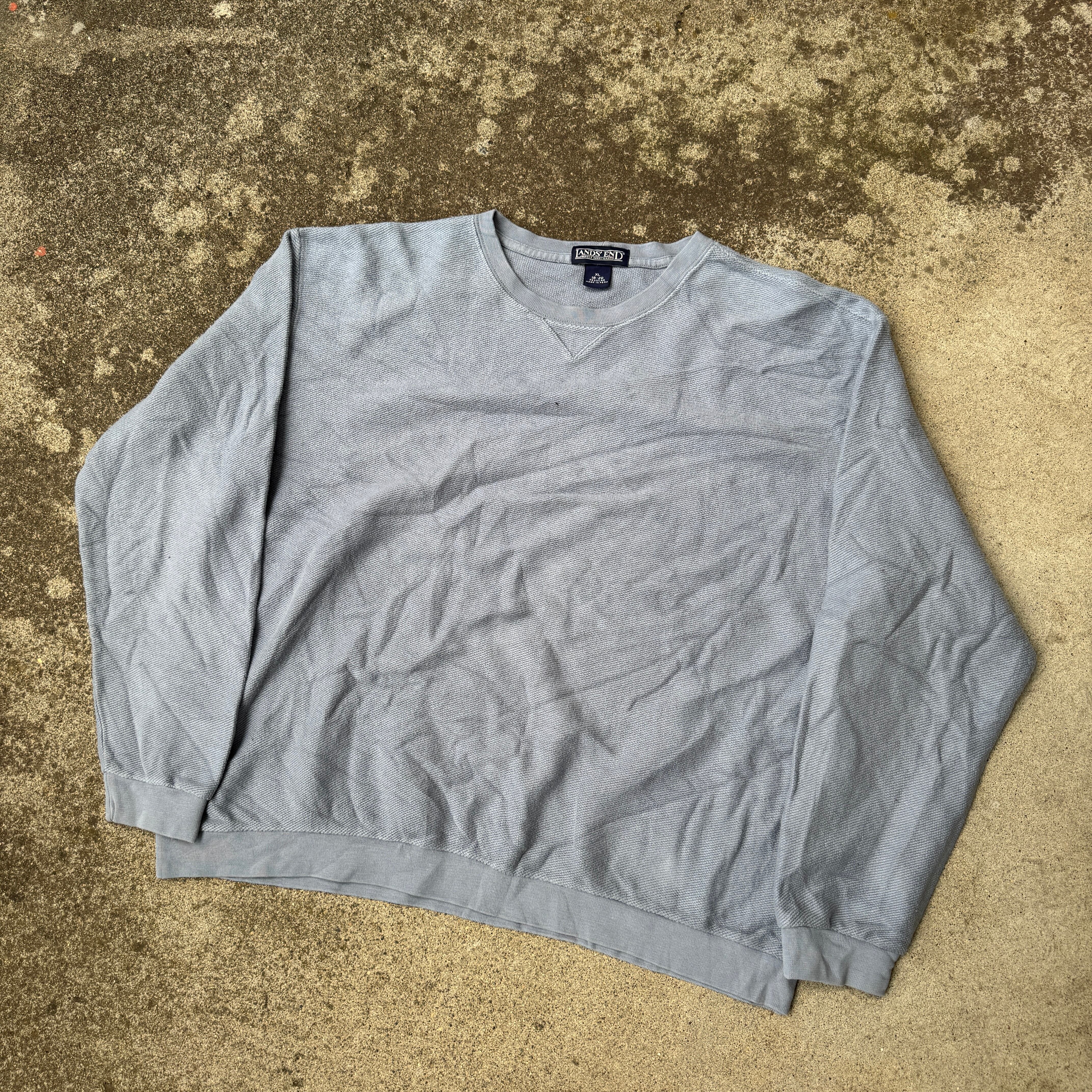 LANDS'END cotton knit sweater sweat pique / ランズエンド コットンニット セーター スウェット 鹿の子 前V