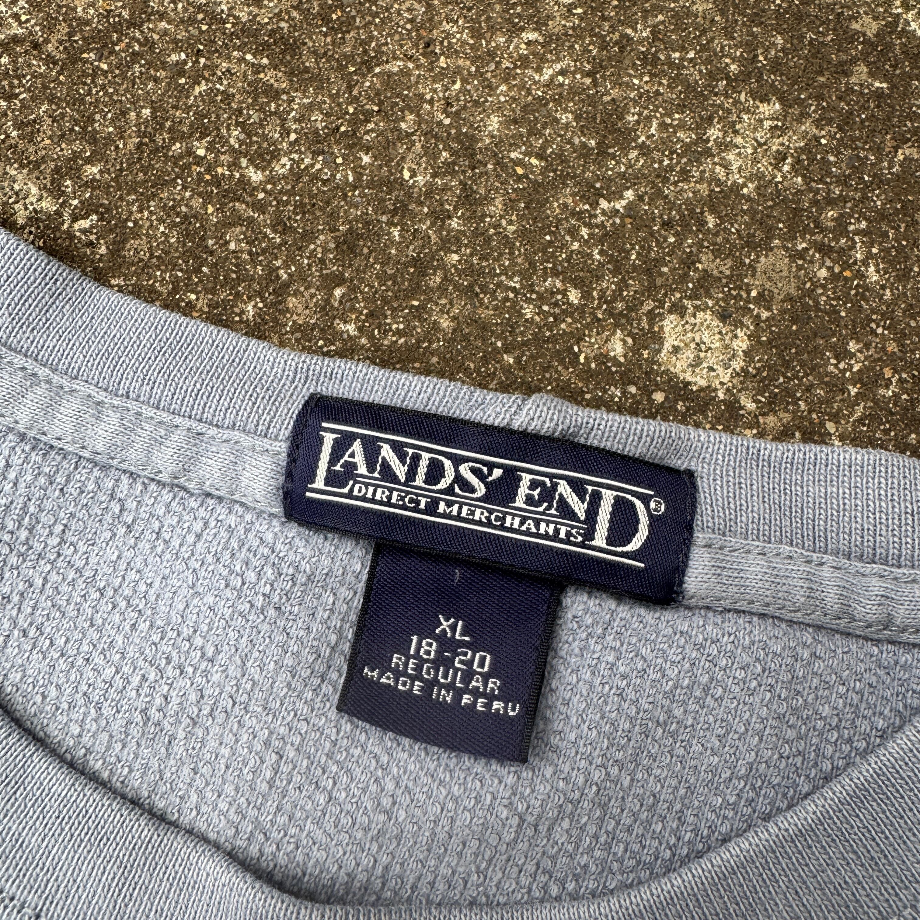 2000s LANDS' END cotton knit pique sweat kanoko / 2000年代 "ランズエンド" コットンニット 鹿の子 Vネック