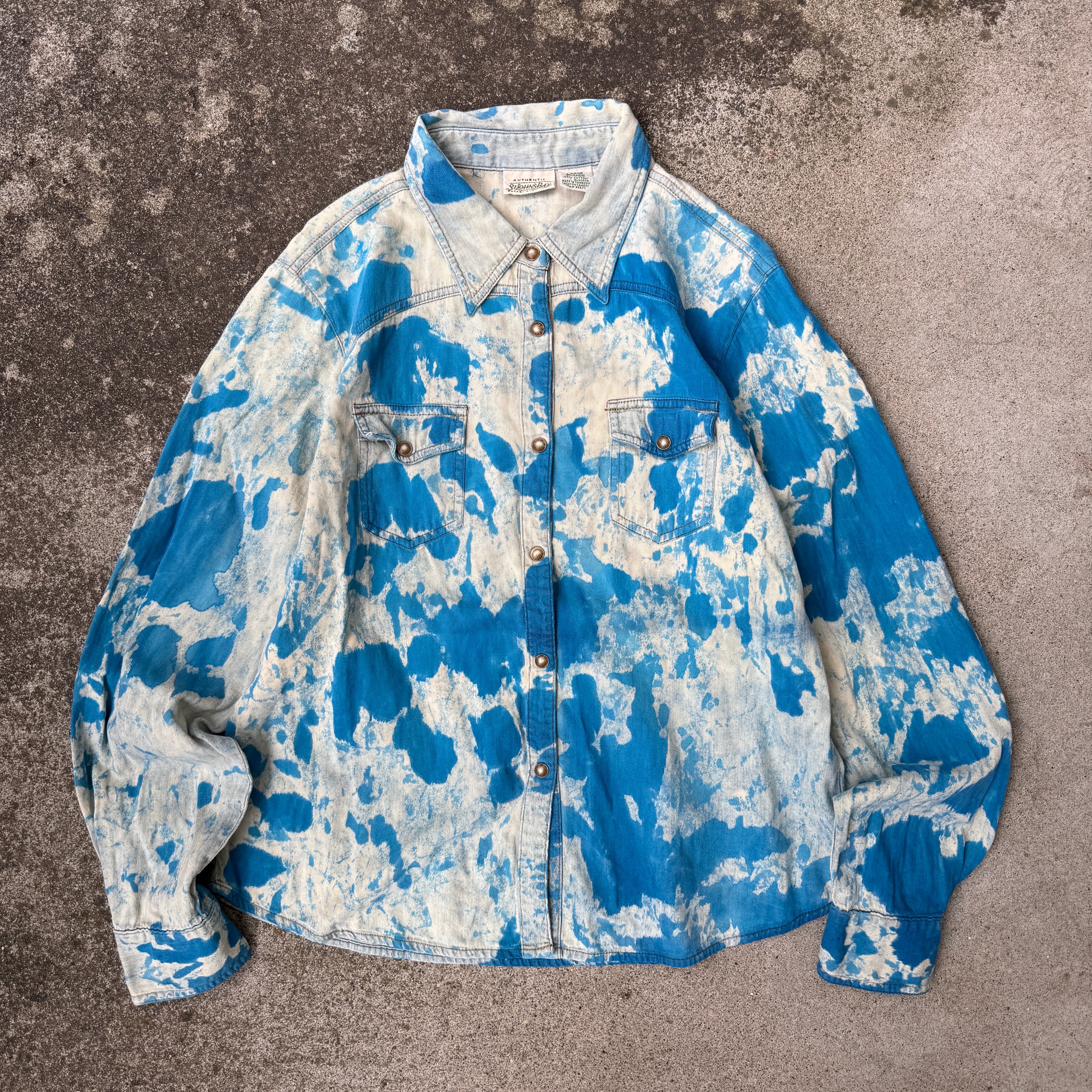 1990's "stjohn'sbay" L/S breach shirt / 90年代 "セントジョンズベイ" 長袖 シャツ ブリーチ タイダイ