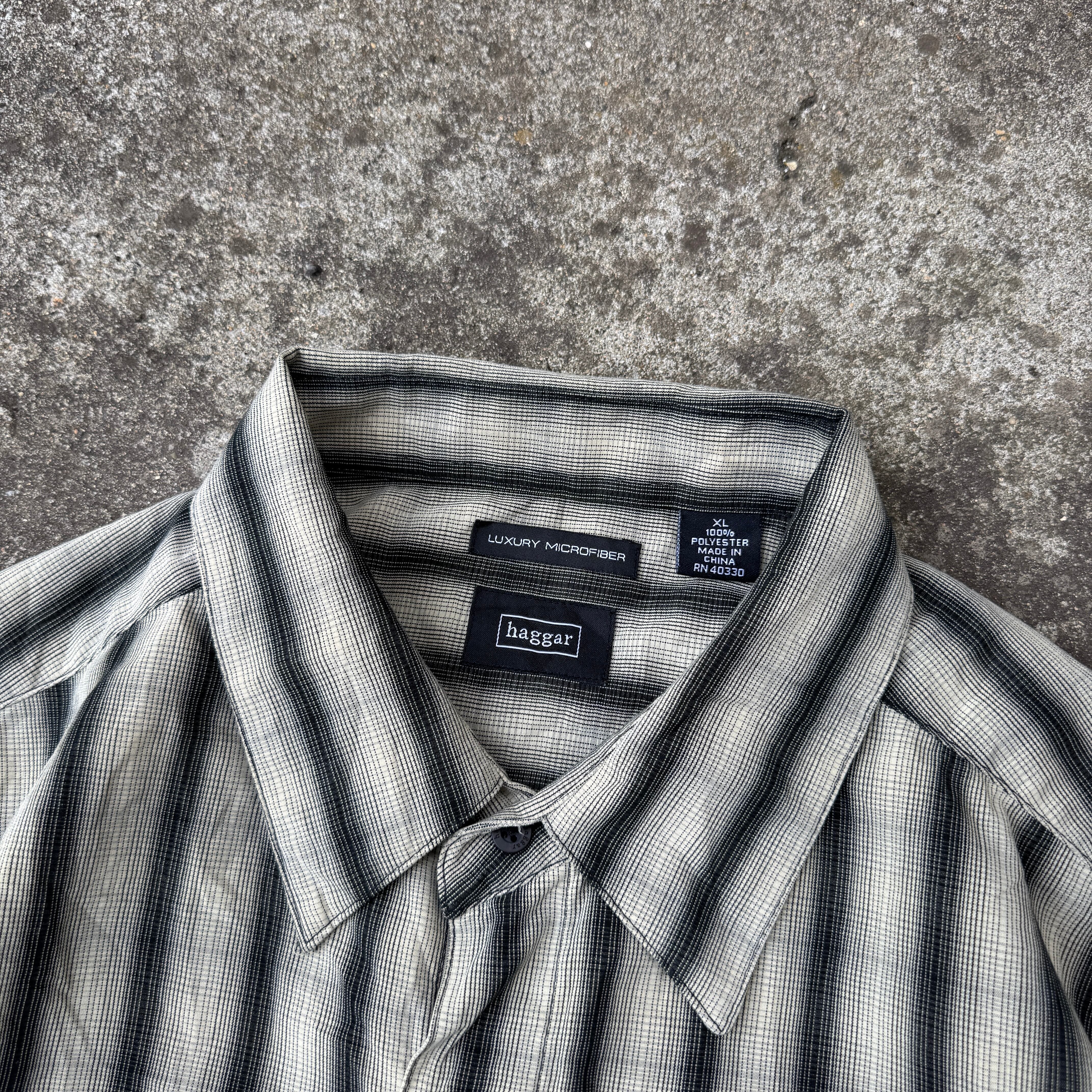 2000's "haggar" S/S shirt ombre shadow check / 2000年代 "ハガー" 半袖シャツ オンブレチェック シャドーチェック