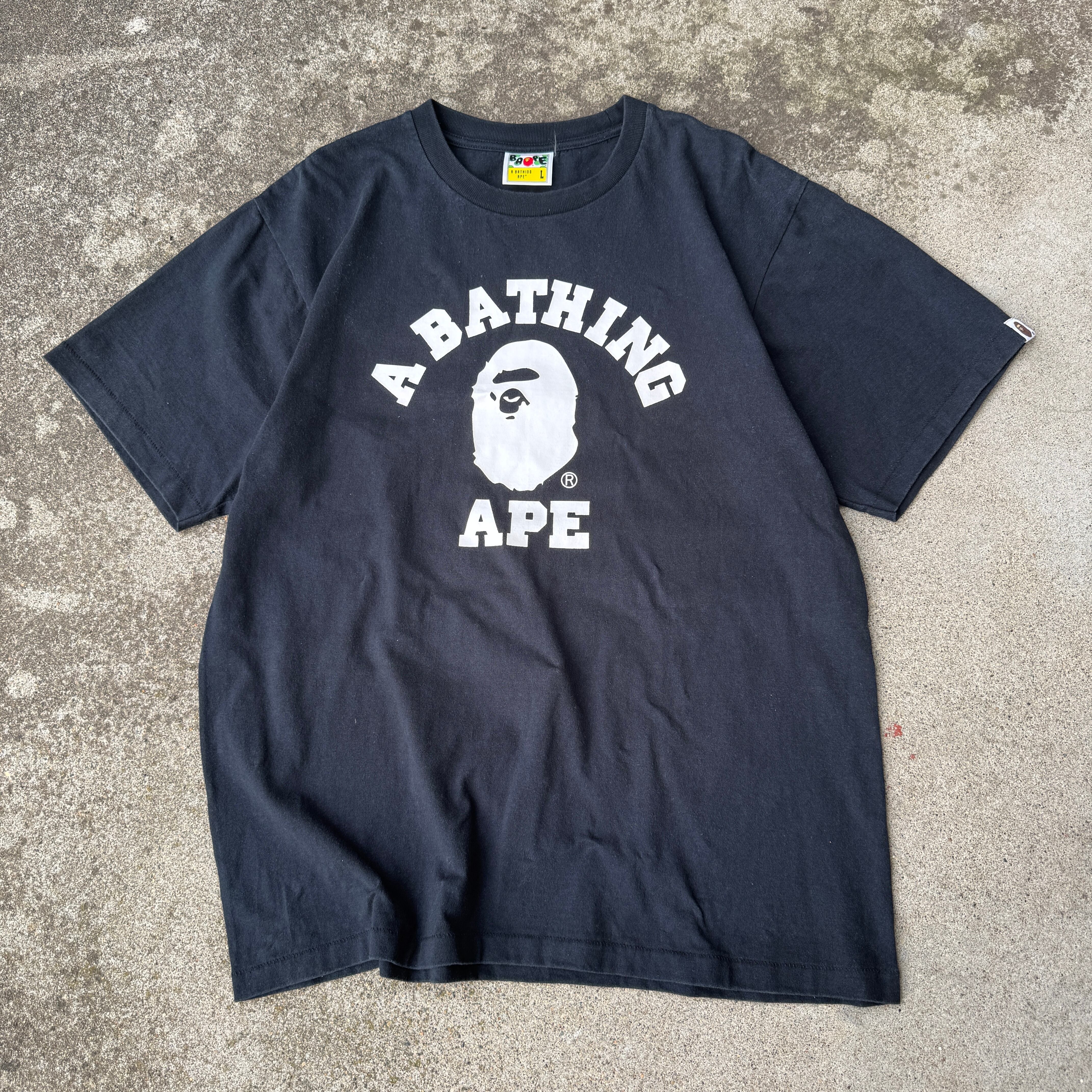 1990's~ "A BATHING APE" S/S T-shirt single stitch / 90年代~ "アベイシングエイプ" 半袖 Tシャツ 裾袖シングル