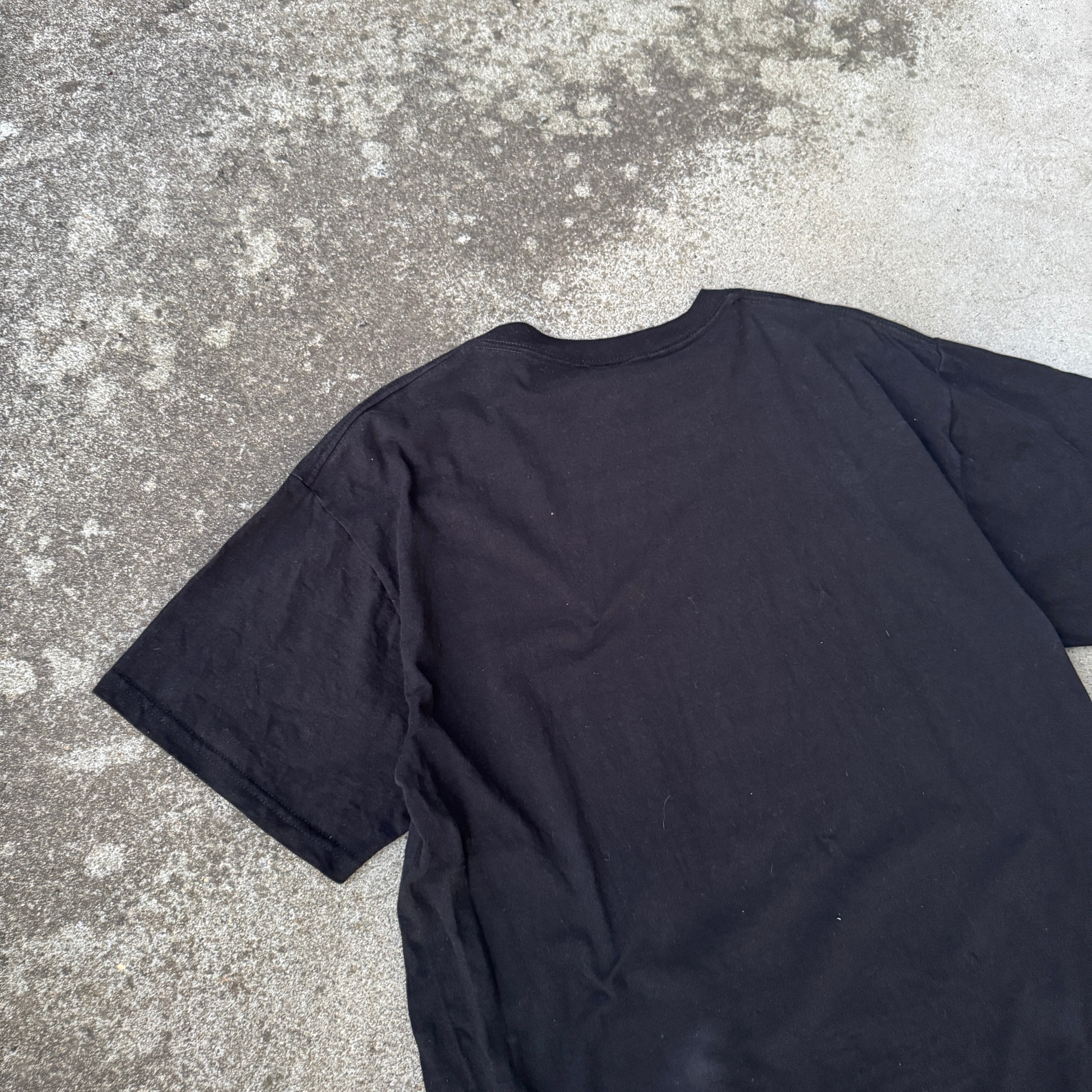 DELTA製のブラックTシャツに、シンプルながら強烈な英字メッセージがプリントされた一点物のアイテム。