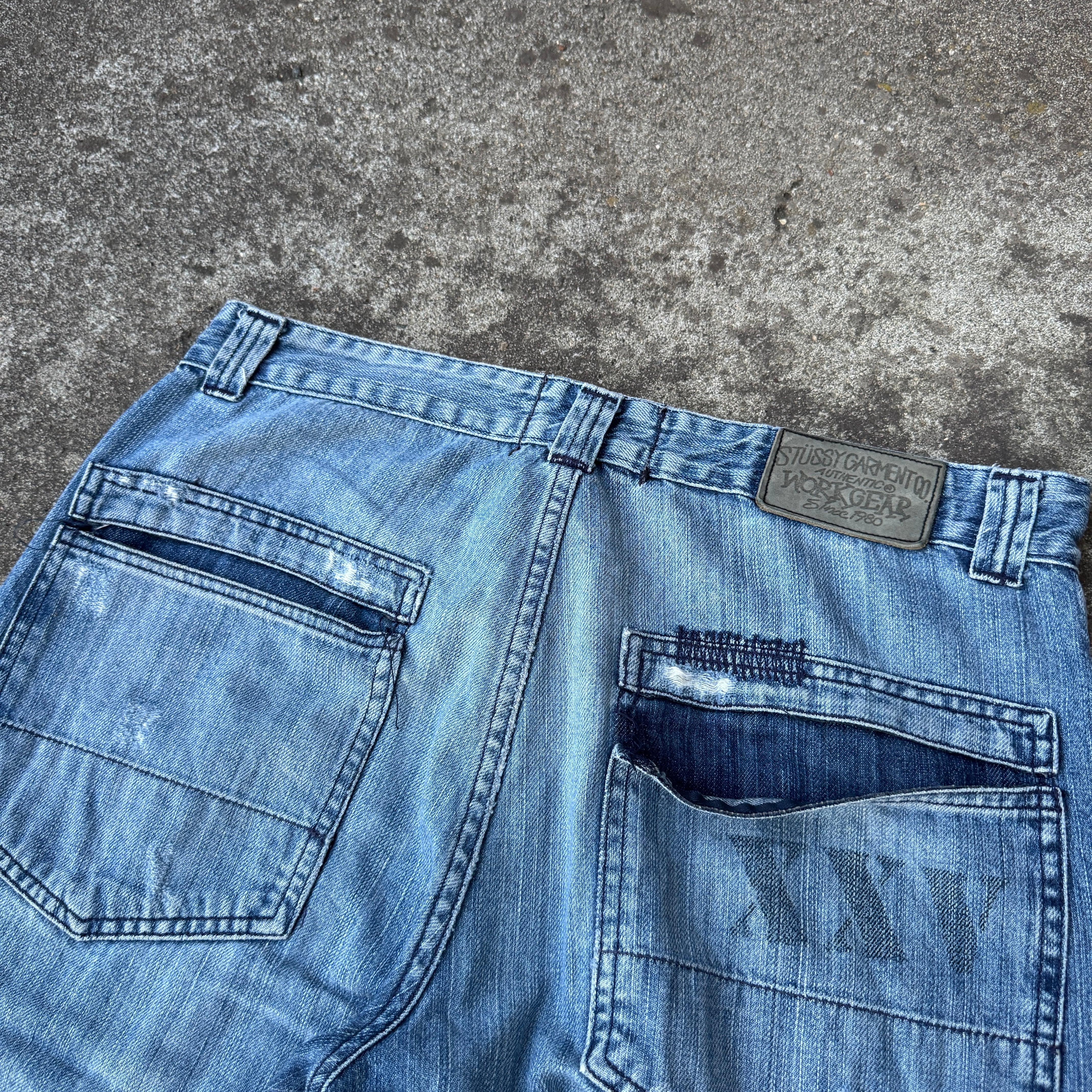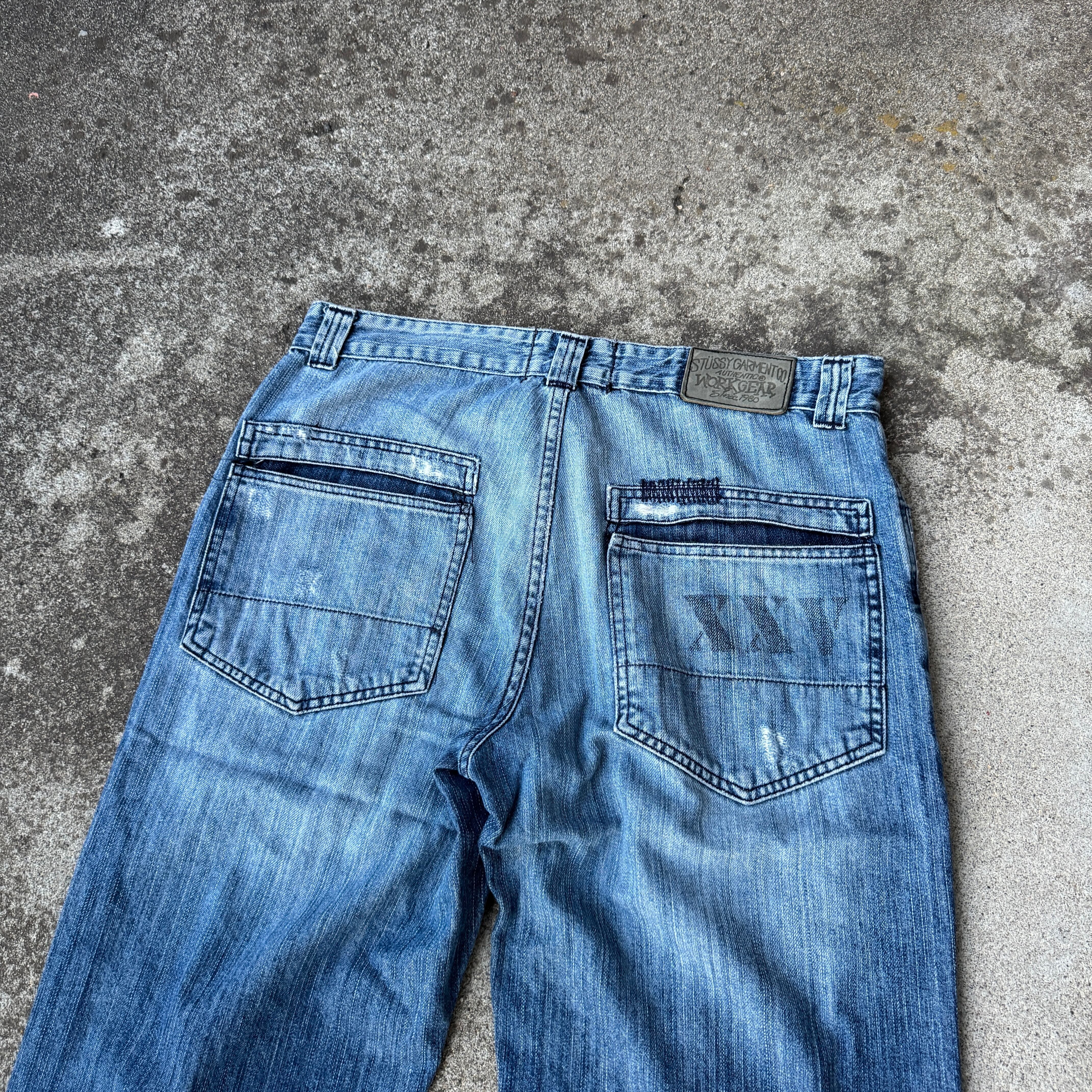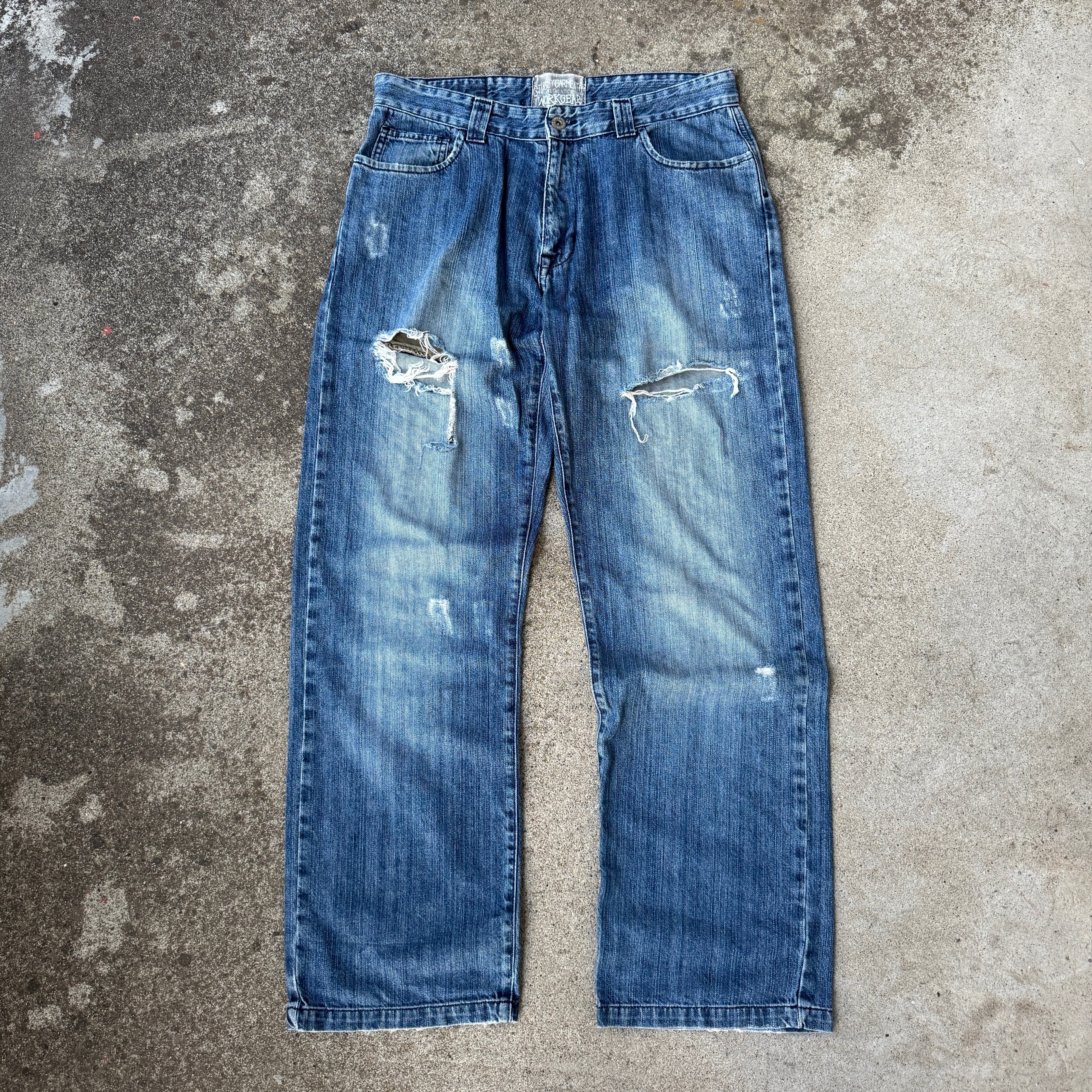 2000's "STUSSY" buggy denim pants jeans damage / 2000年代 "ステューシー" バギー デニム パンツ ジーンズ ダメージ