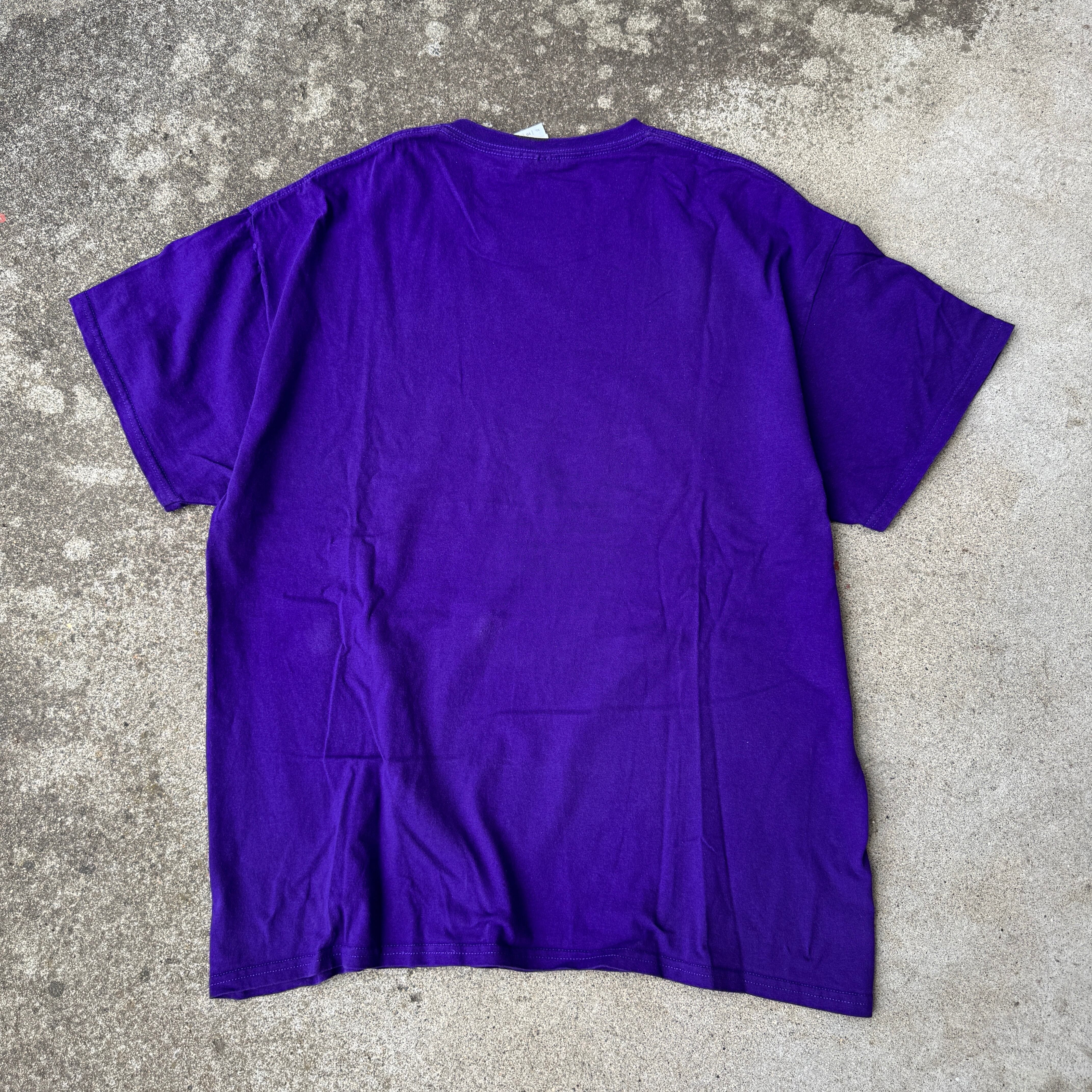 パープルのボディに、フロントのホワイトプリントが映える印象的な一枚。舞台芸術や演劇に携わる学生・スタッフ・観客向けに制作された非売品の可能性も高く、希少性も魅力です。