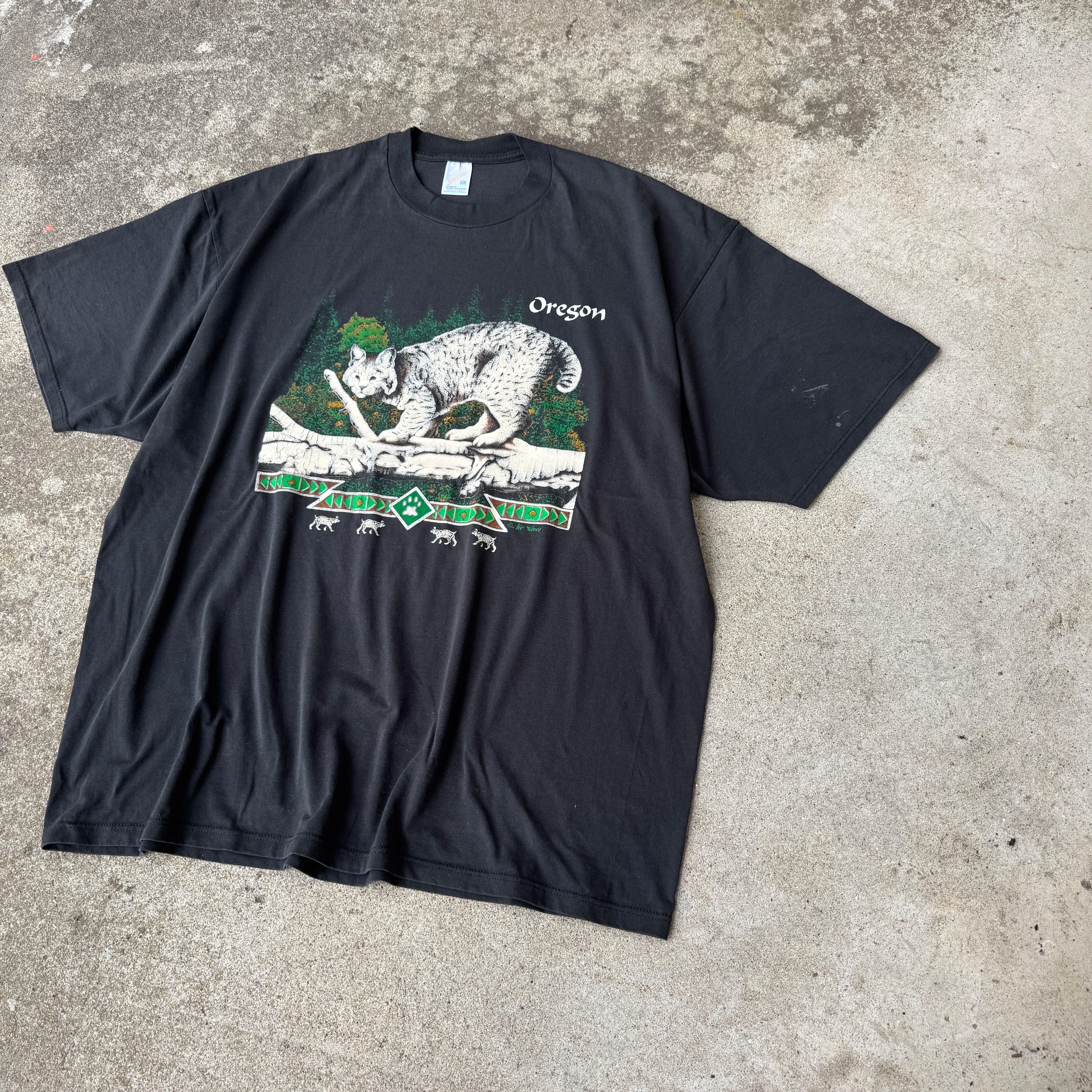 90年代USA製のジャージーズボディを使用した、オレゴン州限定デザインのアニマルプリントTシャツ。