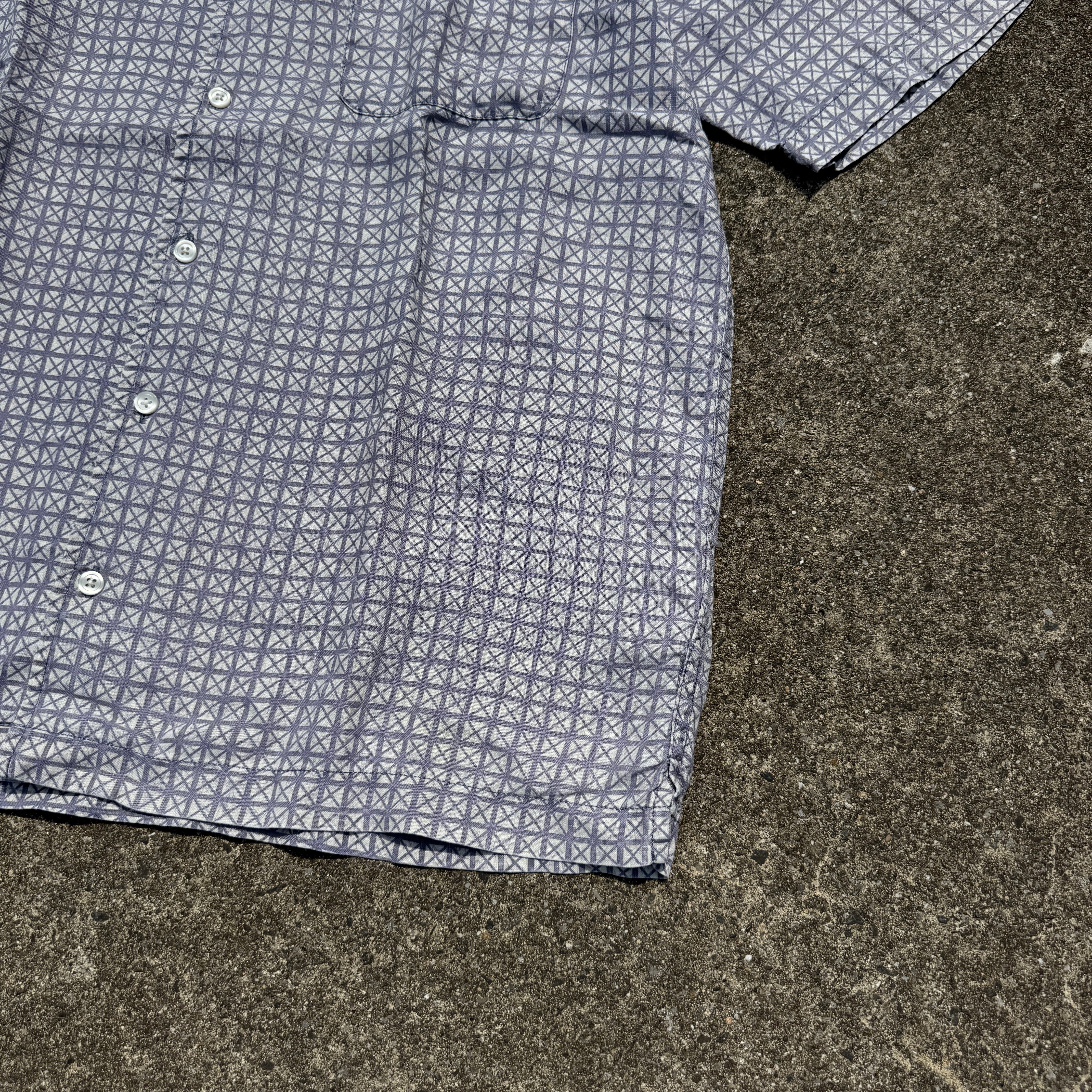マスみたいな柄で、オープンカラー、それでいてリネン100%