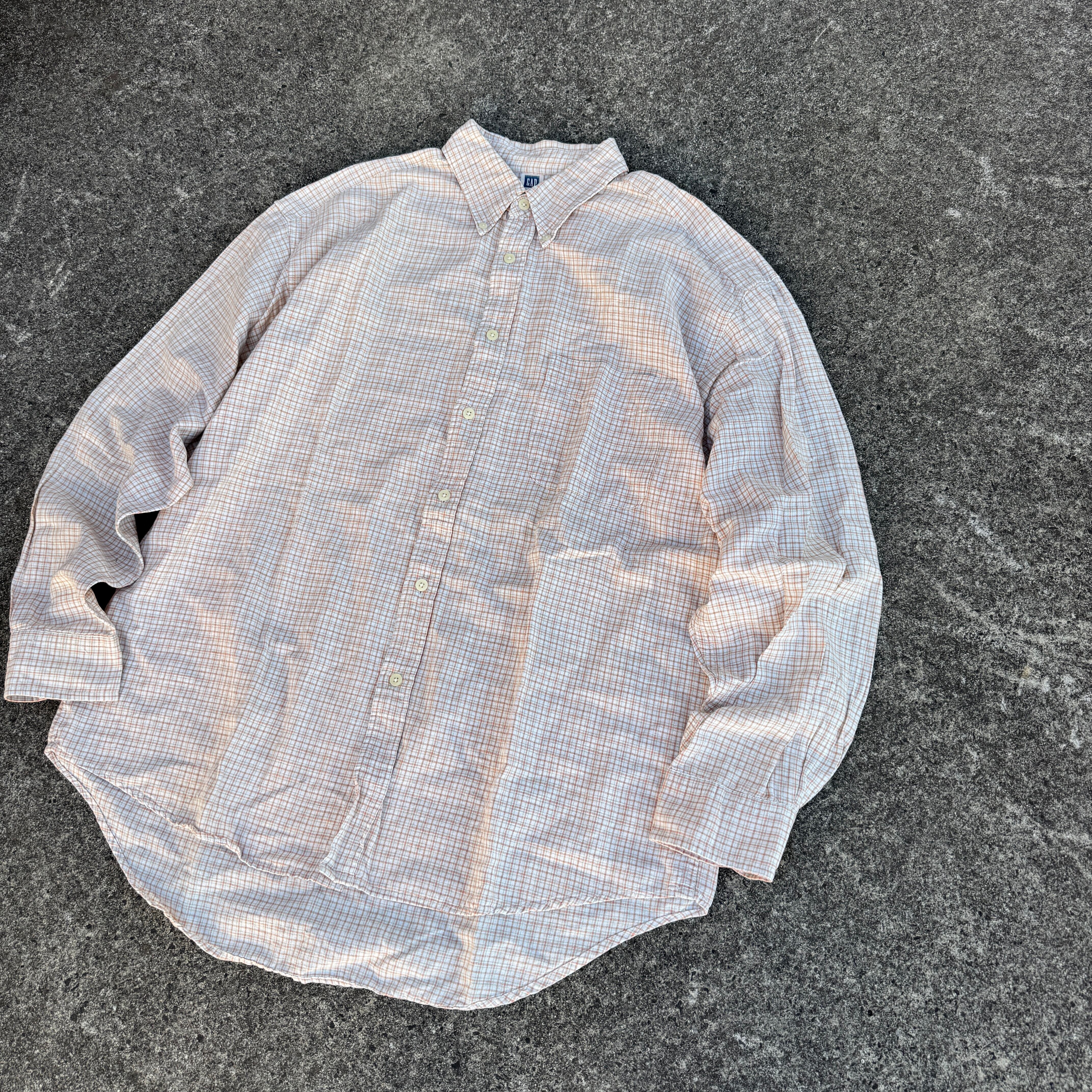 1990's "OLD GAP" L/S check shirt cotton×linen L / 90年代 "オールドギャップ" 長袖 シャツ チェック コットン×リネン