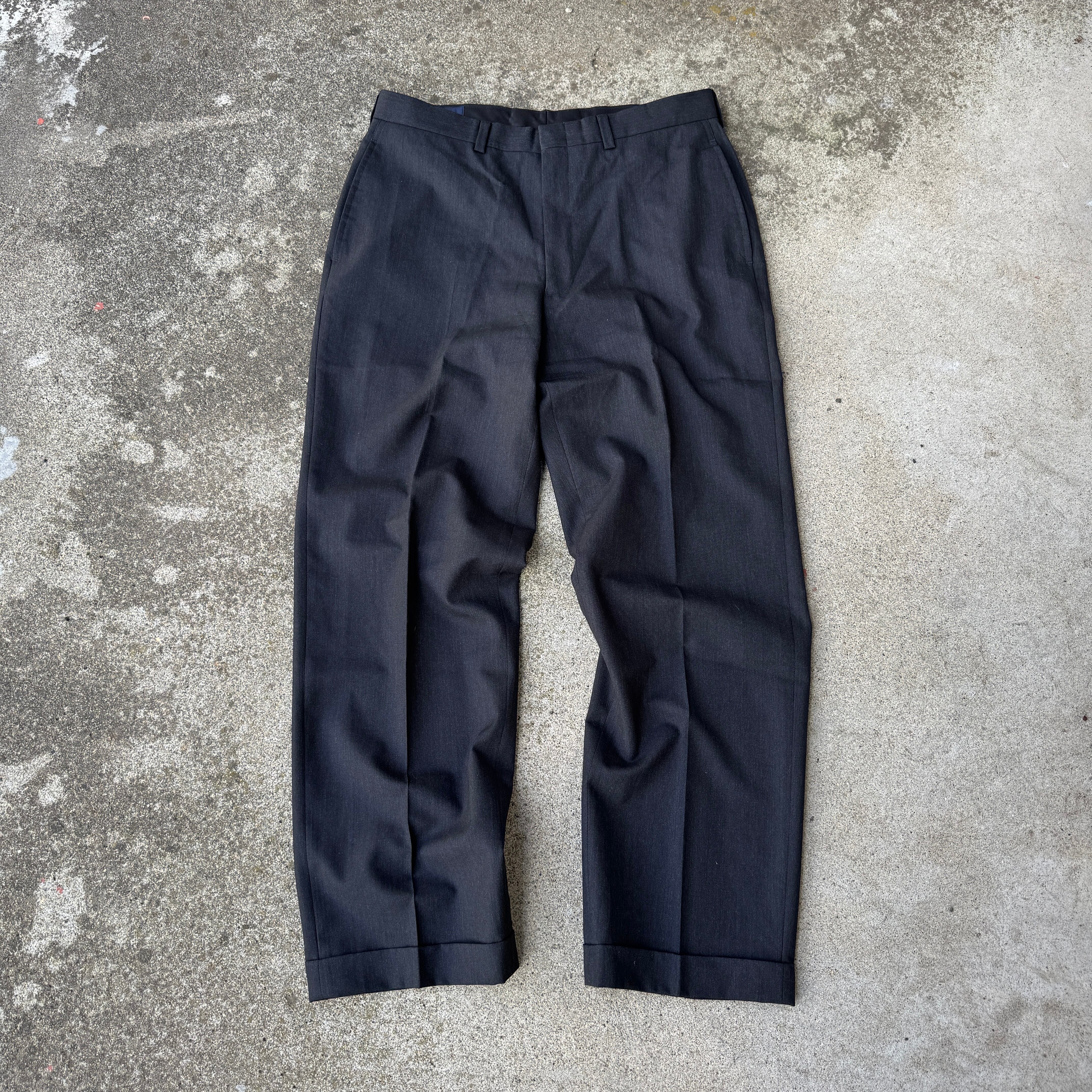 2000's "Brooks Brothers" wide slacks pants double black / 2000年代 "ブルックスブラザーズ" ワイドスラックス ダブル パンツ ブラック