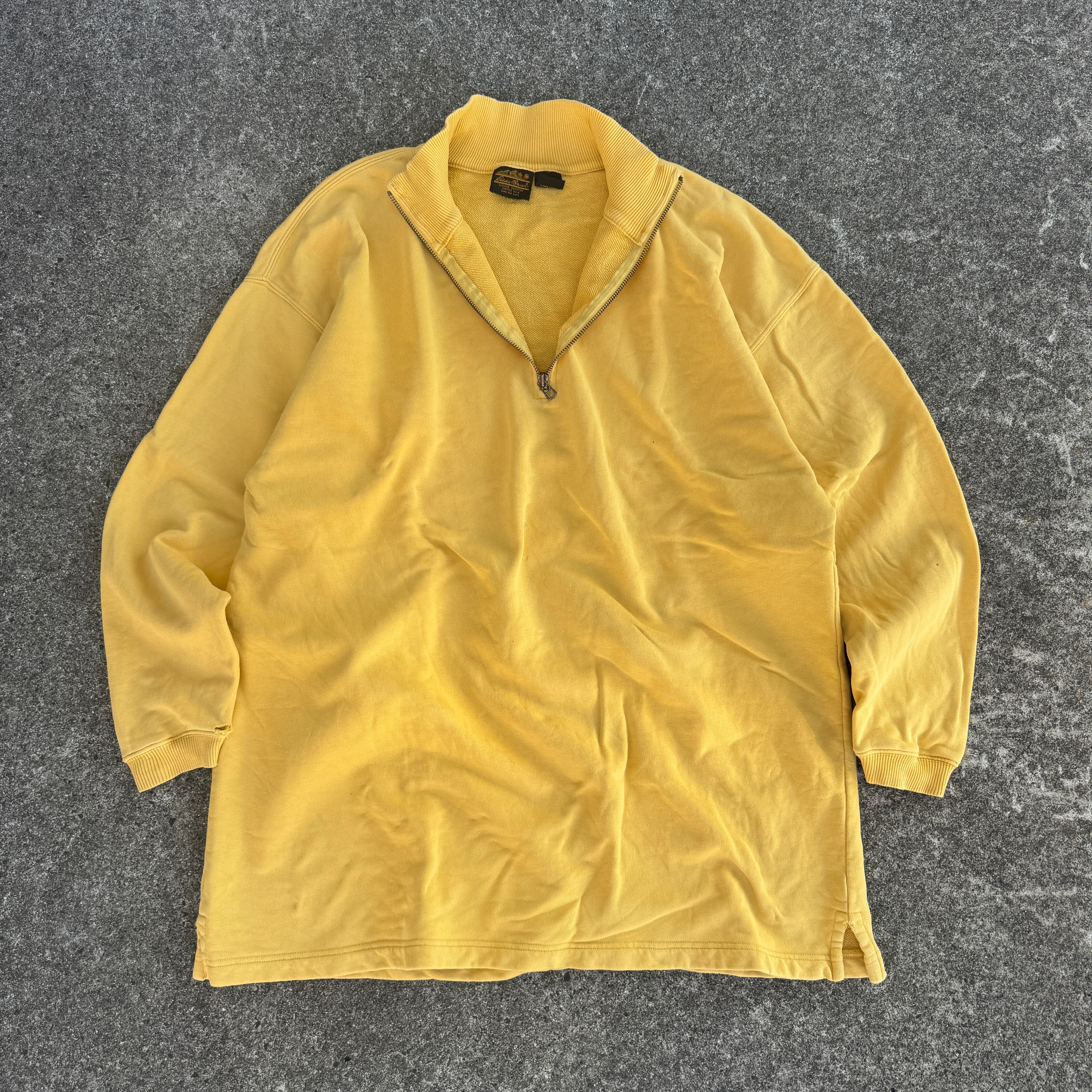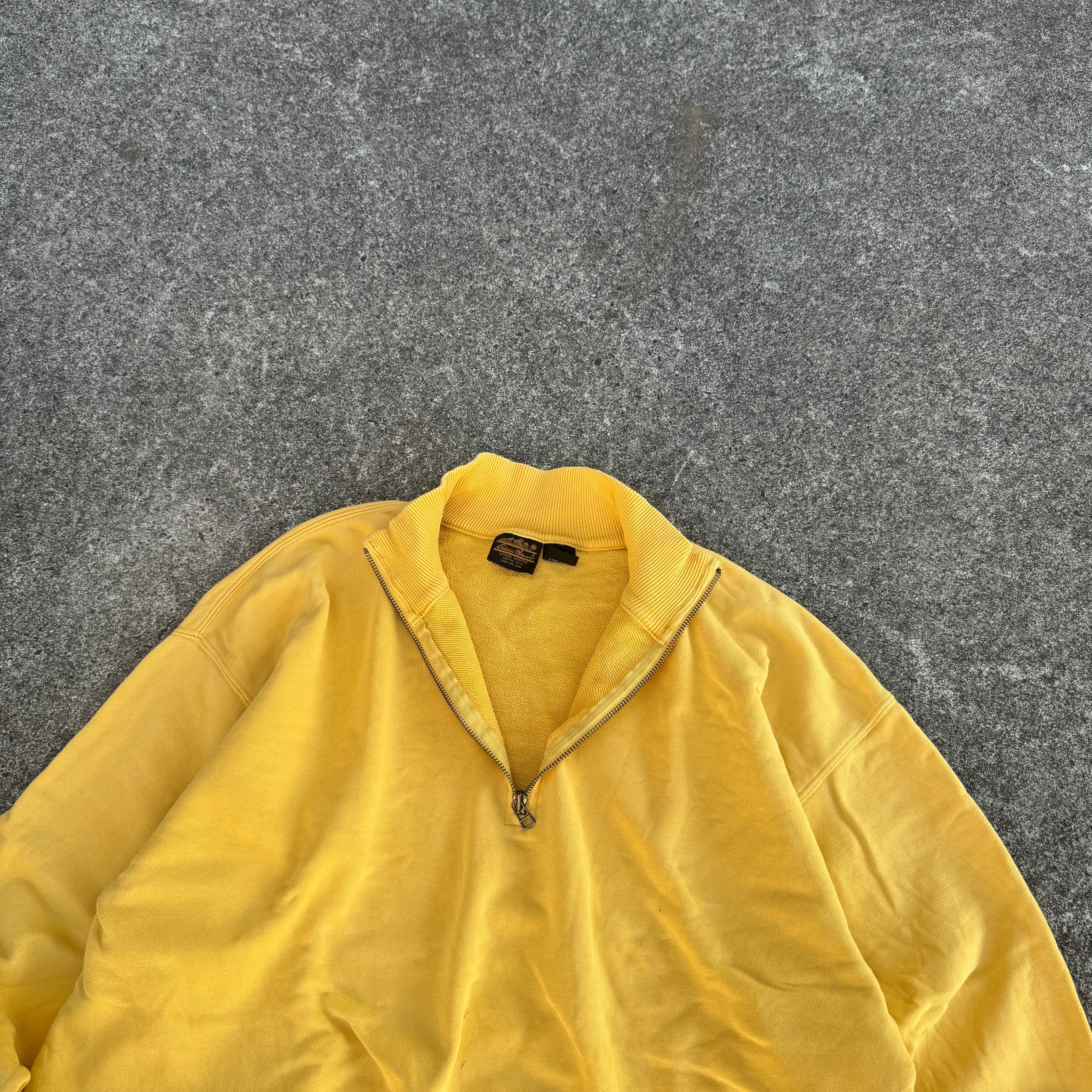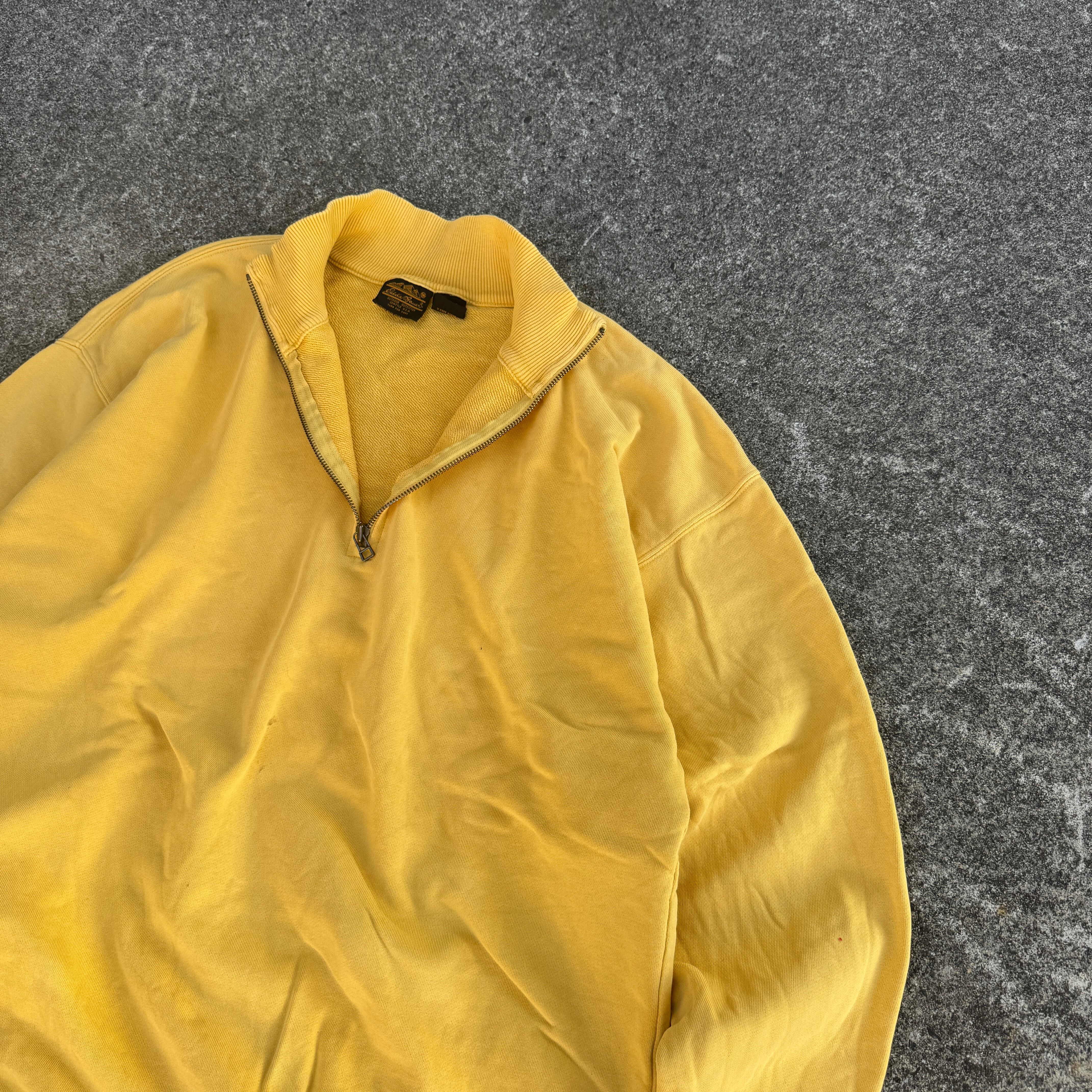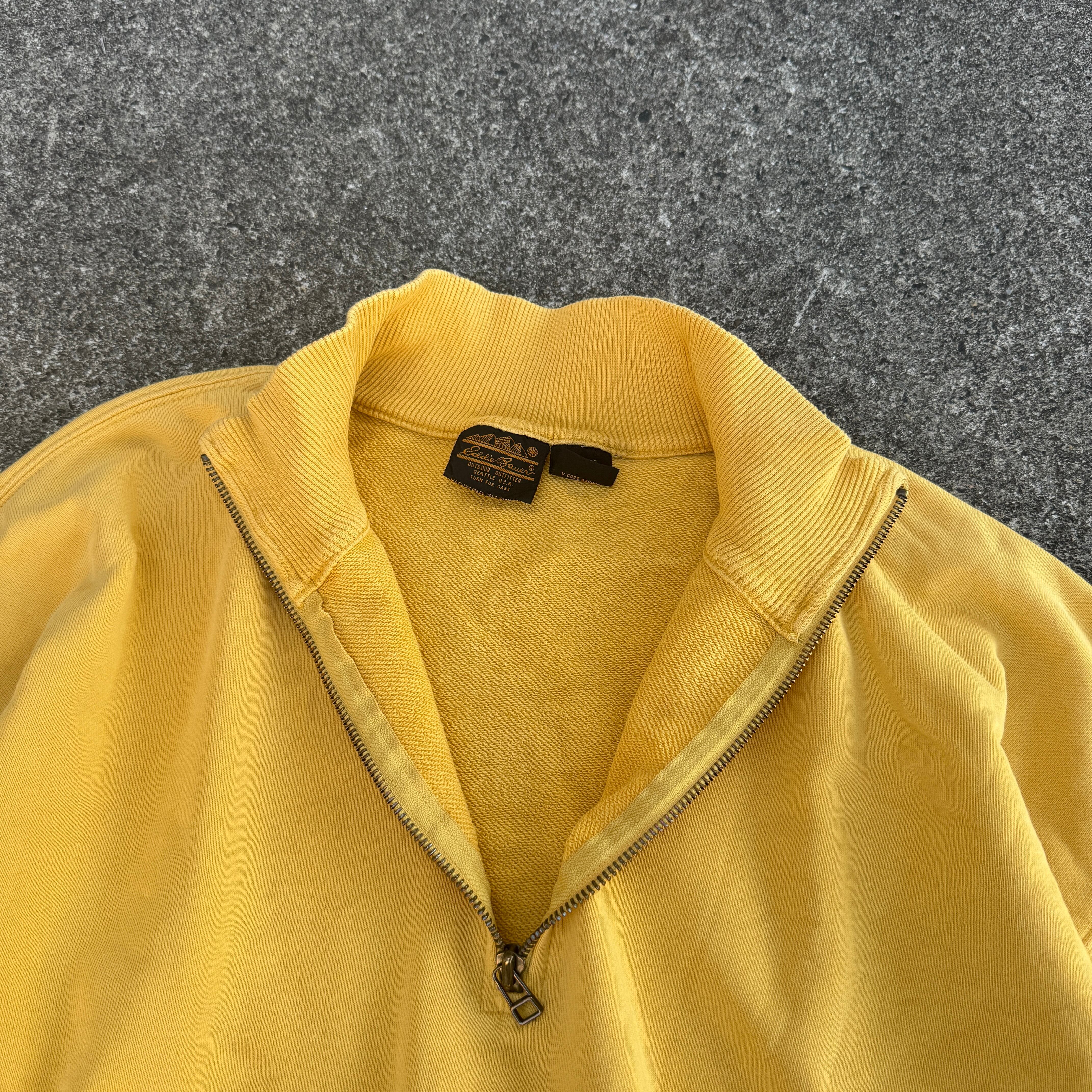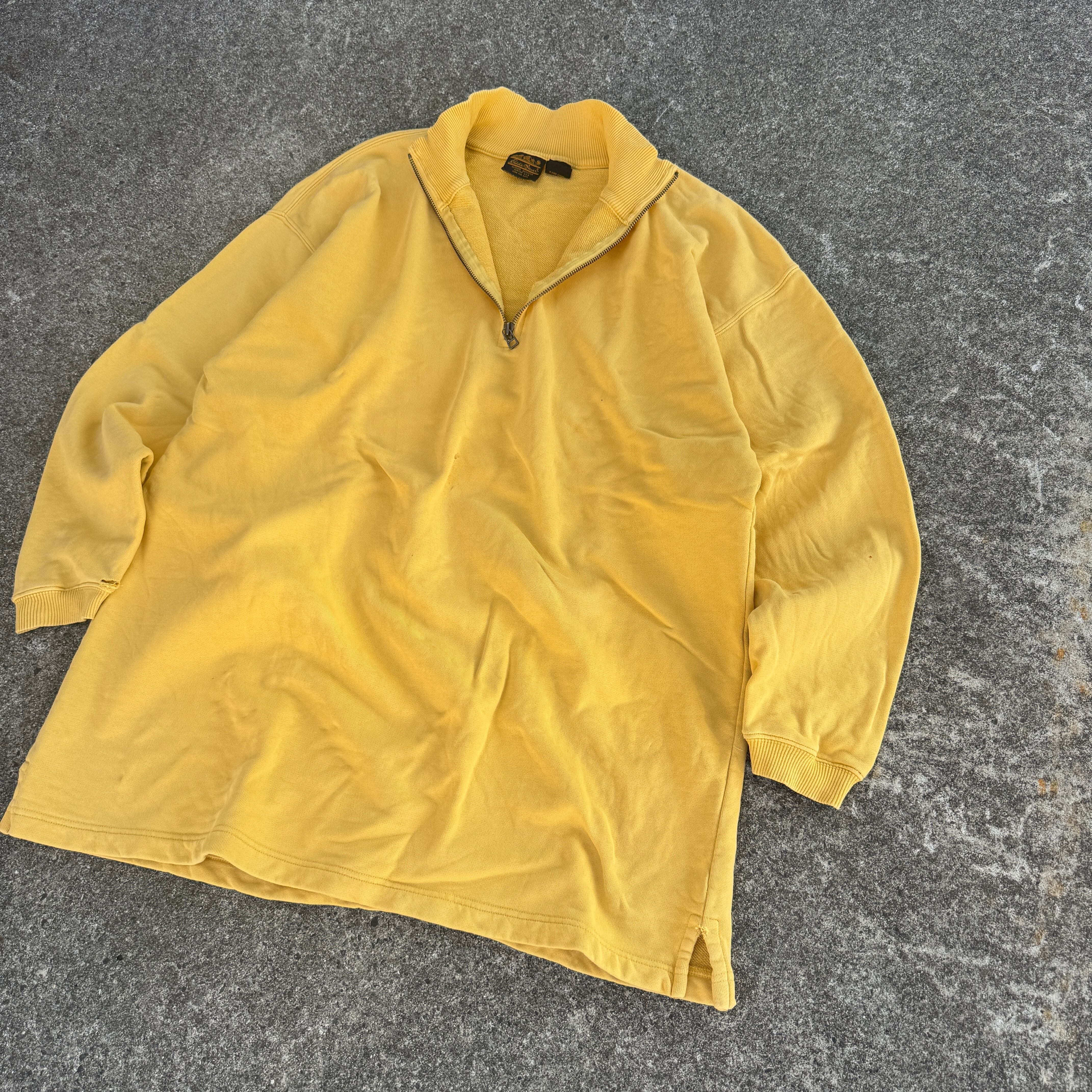 1980's "Eddie Bauer" L/S sweat trainer half zip yellow mustard M / 80年代 "エディーバウアー" 長袖 スウェット トレーナー ハーフジップ イエロー 黒タグ