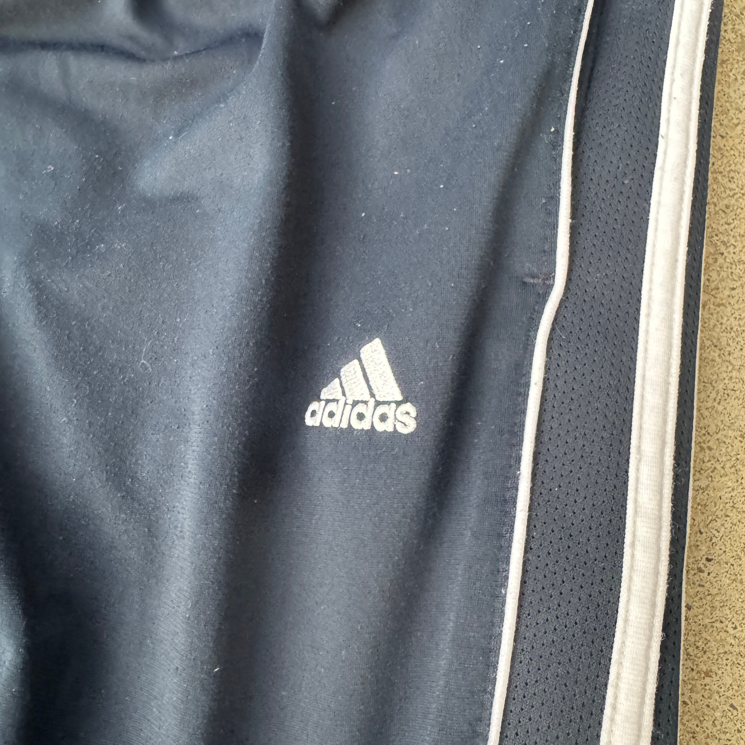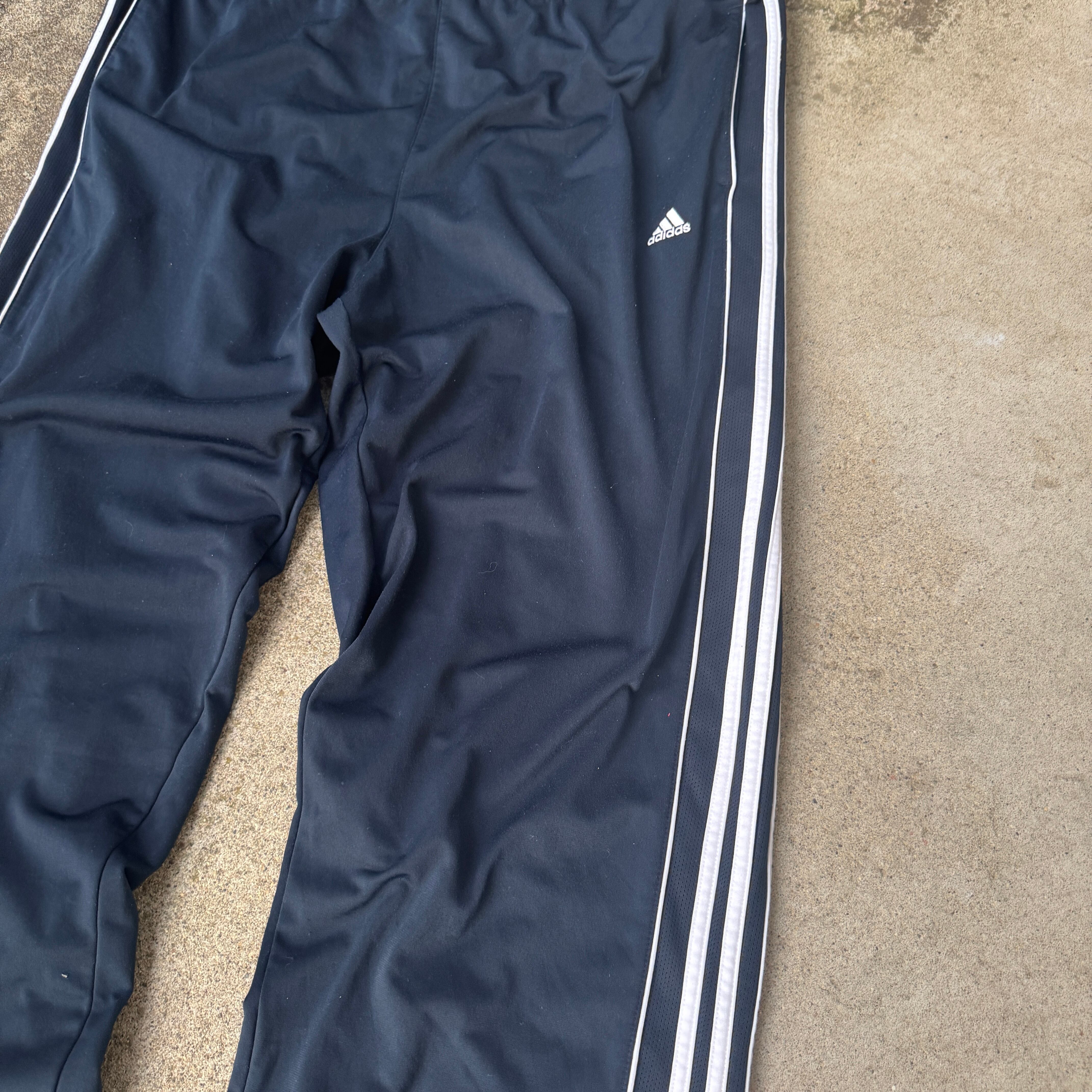 2000's "adidas' track pants buggy wide 3line navy / 2000年代 "アディダス" トラックパンツ ジャージ 3ライン バギー ワイド ネイビー