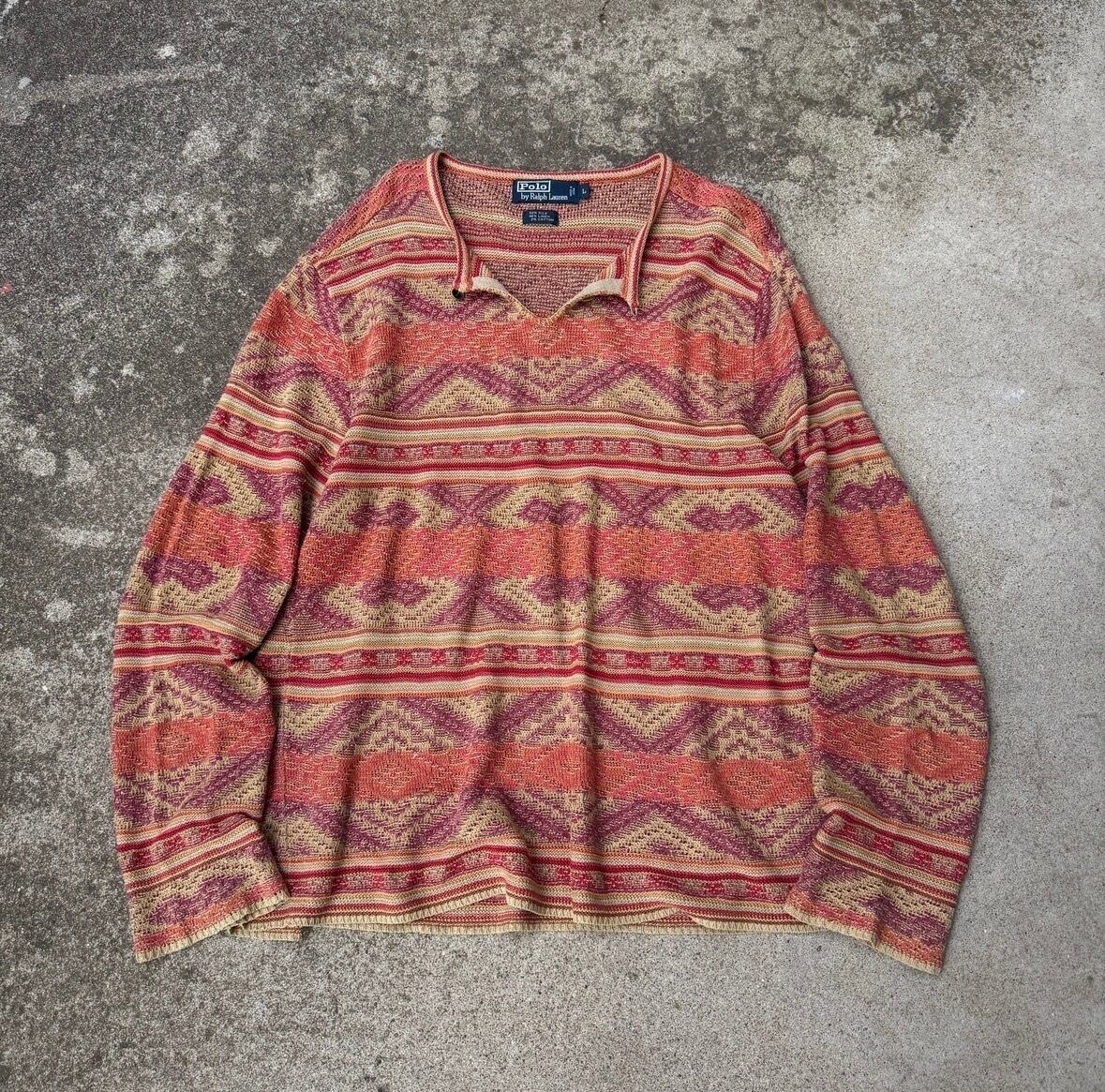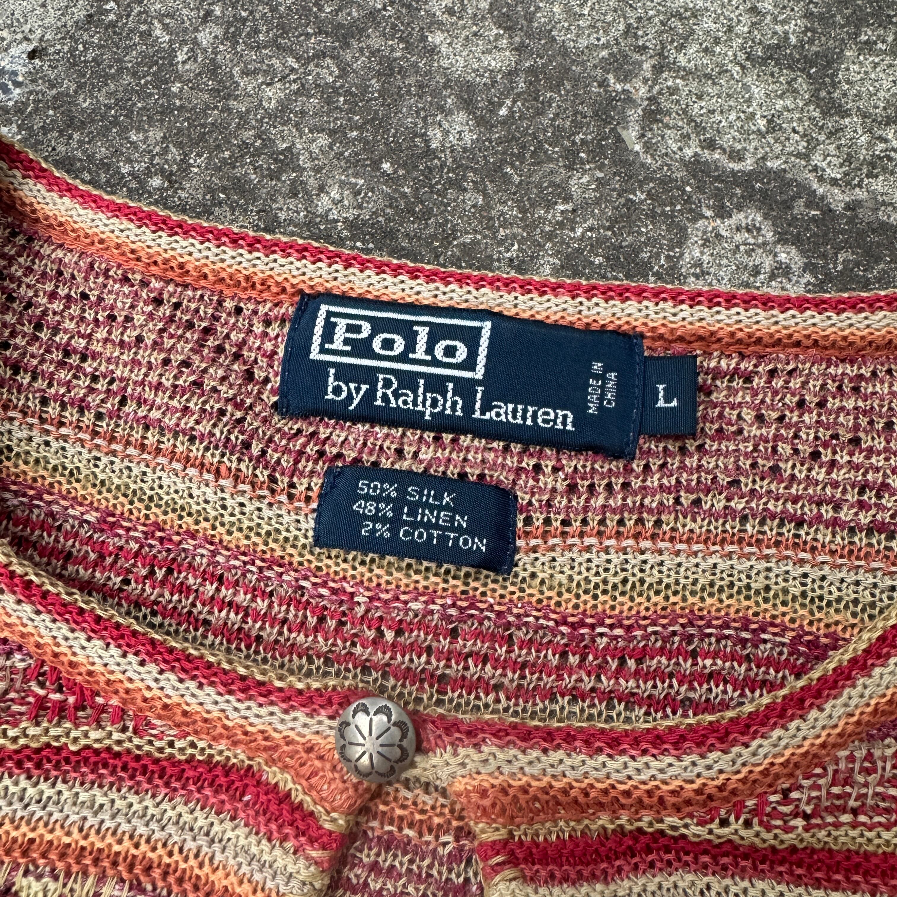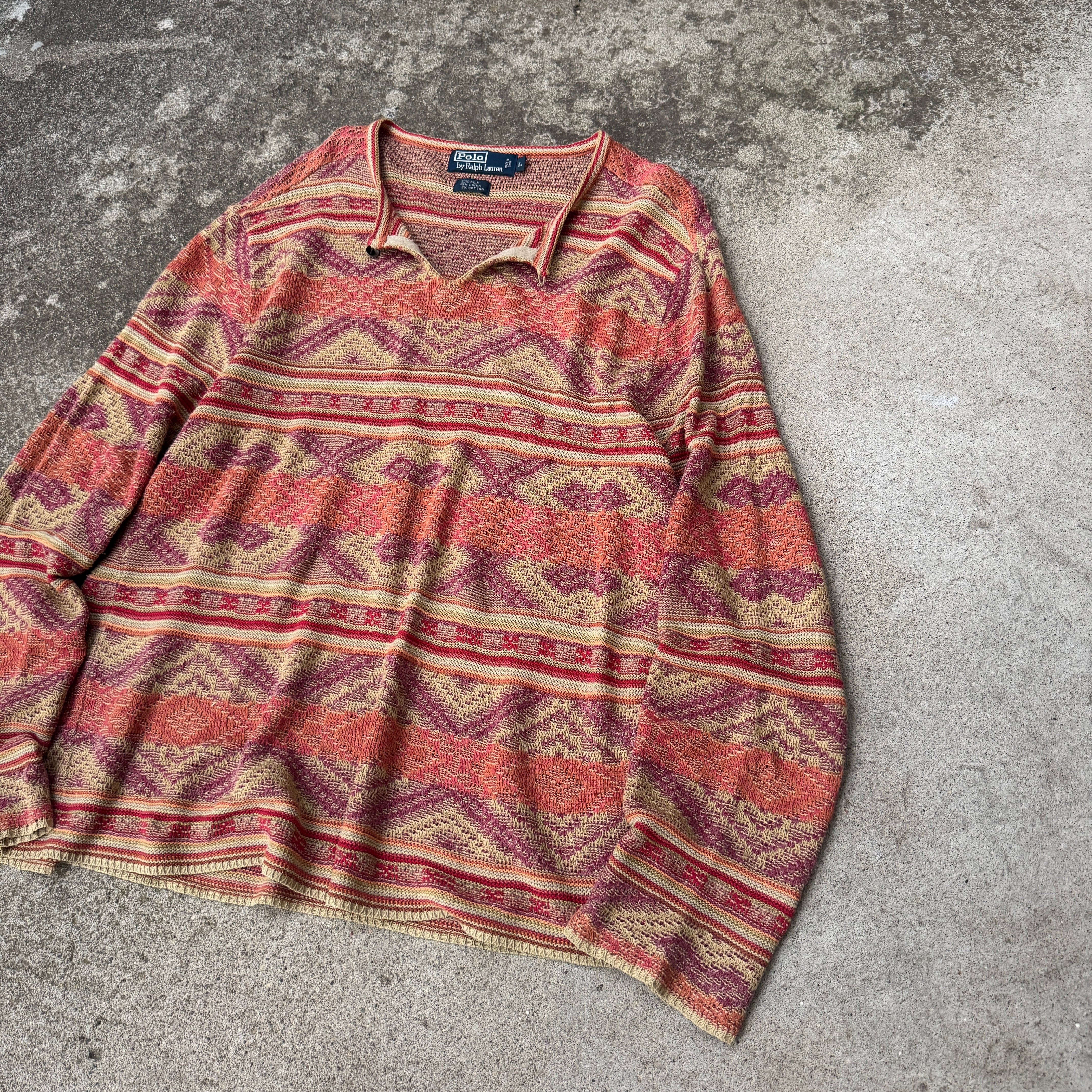 1990's "Polo by Ralph Lauren" L/S silk×linen×cotton knit sweater L / 90年代〜 "ポロバイラルフローレン" 長袖 シルク×リネン×コットン ニット セーター 民族
