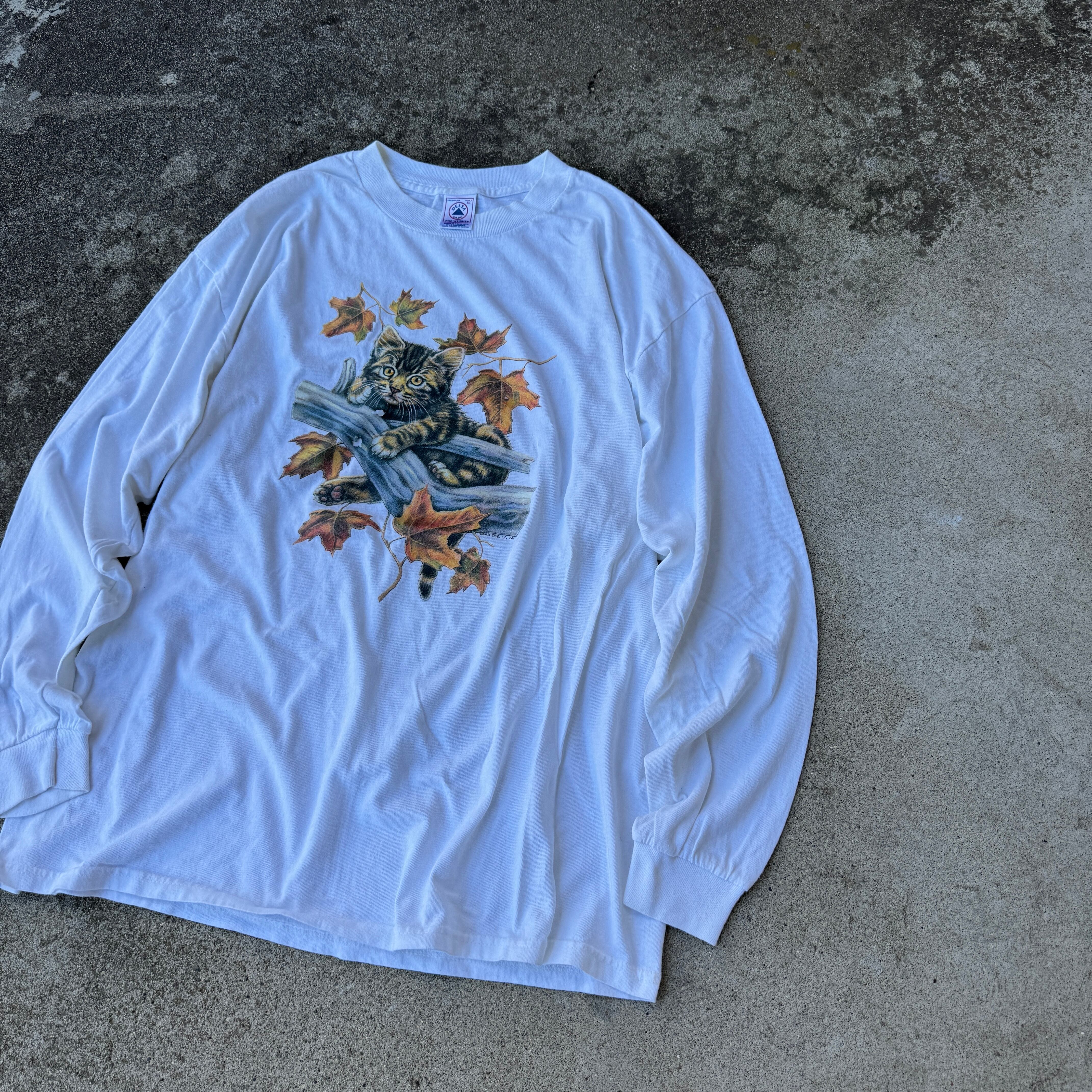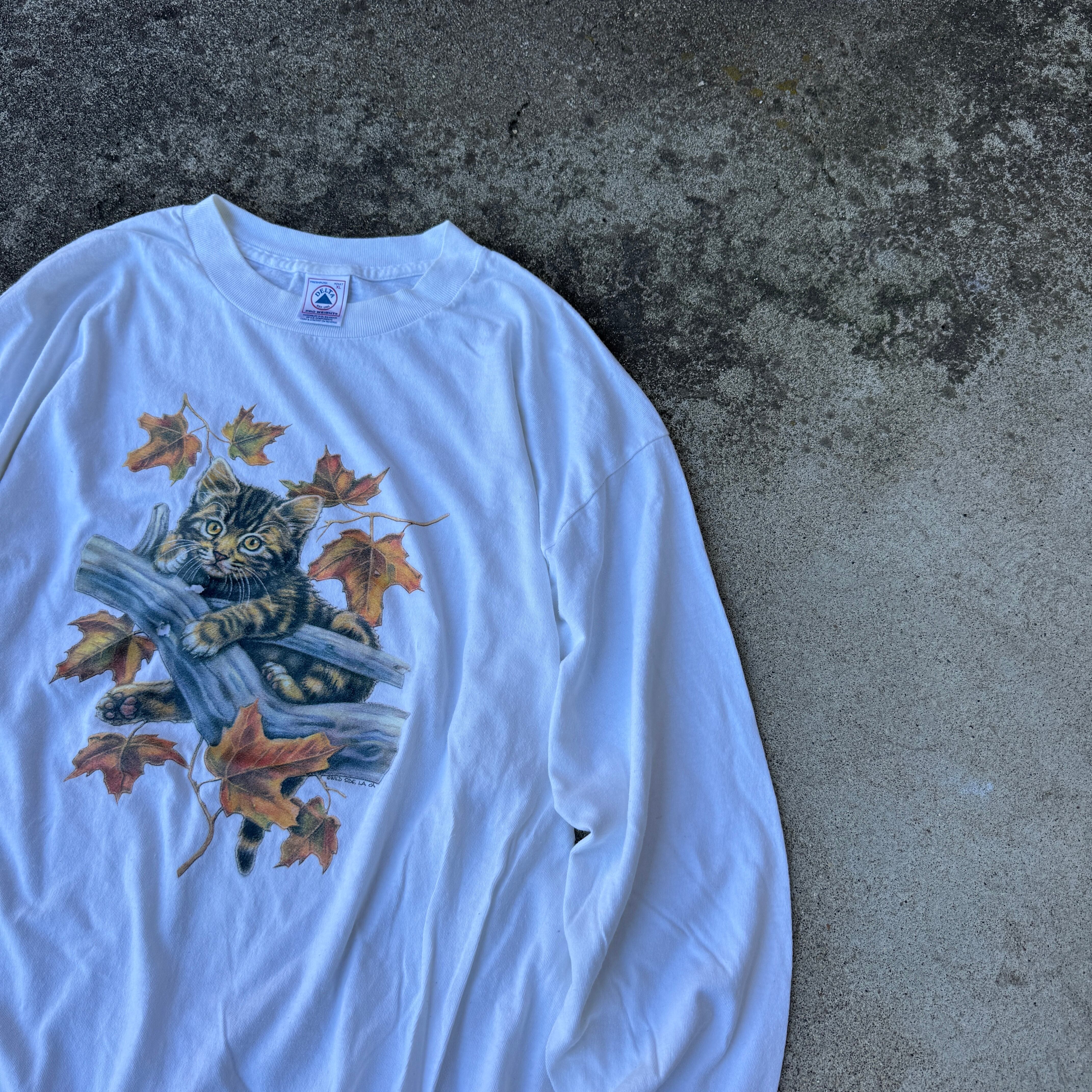 1990's vintage L/S T-shirt cat leaves / 90年代 長袖 Tシャツ 猫 枯れ葉 ロンT