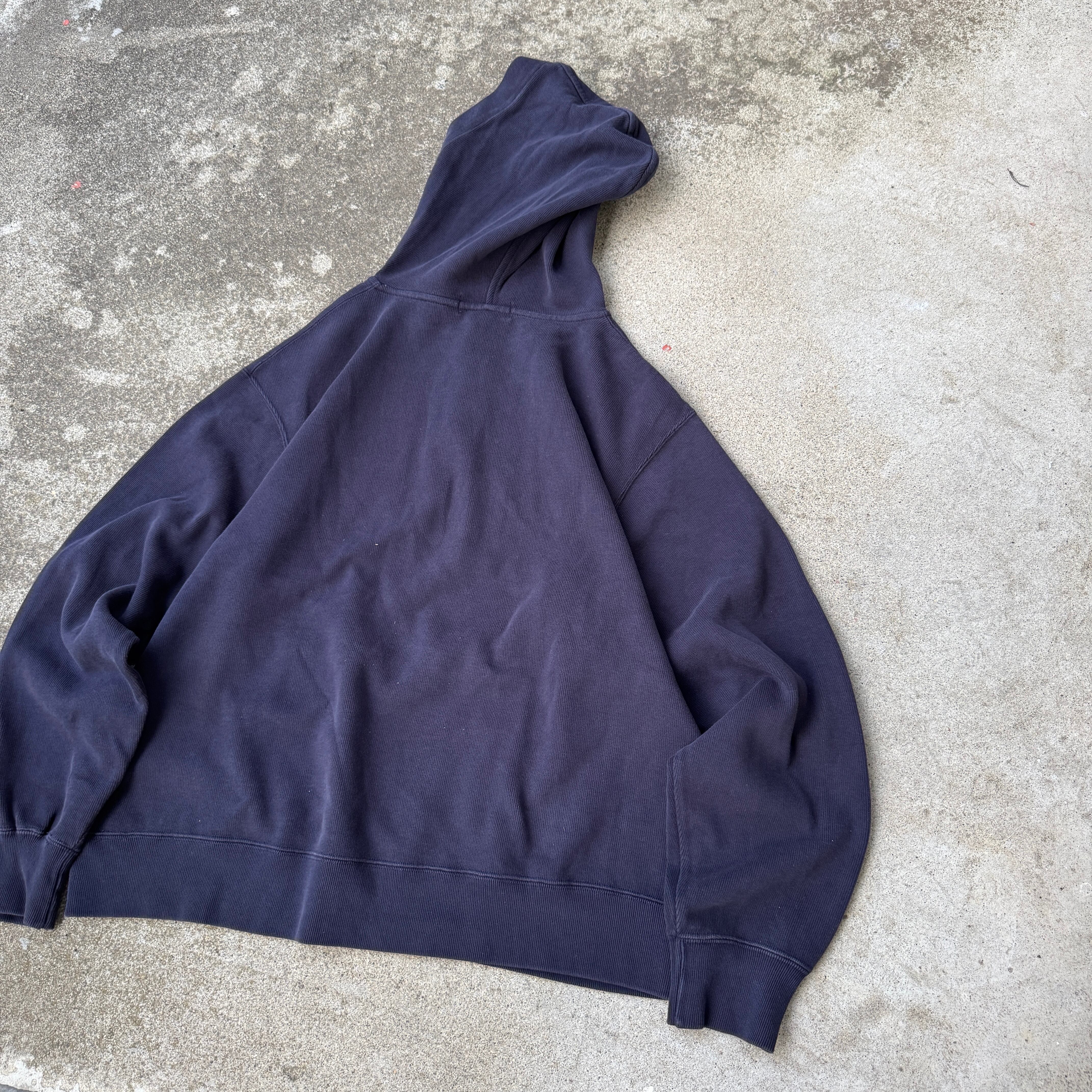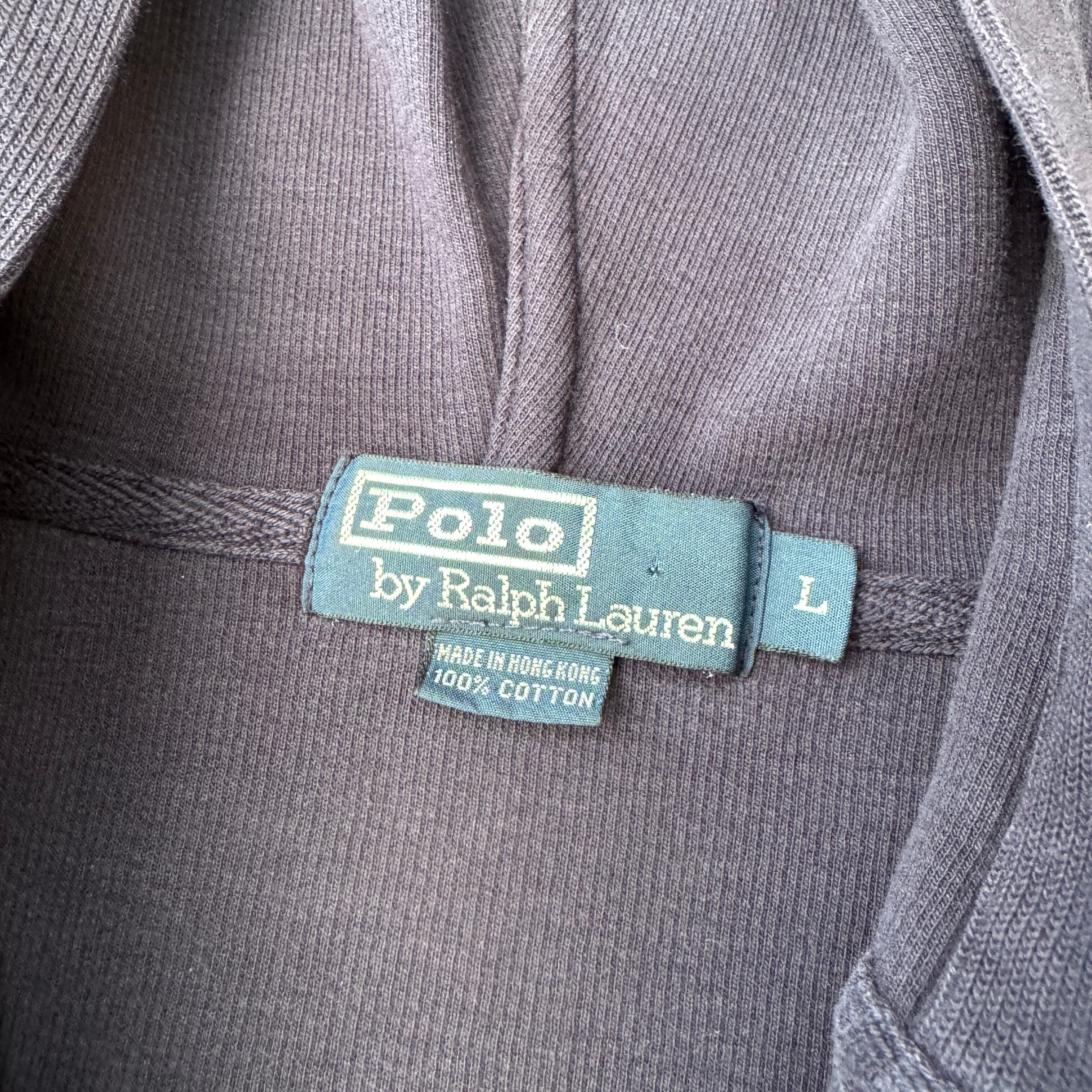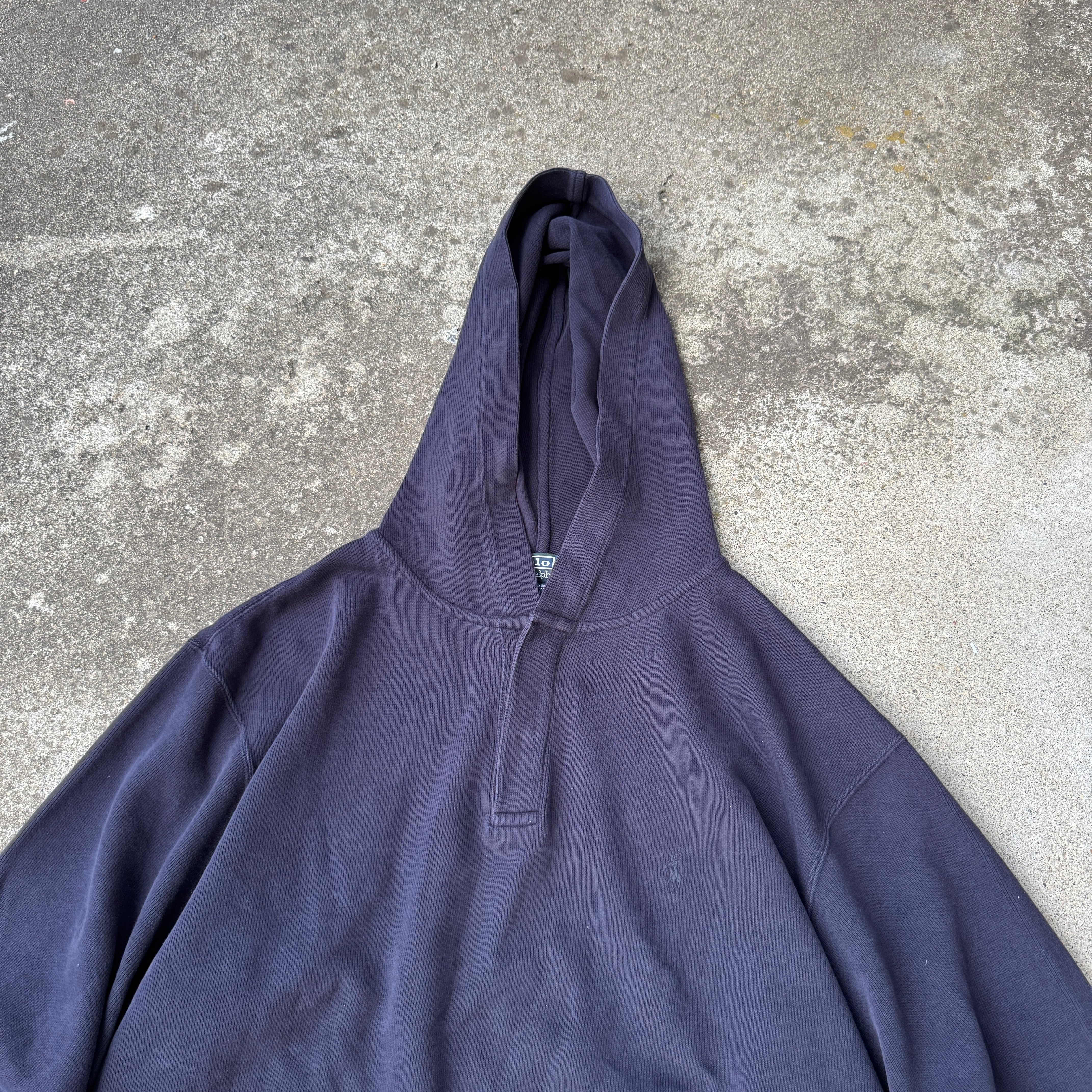 1990's "Polo by Ralph Lauren" L/S cotton knit hoodie parka henry neck navy L / 90年代 "ポロバイラルフローレン" 長袖 コットンニット フーディー パーカー ヘンリーネック ネイビー