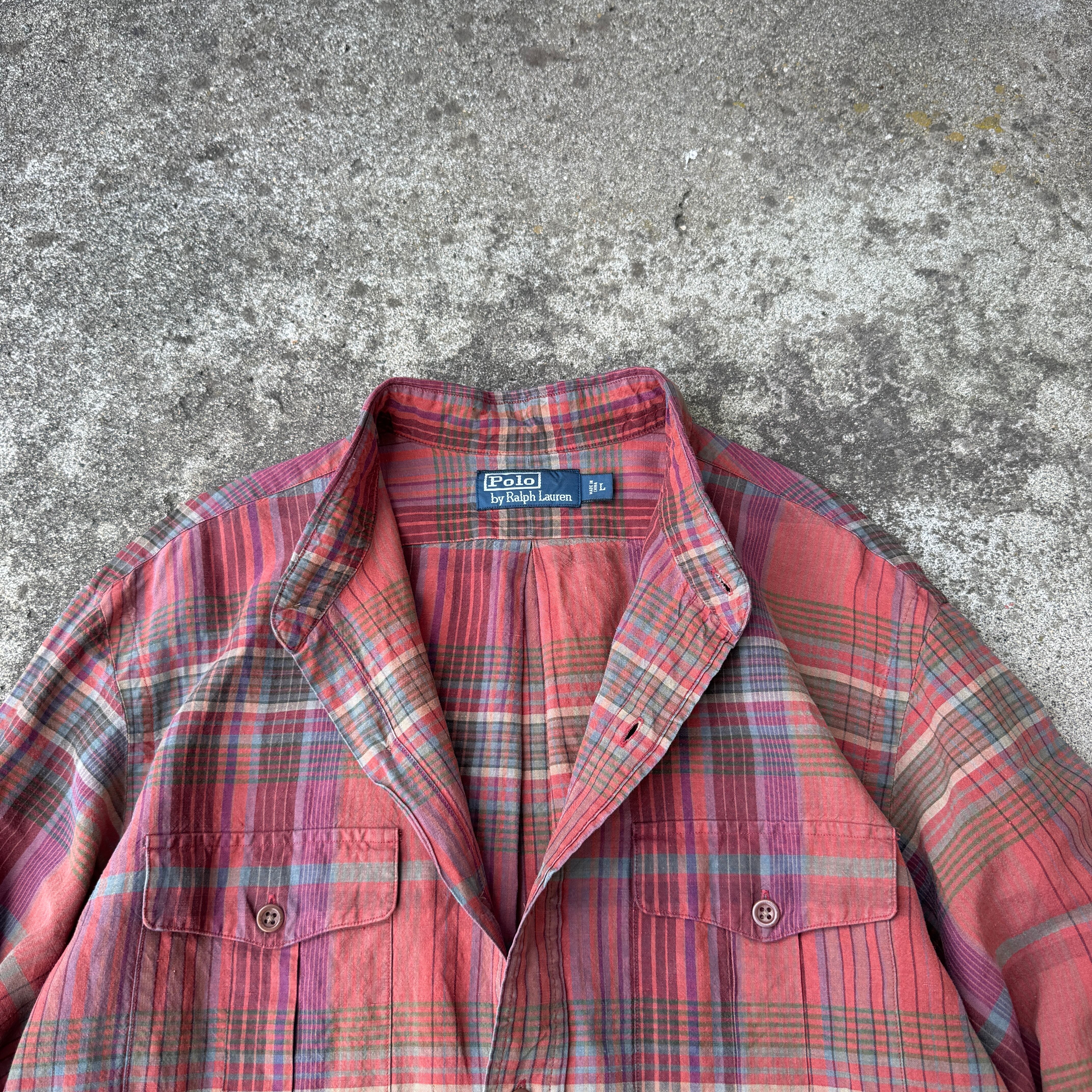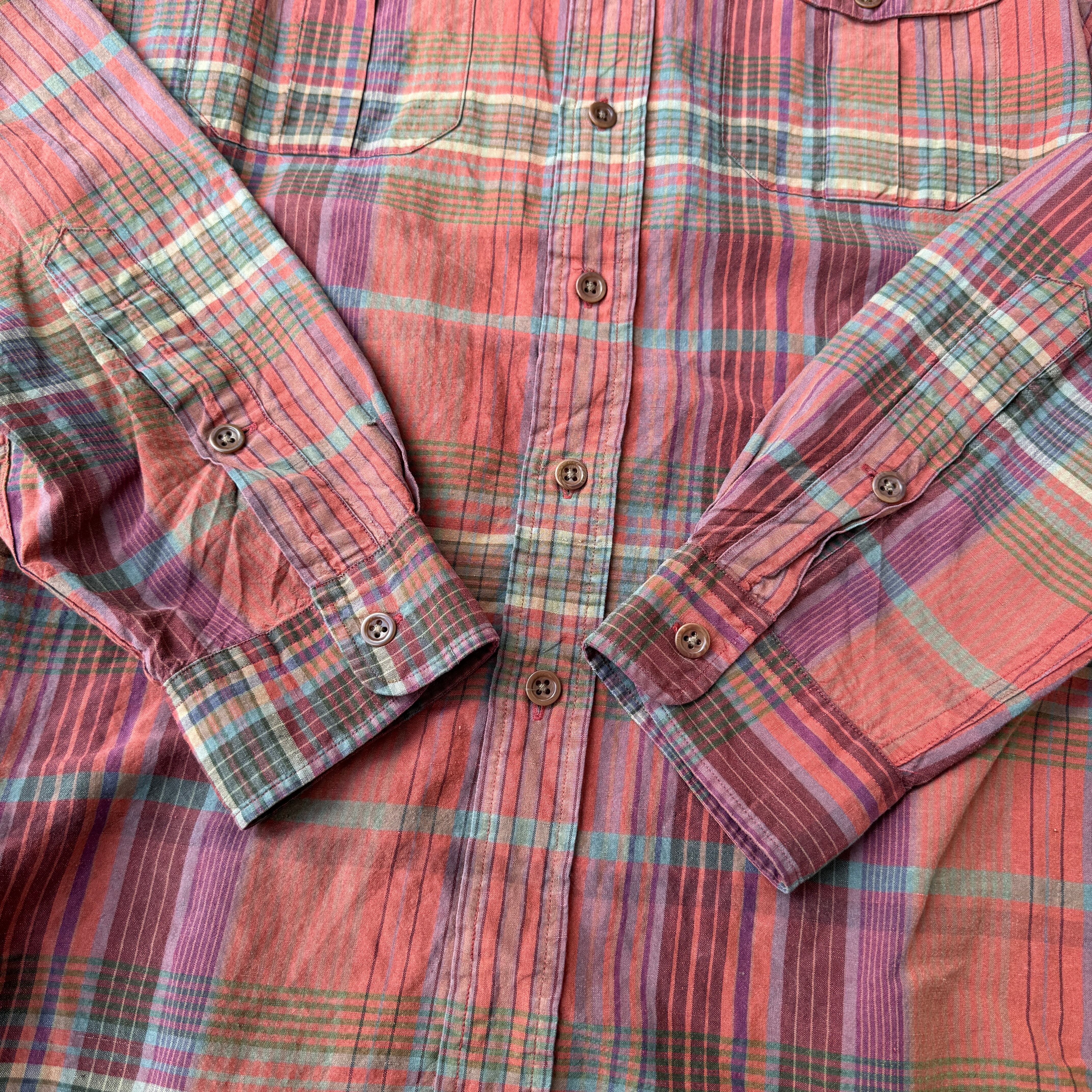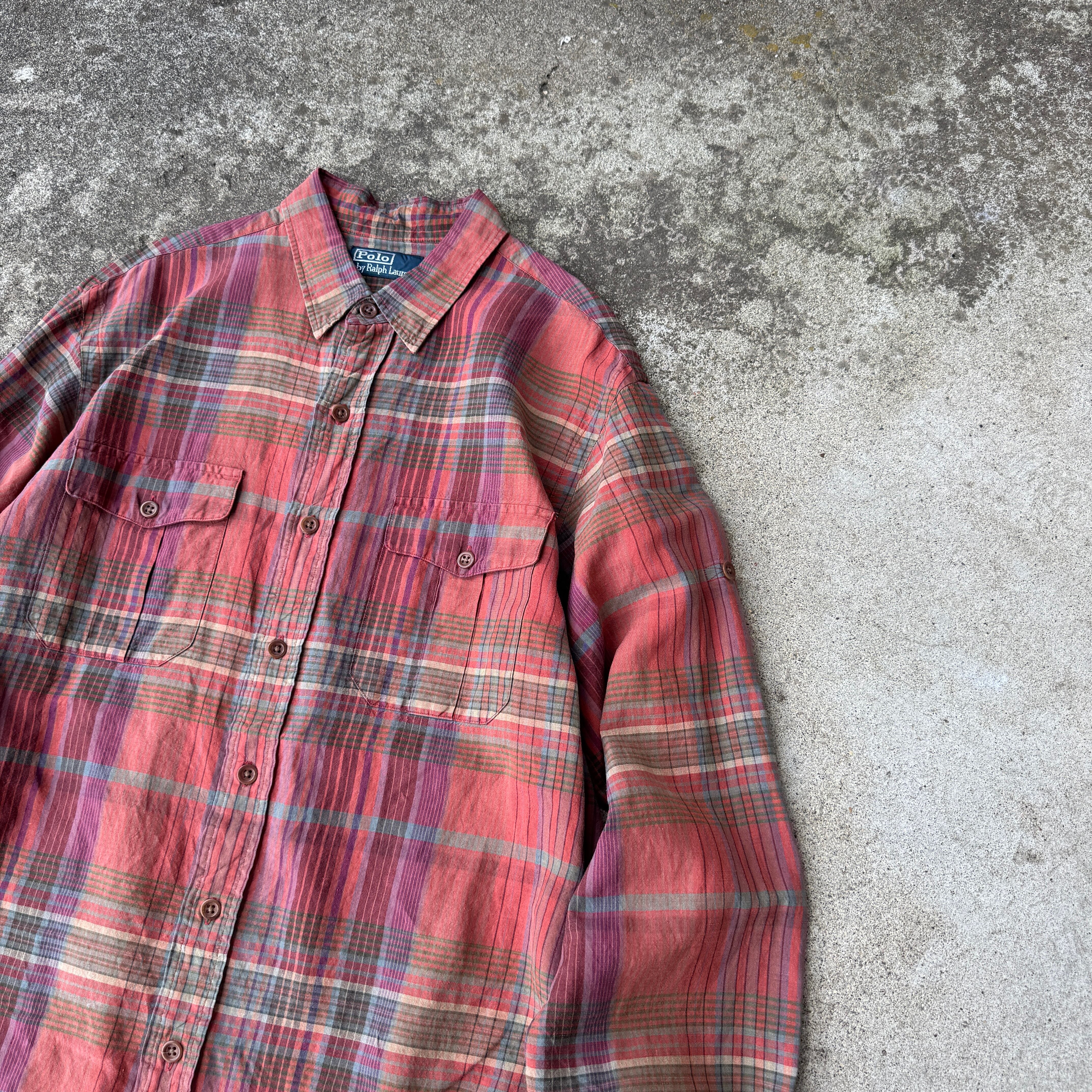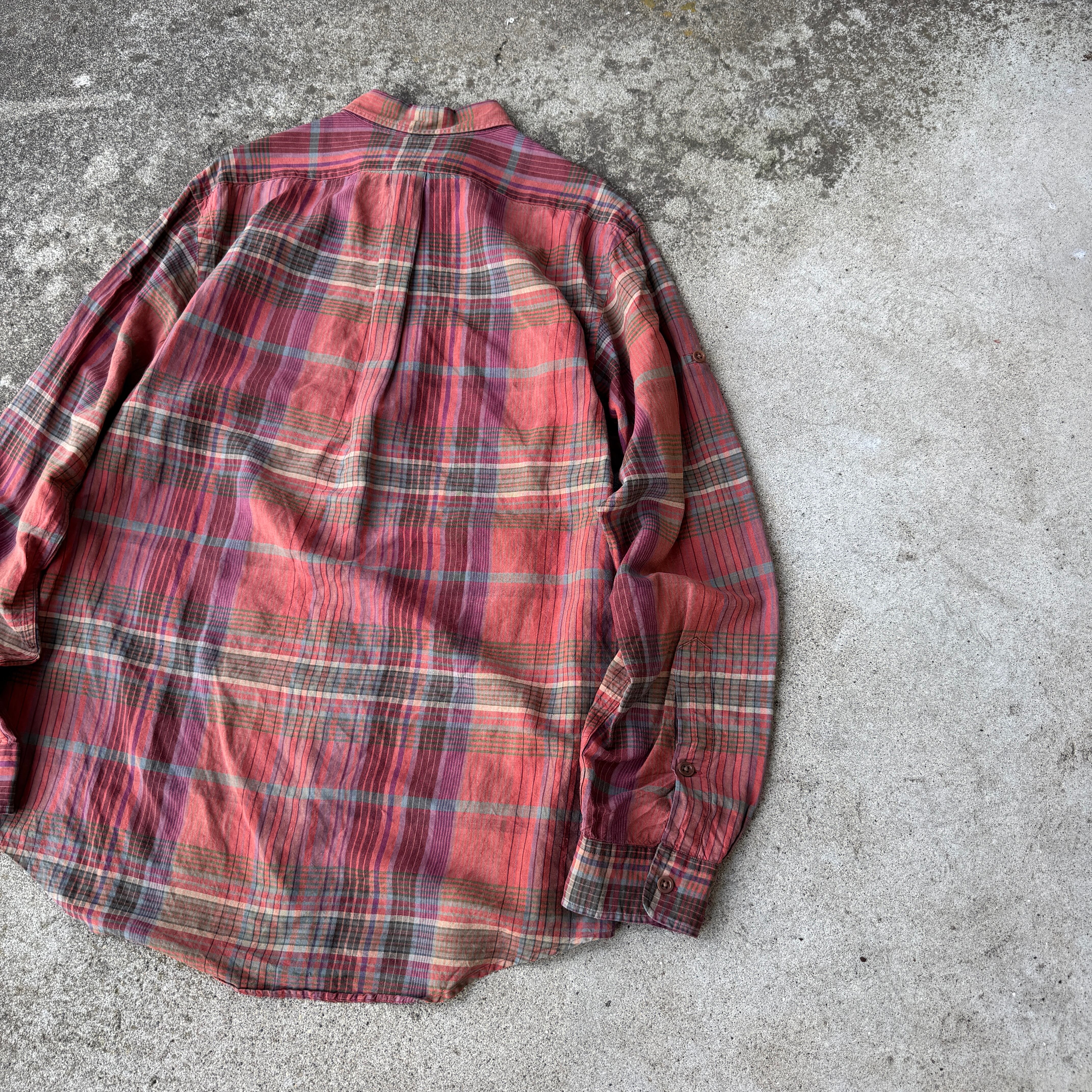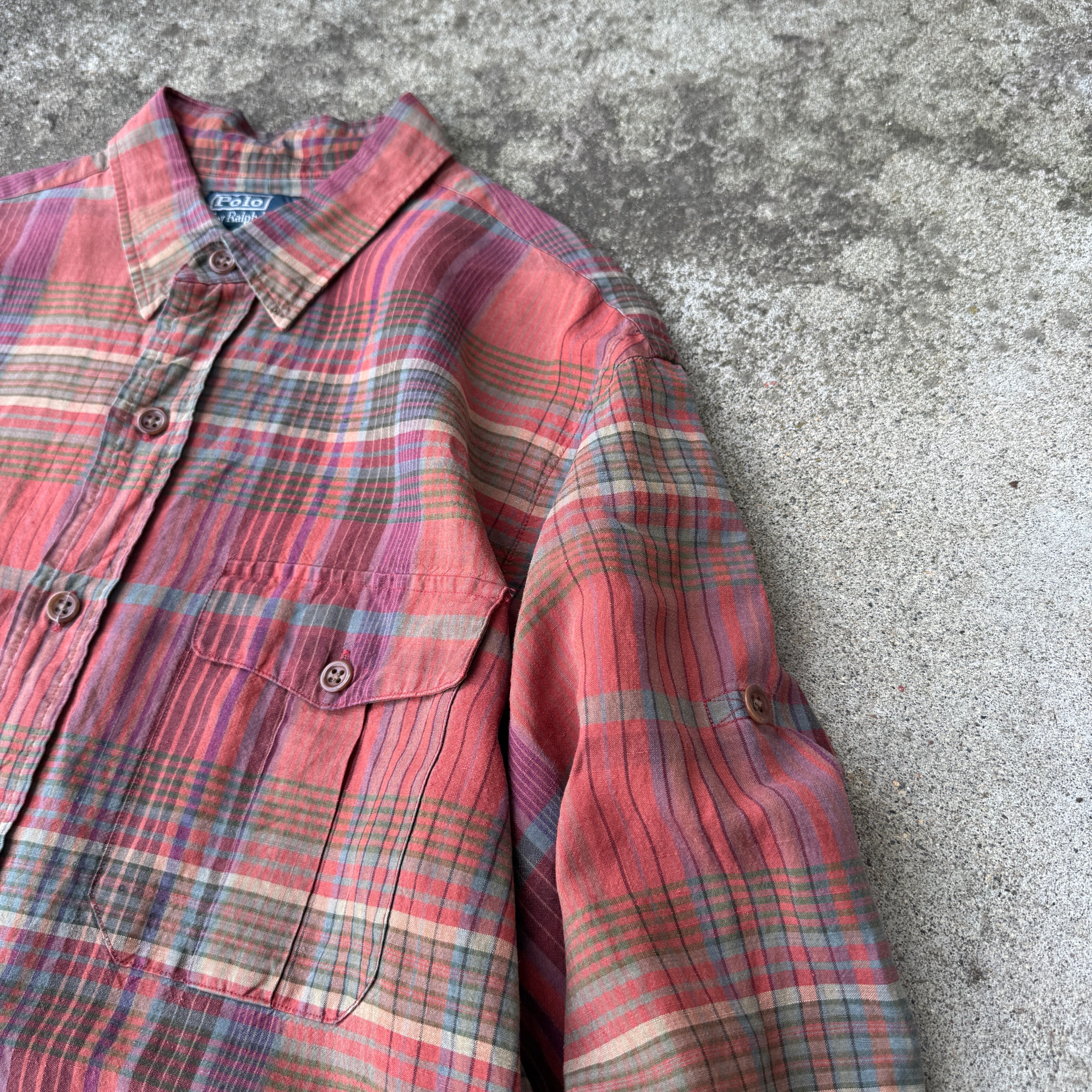 1990's "Polo by Ralph Lauren" L/S shirt silk×linen check L / 90年代 "ポロバイラルフローレン" 長袖 シャツ チェック シルク×リネン
