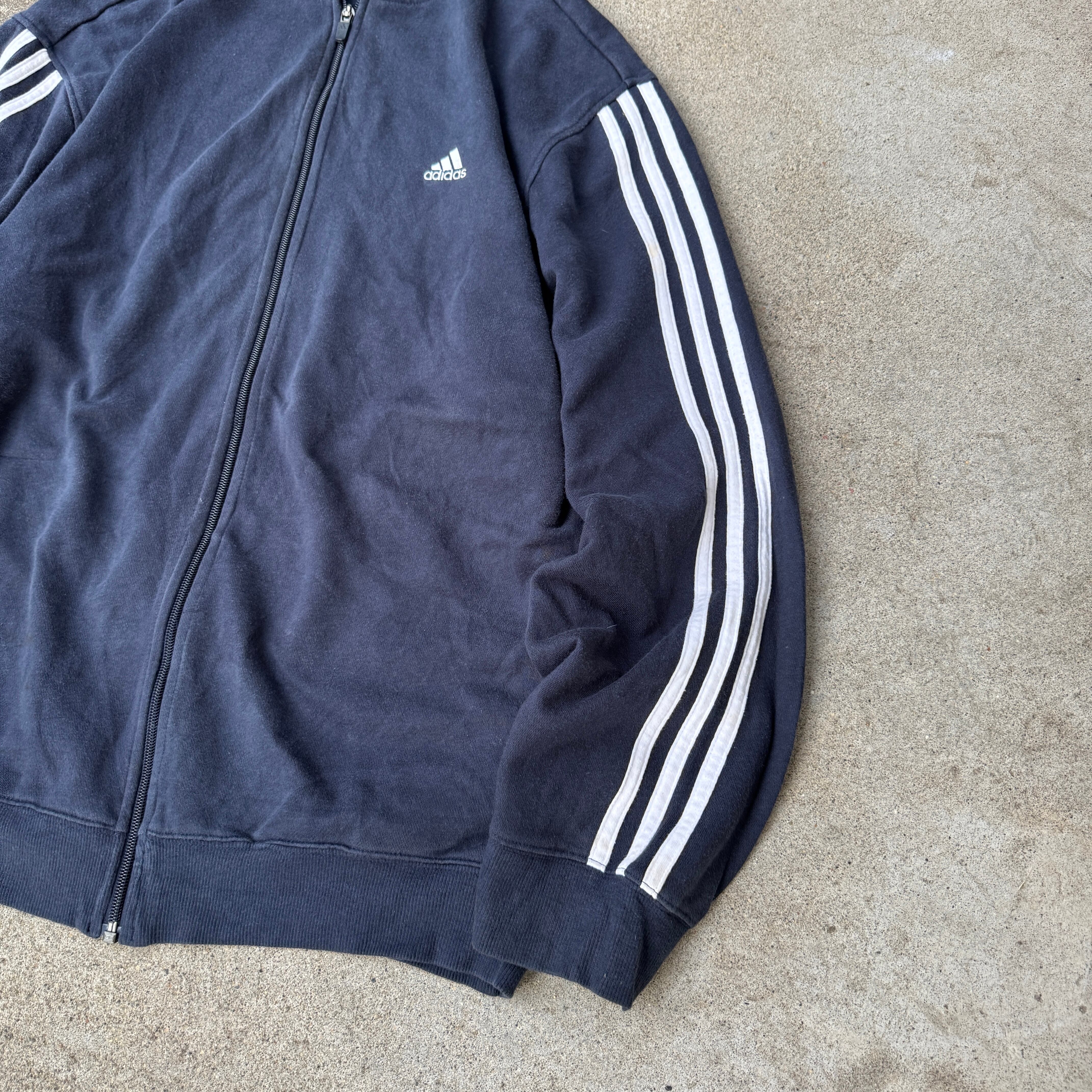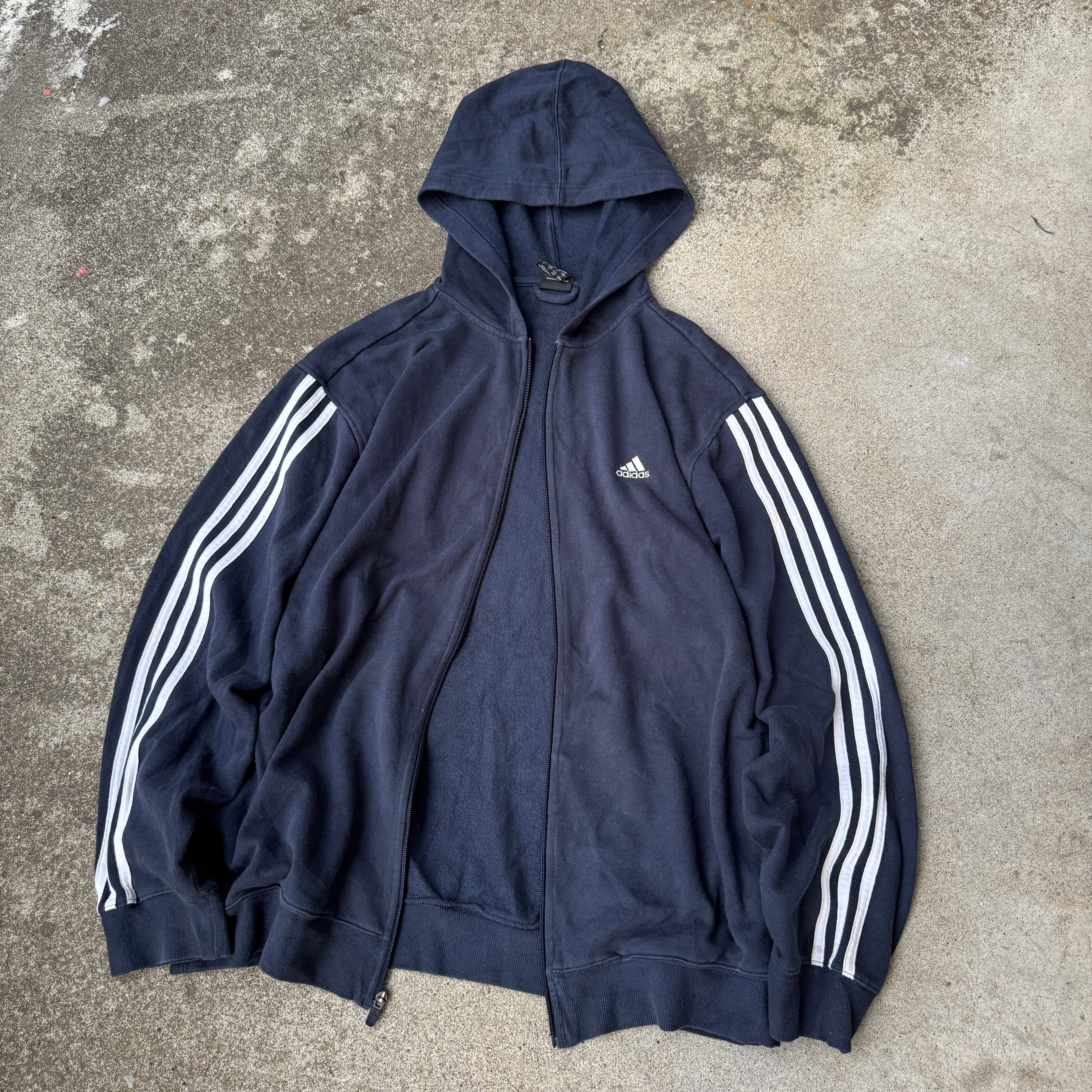 2000's "adidas" zip up hoodie parka 3line navy XXL / 2000年代 "アディダス" ジップアップ フーディー パーカー スウェット ネイビー