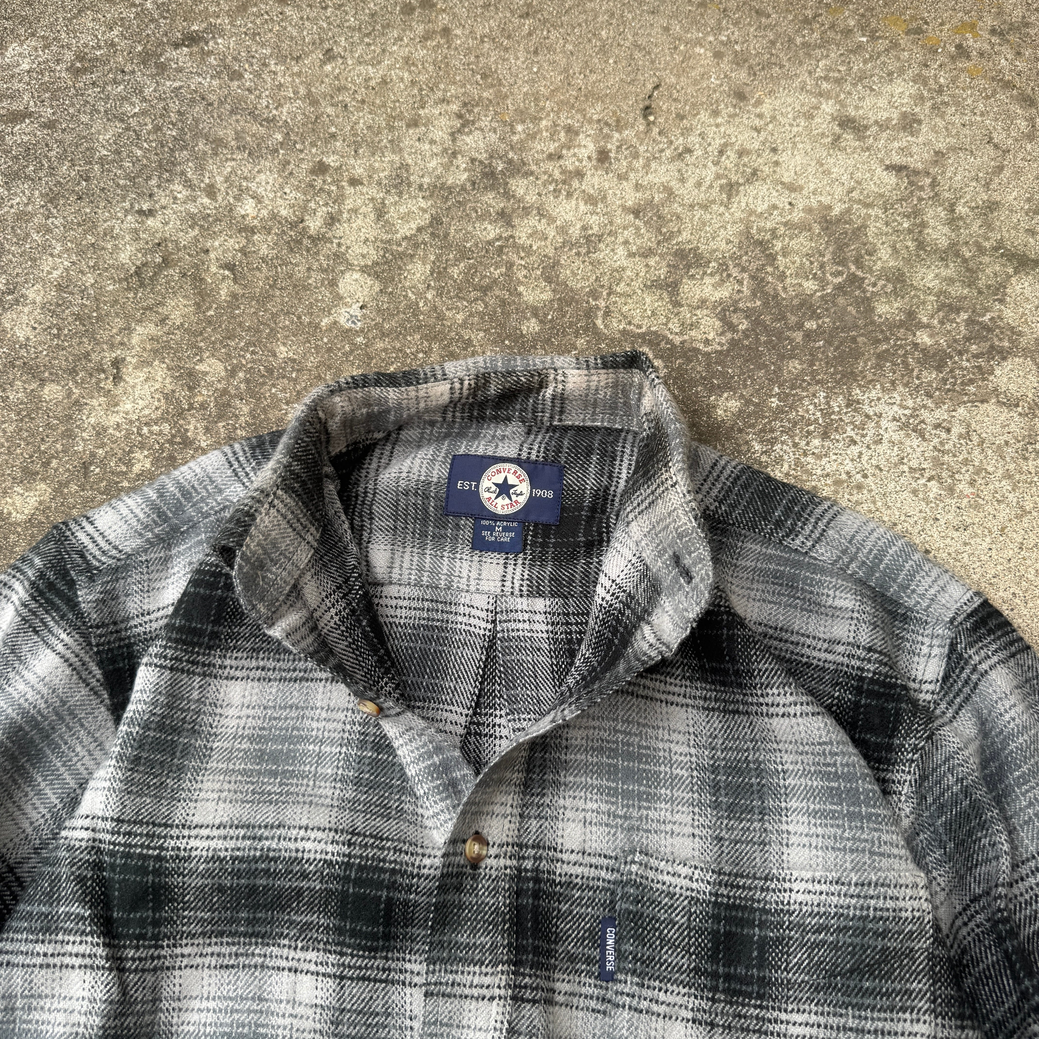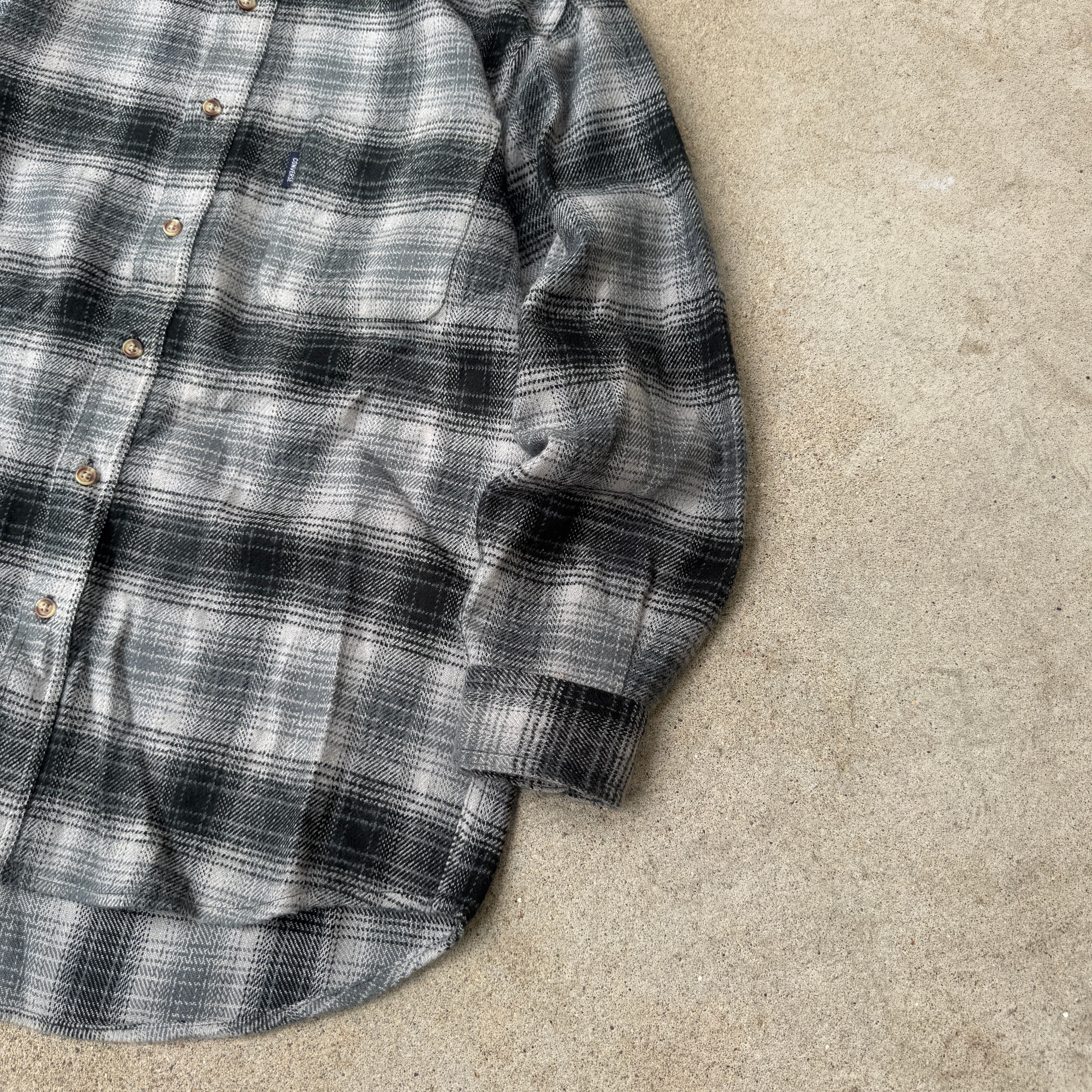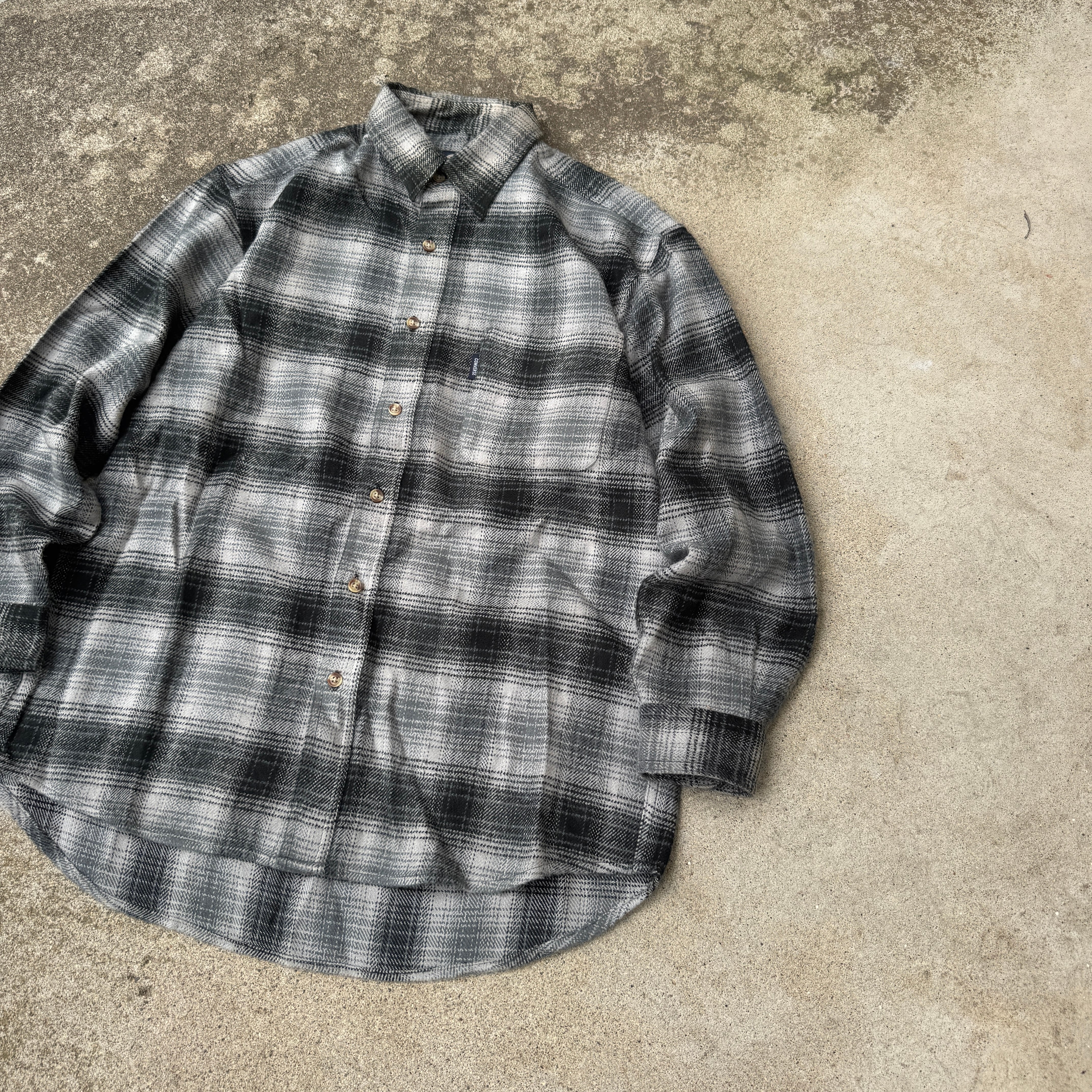 1990's "CONVERSE" L/S shirt shadow check monotone M / 90年代 "コンバース" 長袖 シャツ オンブレ シャドーチェック モノトーン
