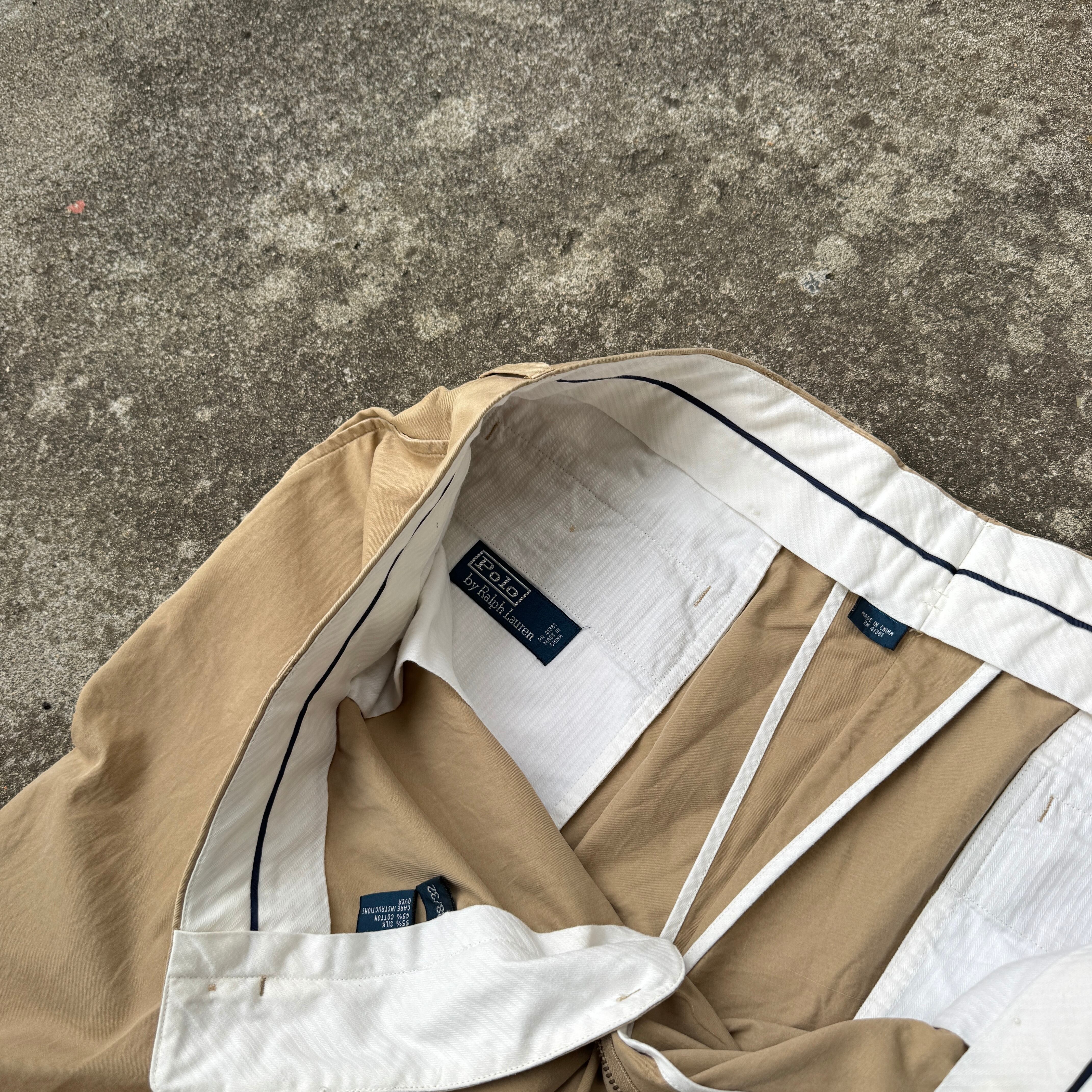 1990's "Polo by Ralph Lauren" silk×cotton slacks pants beige 38×32 / 90年代 "ポロバイラルフローレン" シルク×コットン スラックス パンツ ベージュ