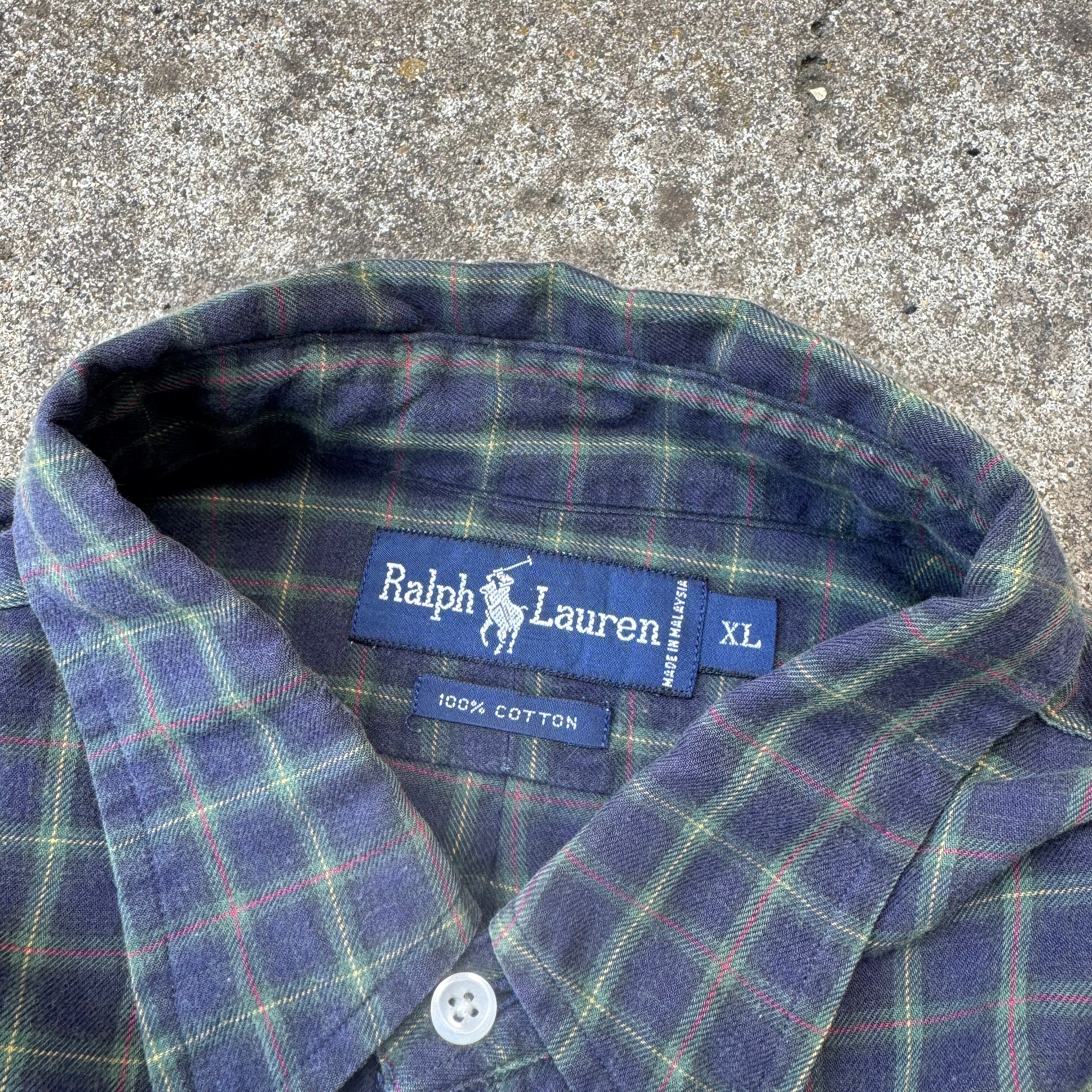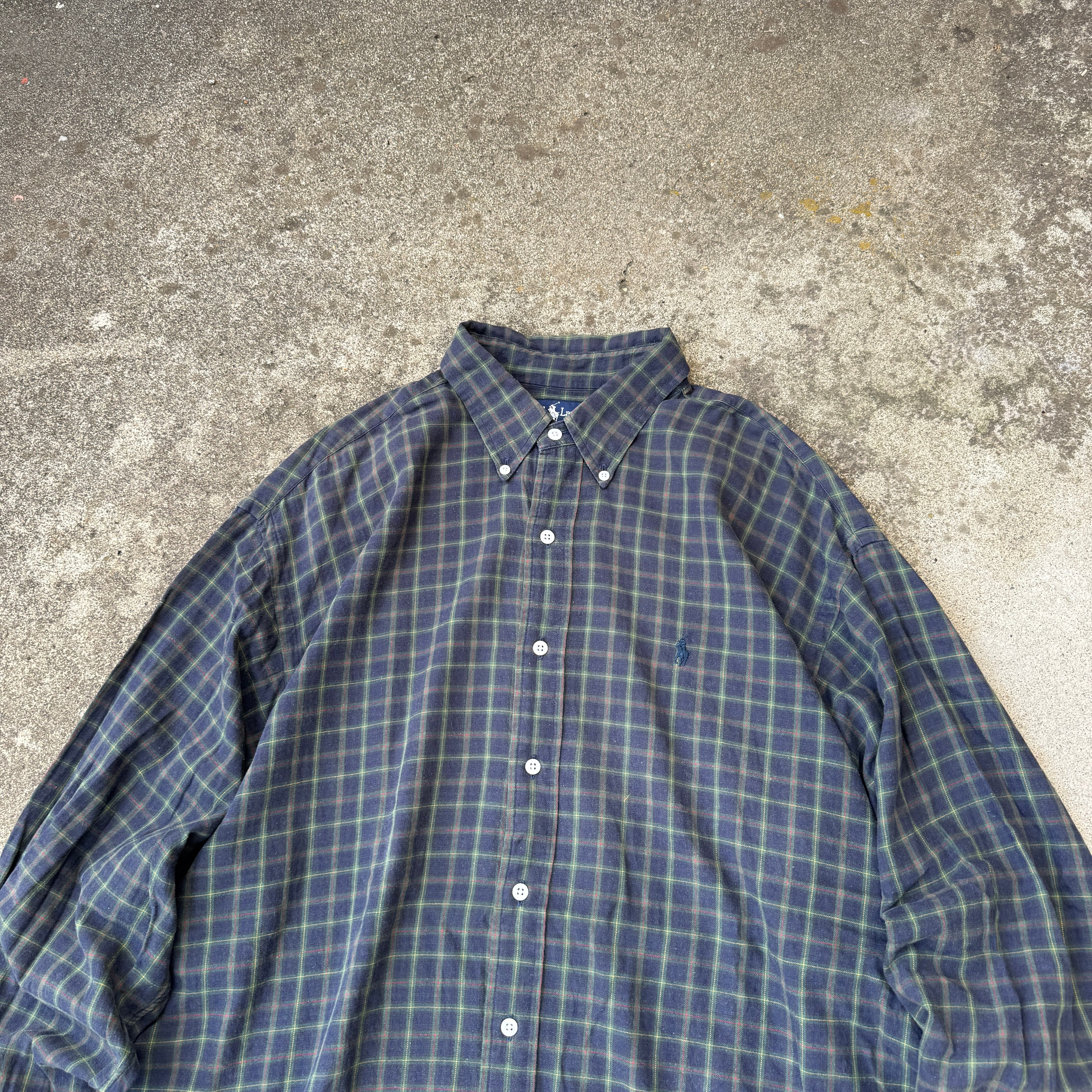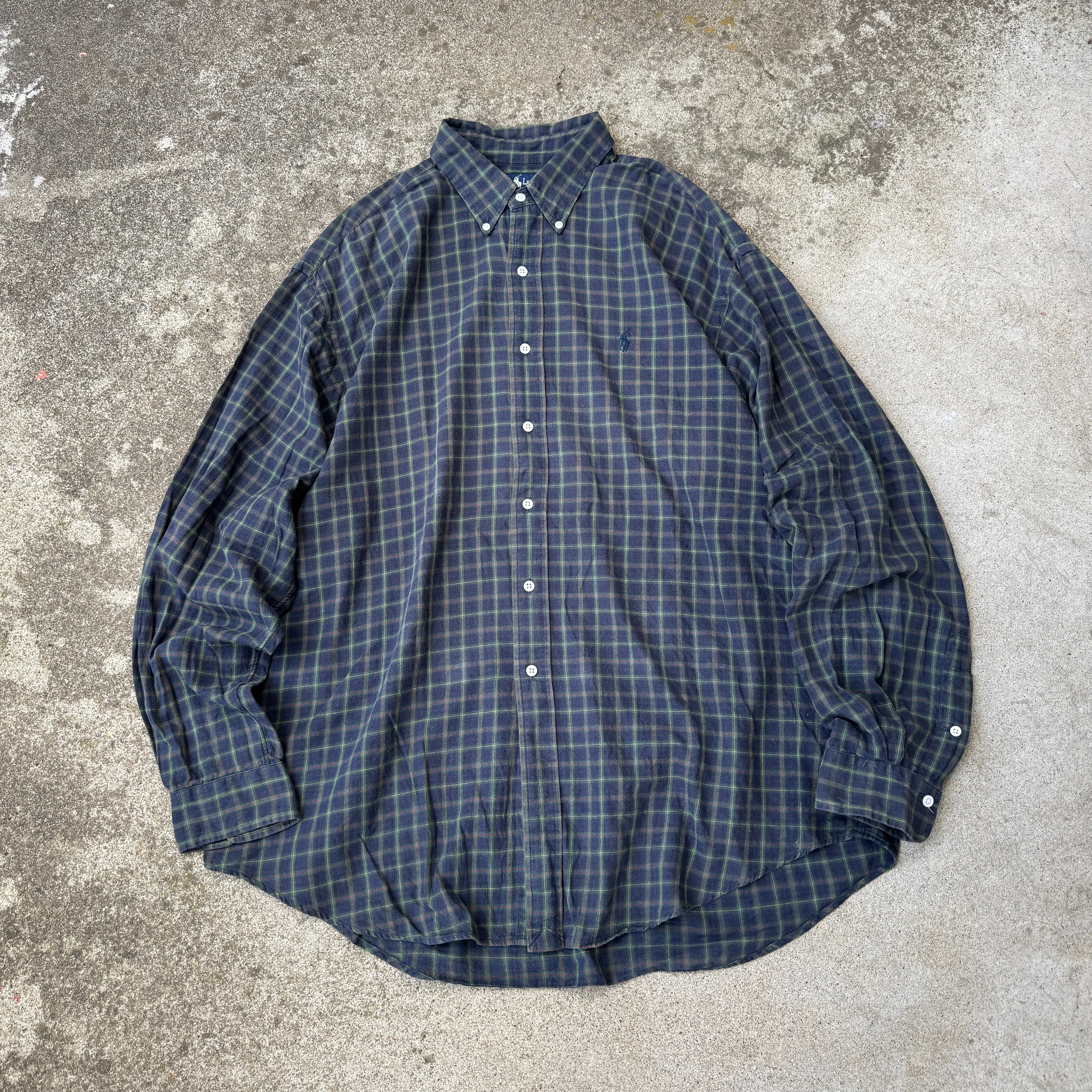 1990's "Ralph Lauren" L/S shirt black watch shadow check XL / 90年代 "ラルフローレン" 長袖 シャツ ブラックウォッチ シャドーチェック