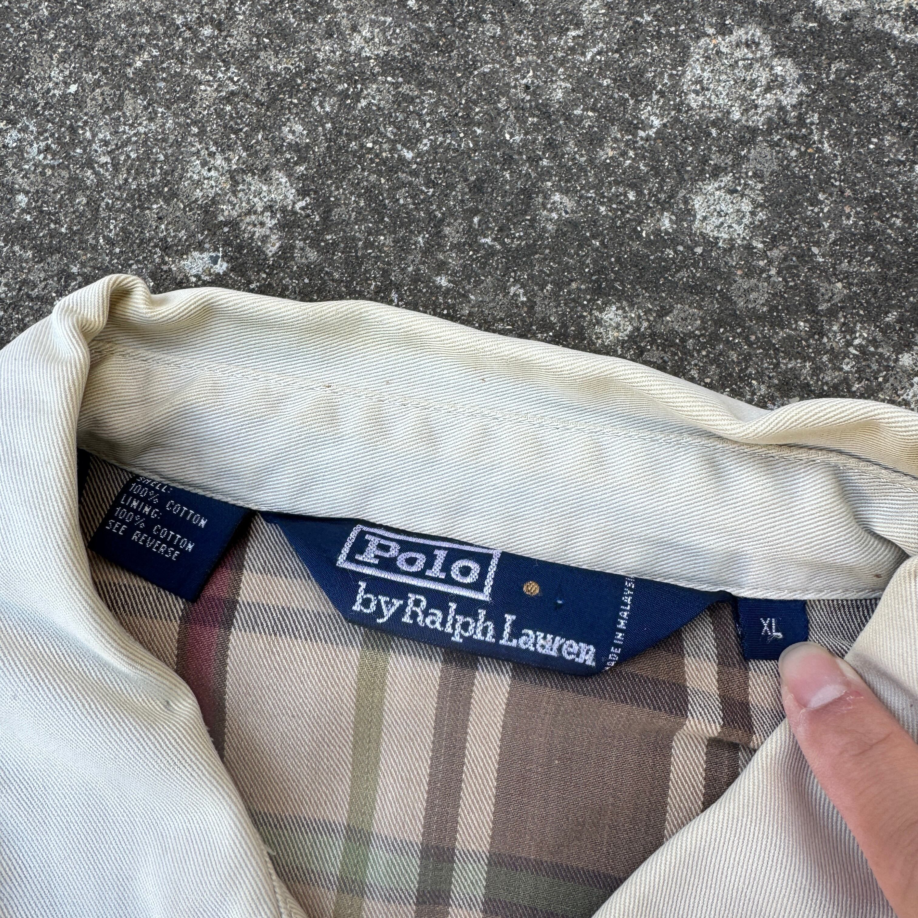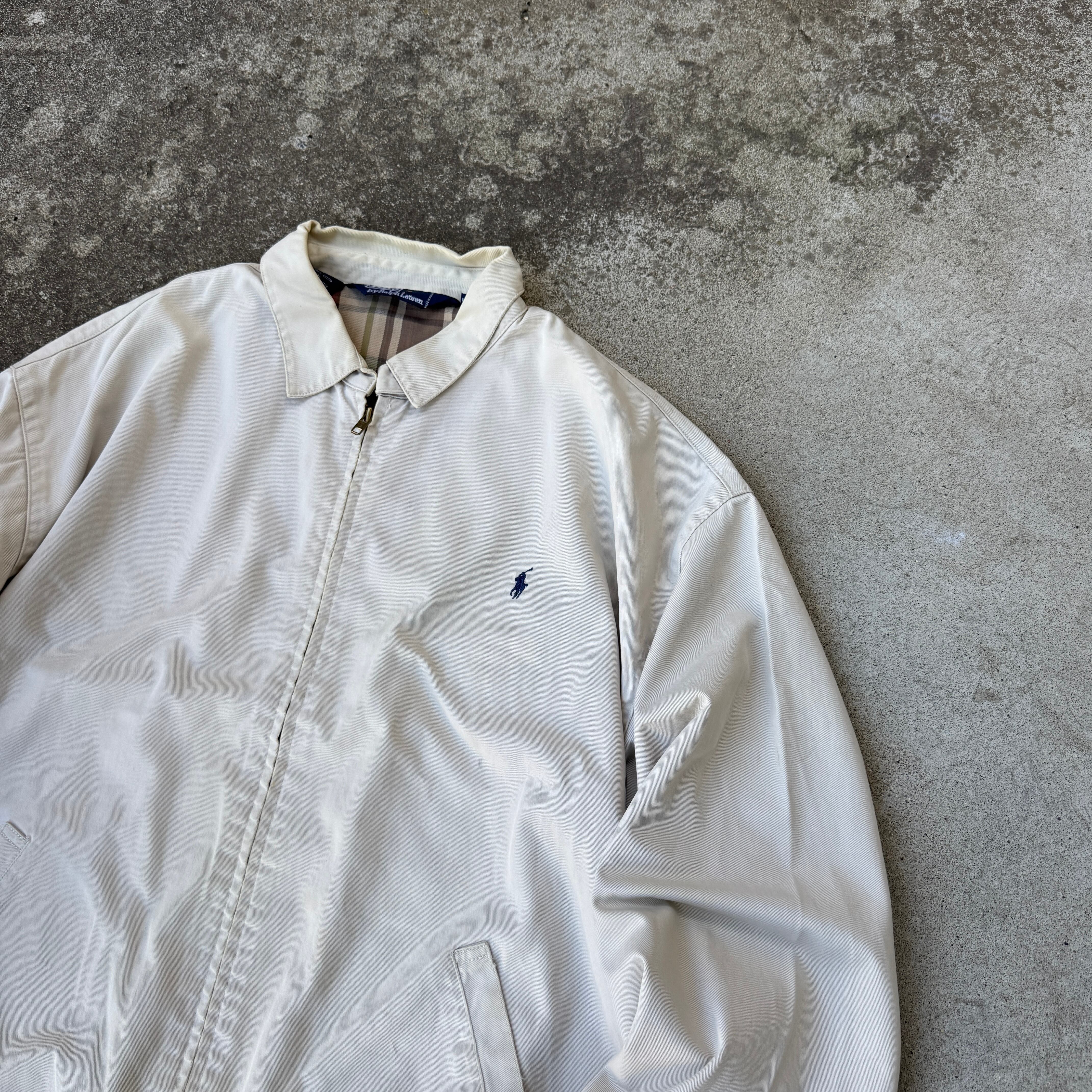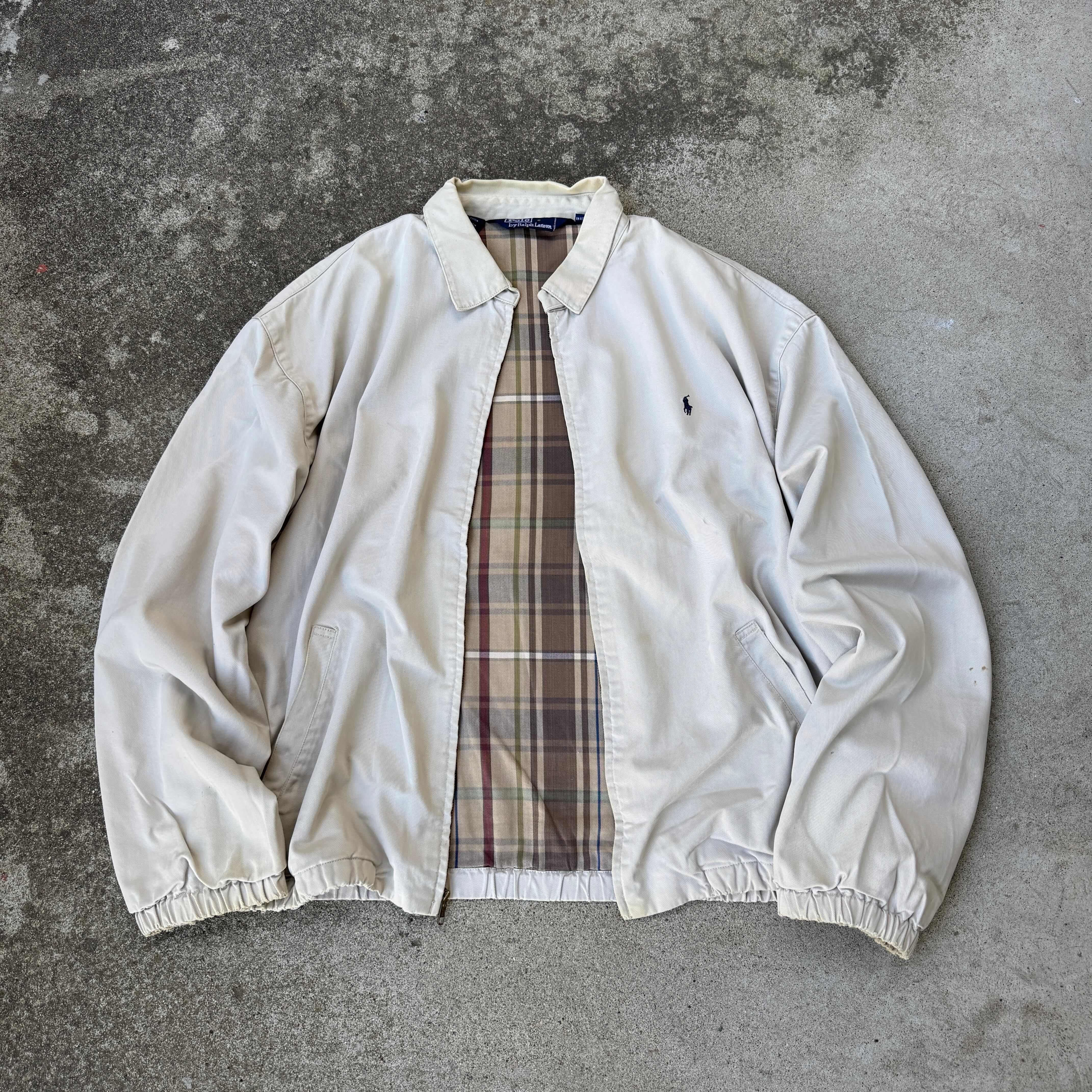 1980's "Polo by Ralph Lauren" swing top zip up jacket blouson beige flannel check XL / 80年代 "ポロバイラルフローレン" スウィングトップ ブルゾン ジップアップ 短丈ジャケット 裏ネル ベージュ