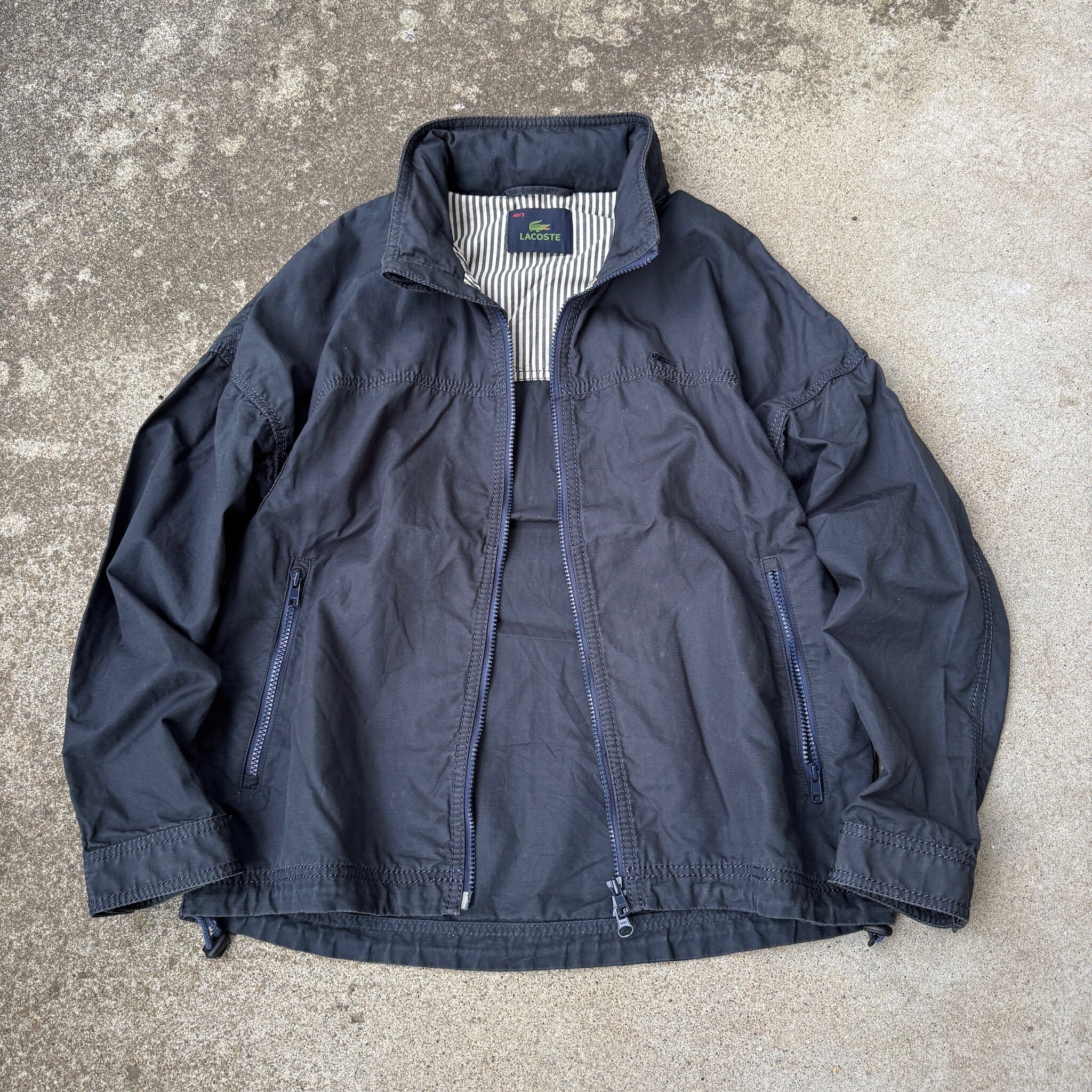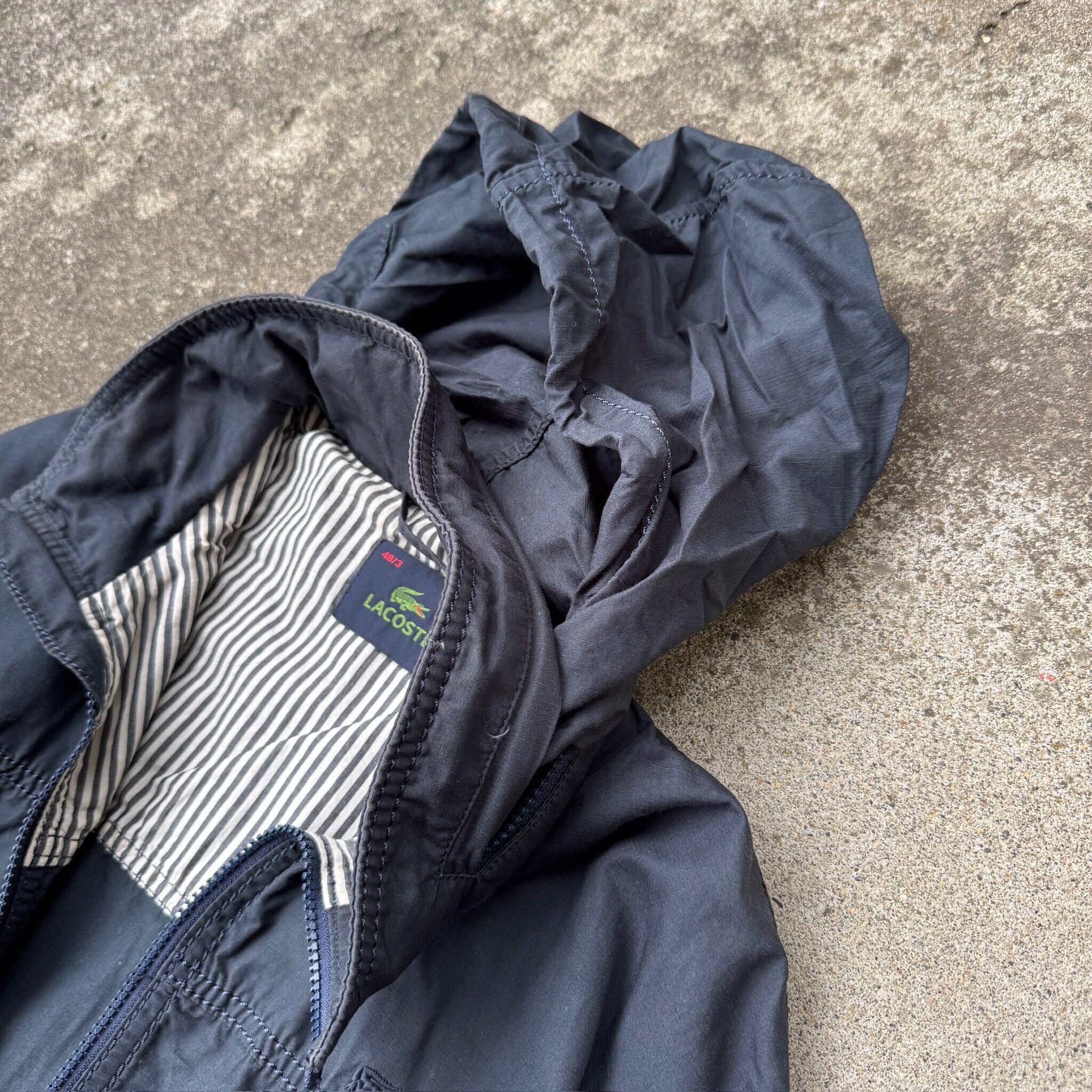1990's "LACOSTE" swing top blouson hoodie parka zip up navy M / 90年代 "ラコステ" ブルゾン 短丈ジャケット ジップアップ フーディー パーカー ネイビー