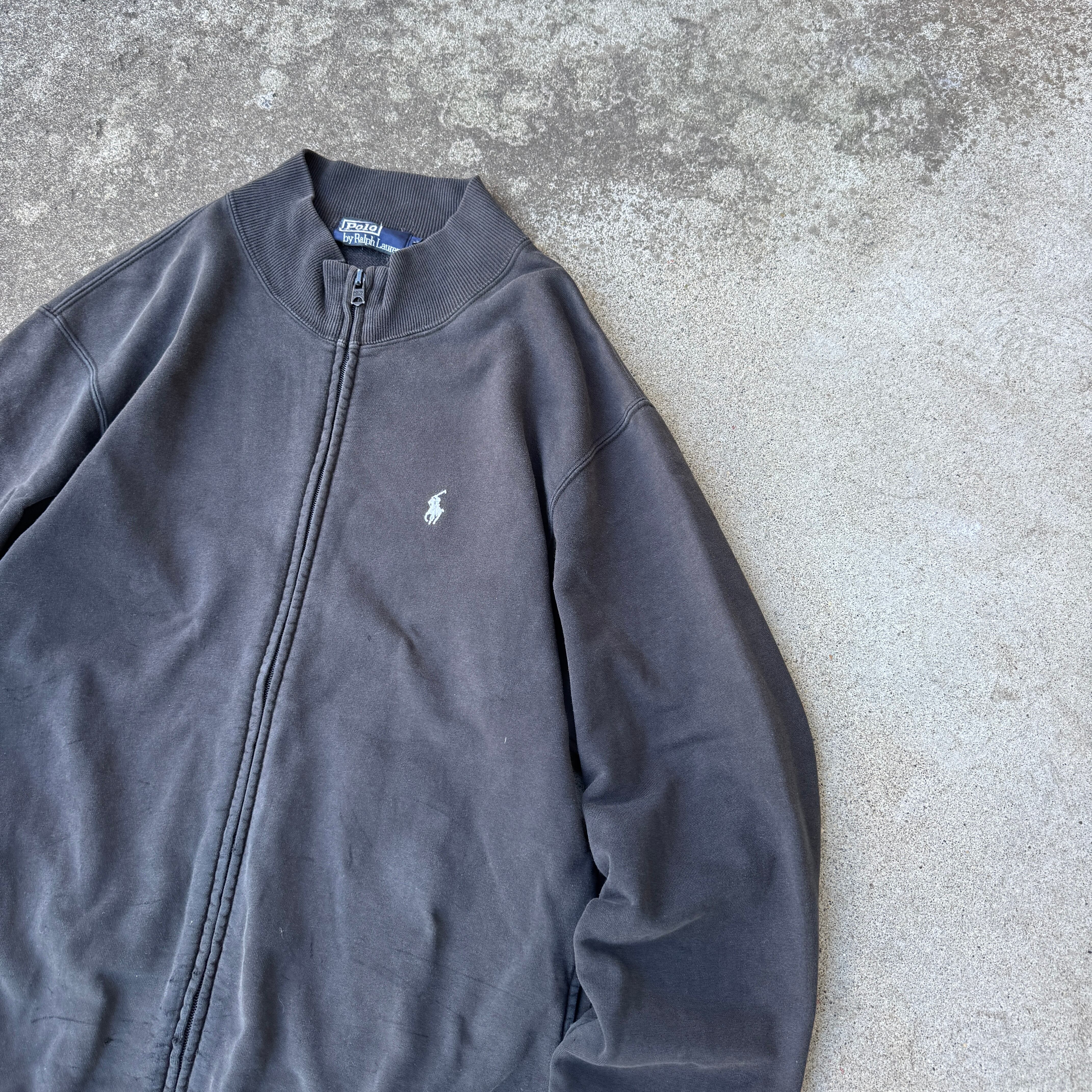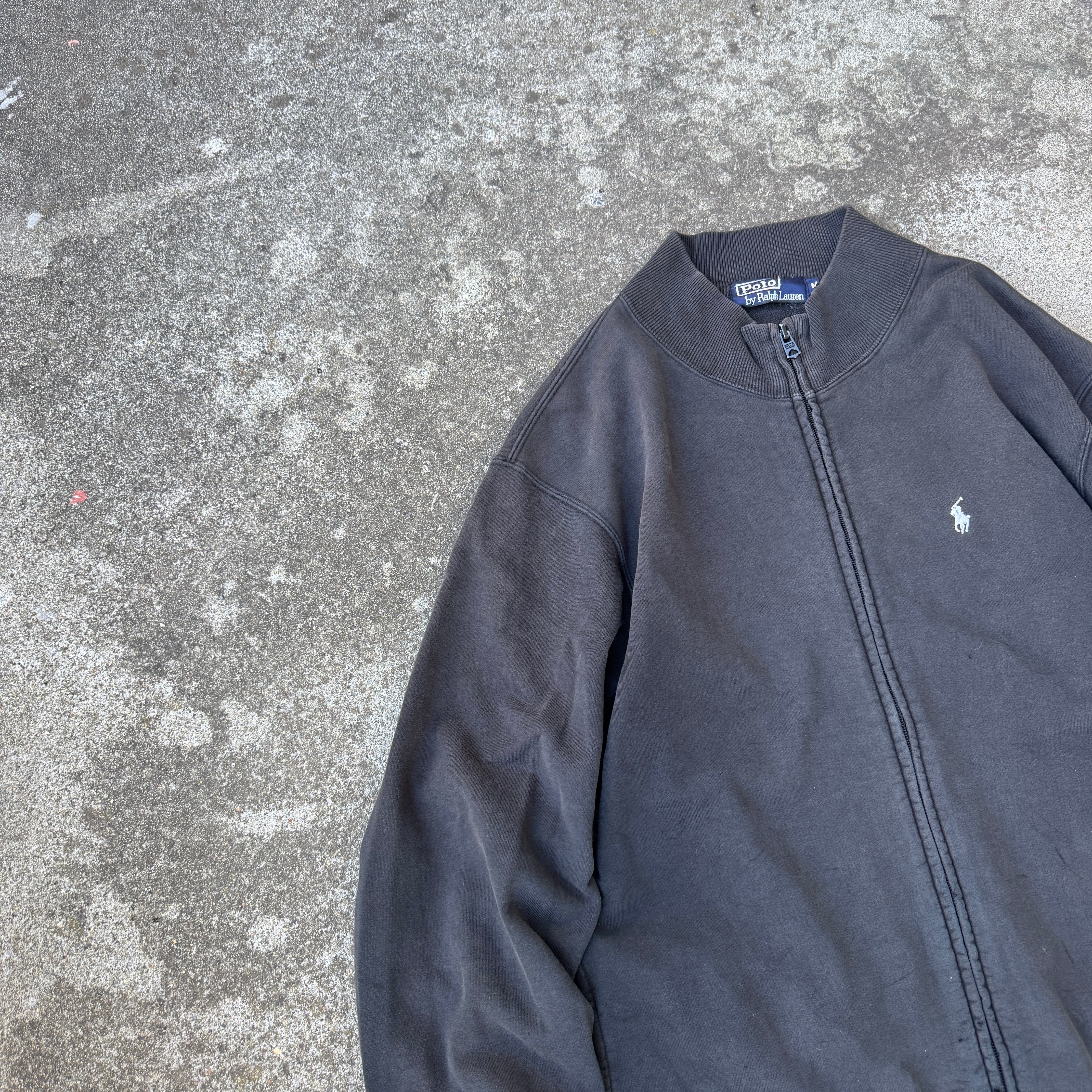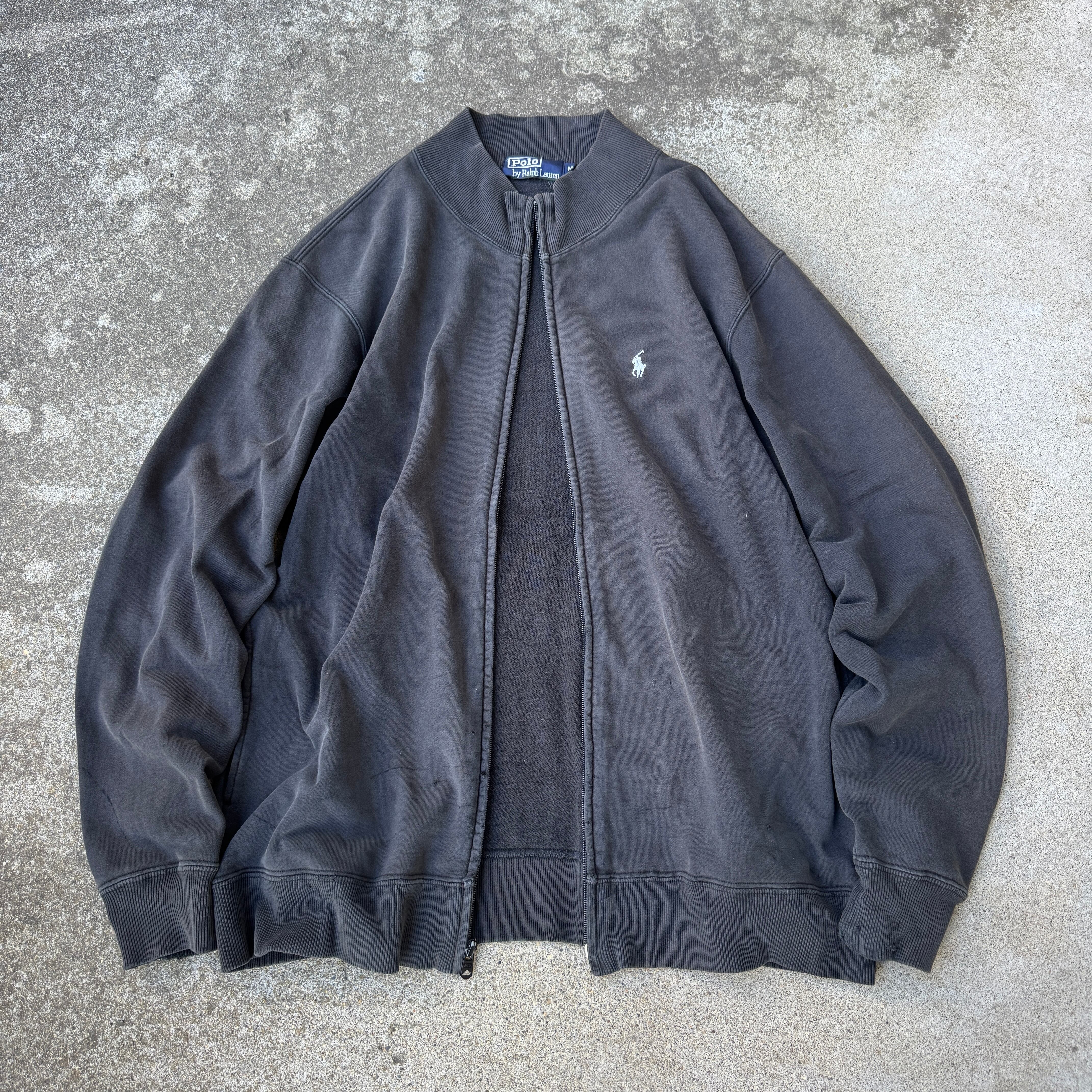 1990's "Polo by Ralph Lauren" zip up sweat black fade M / 90年代 "ポロバイラルフローレン" スウェット ジップアップ ブラック フェード