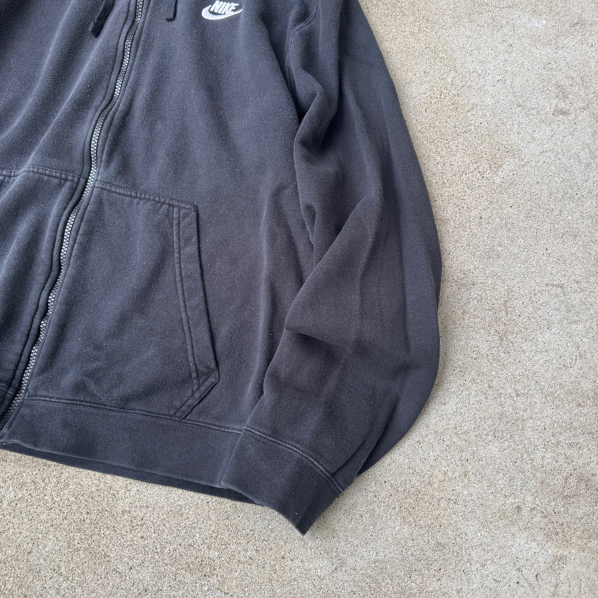 2000's "NIKE" zip up hoodie parka sweat swoosh black L / 2000年代 "ナイキ" ジップアップ フーディー パーカー スウェット 刺繍スウッシュ ブラック