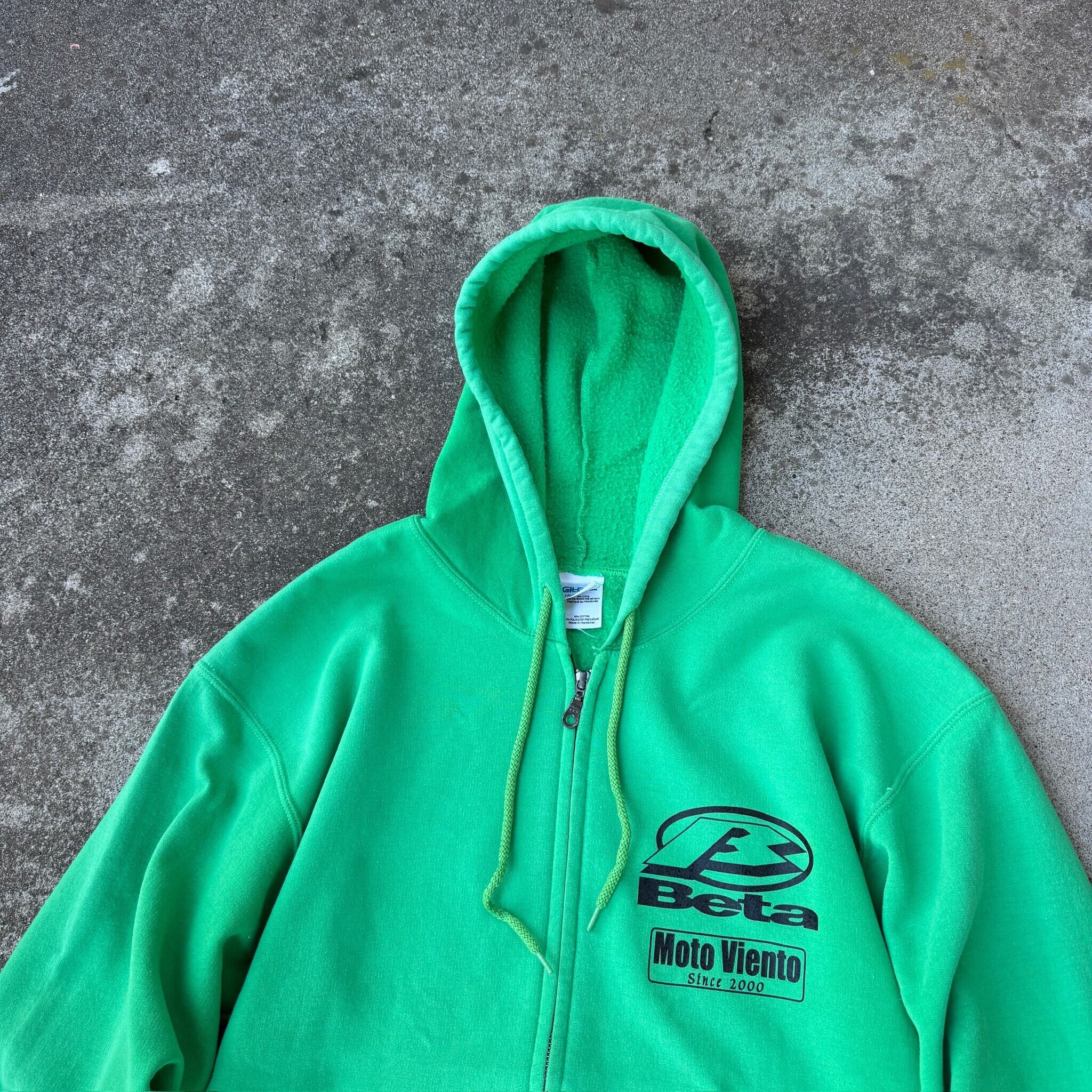 2000's "GILDAN" Beta zip up hoodie parka sweat fade green M / 2000年代 "ギルダン" ジップアップ フーディー パーカー スウェット トレーナー フェード グリーン