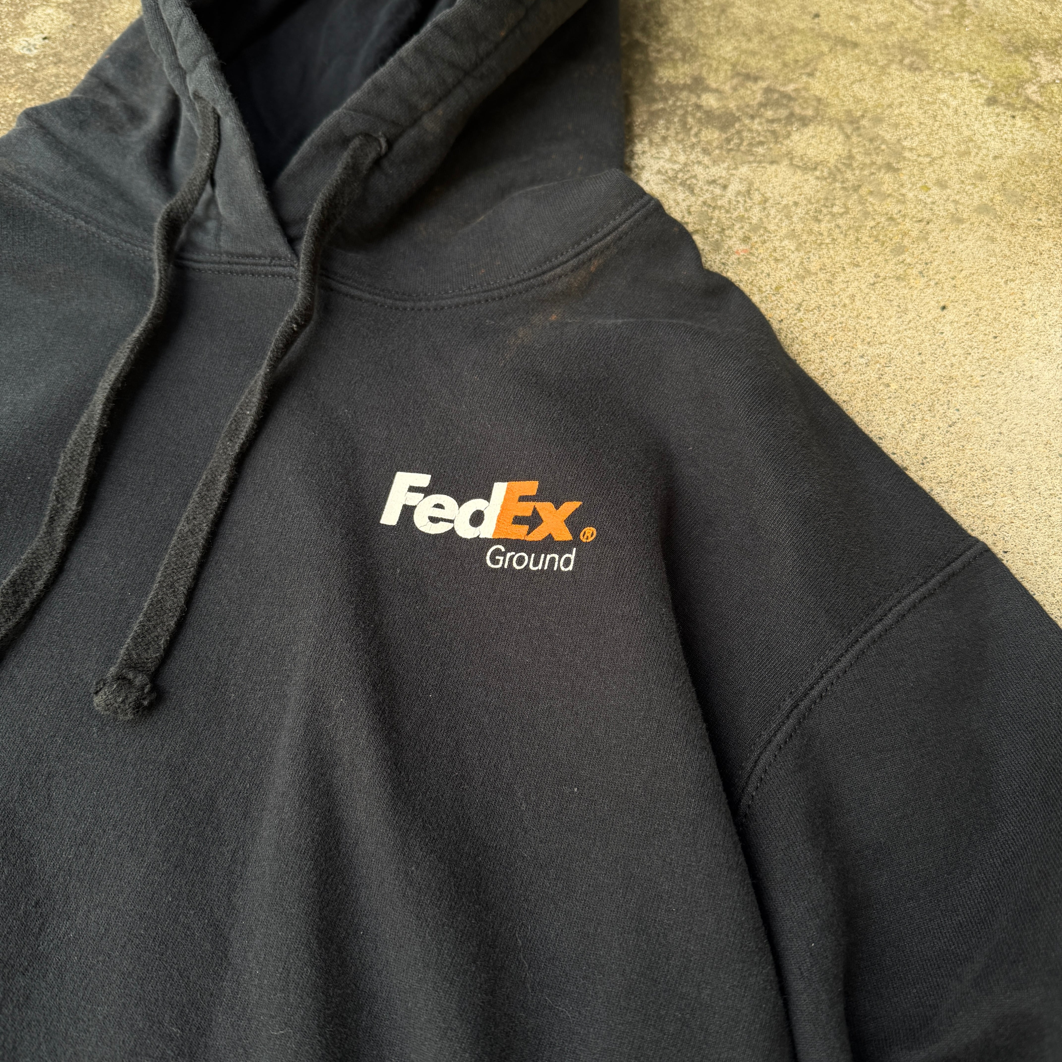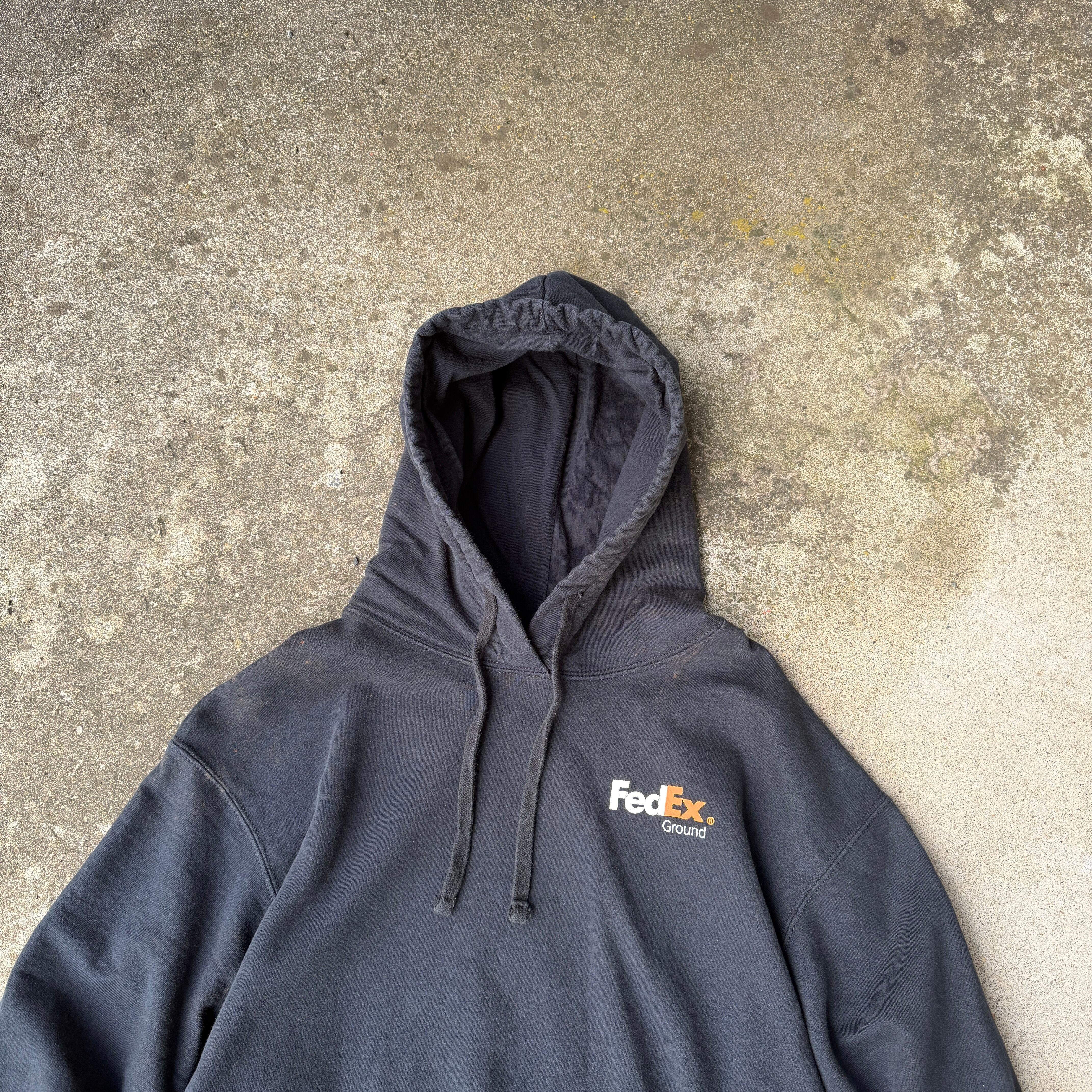 2000's "FedEx" hoodie parka pullover sweat black fade L / 2000年代 "フェデックス" フーディー パーカー スウェット トレーナー フェード 褪色 ブラック プルオーバー