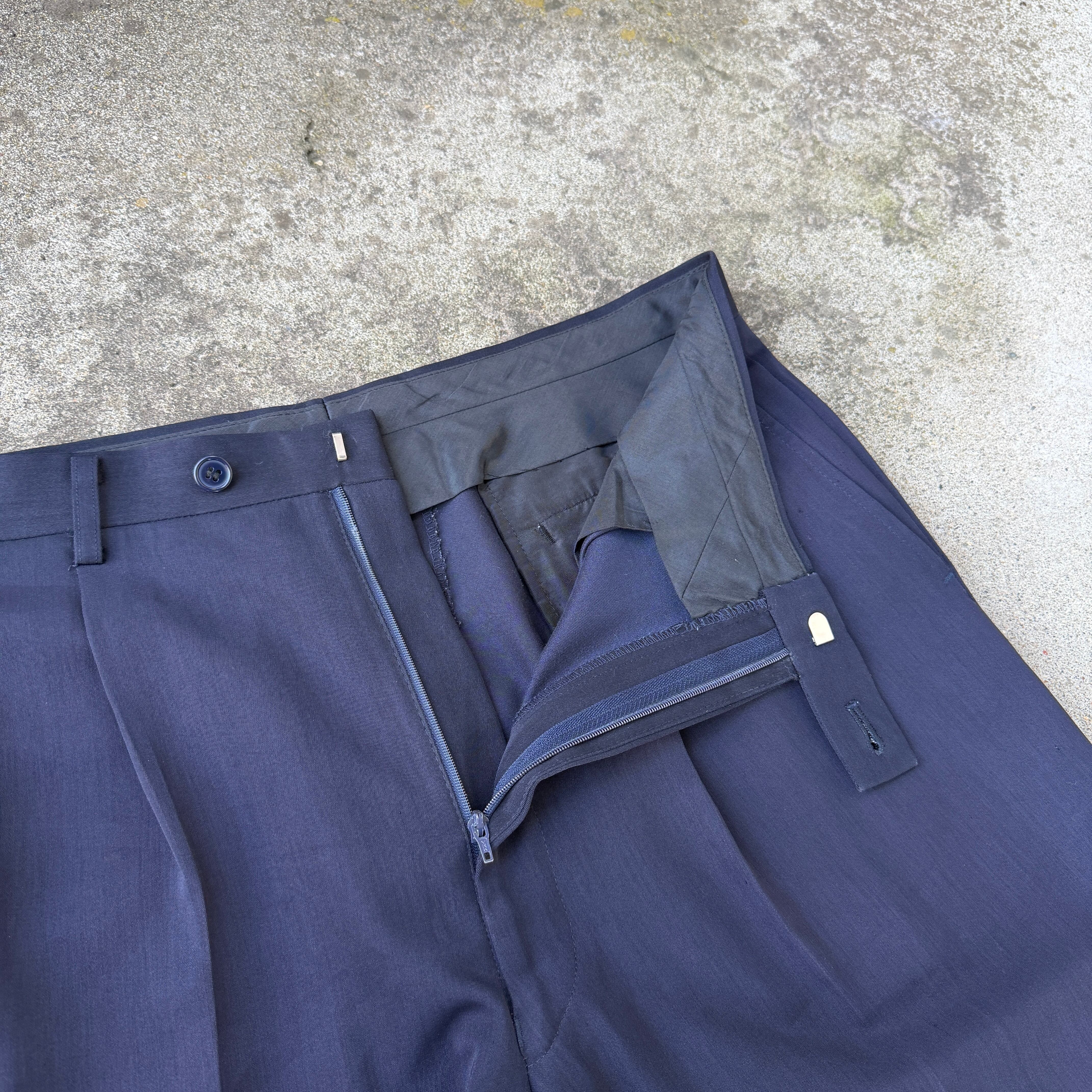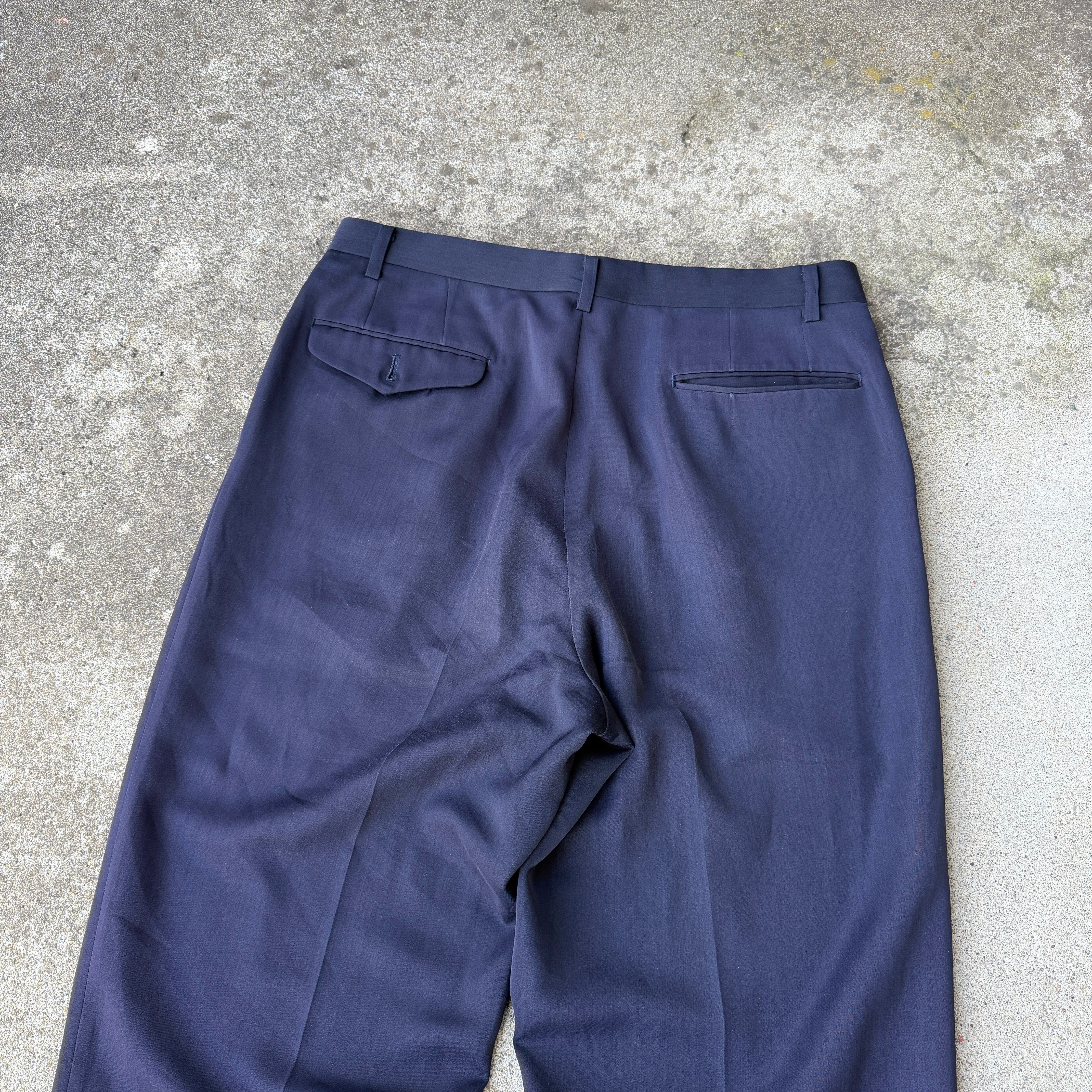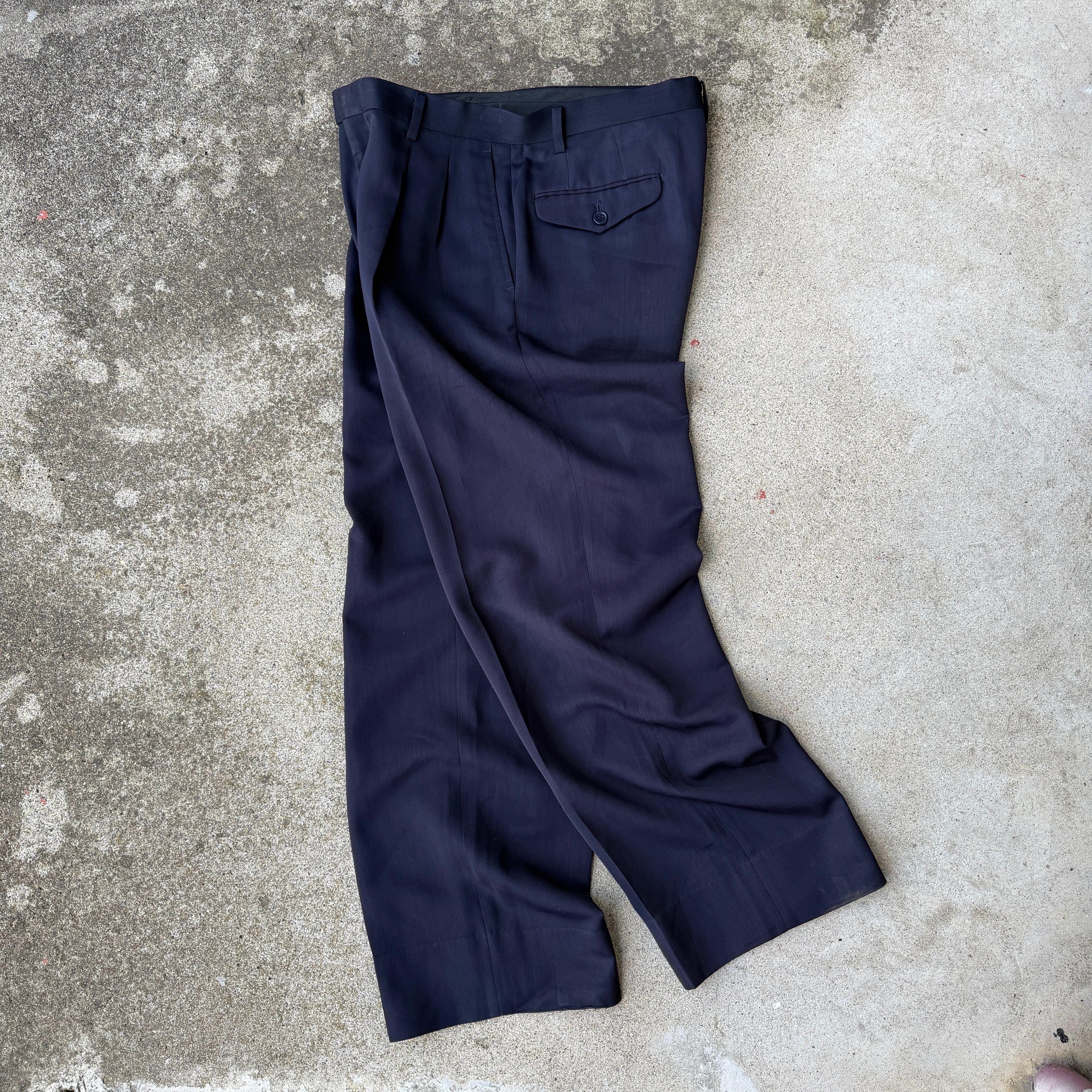 1980's~ "B&M" vintage wide slacks pants navy / 80年代〜 "ビーアンドエム" ヴィンテージ ワイド スラックス パンツ ネイビー