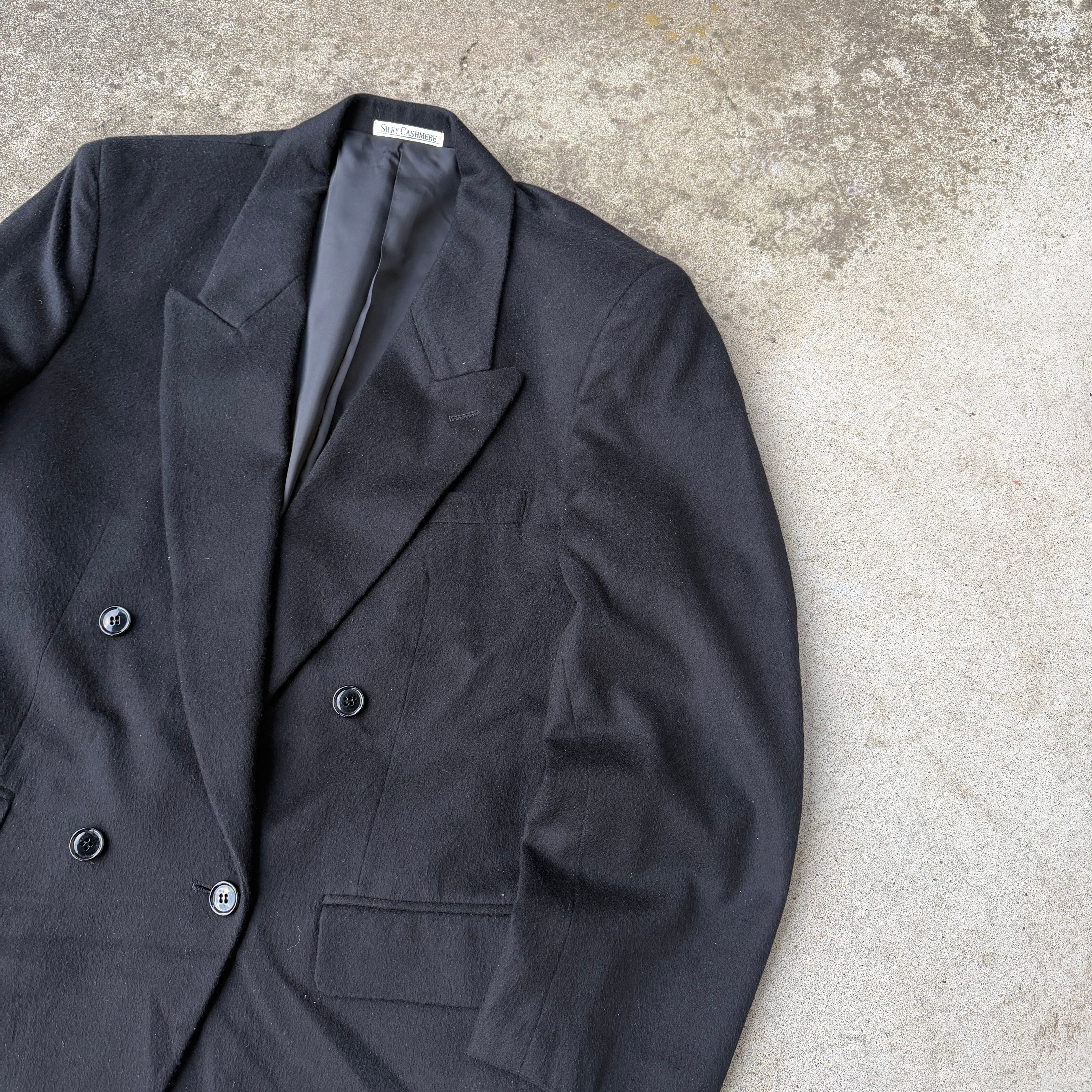 1990's "SILKY CASHMERE" tailored jacket double cashmere×silk black L / 90年代 "シルキーカシミヤ" テーラードジャケット ダブル カシミヤ×シルク ブラック