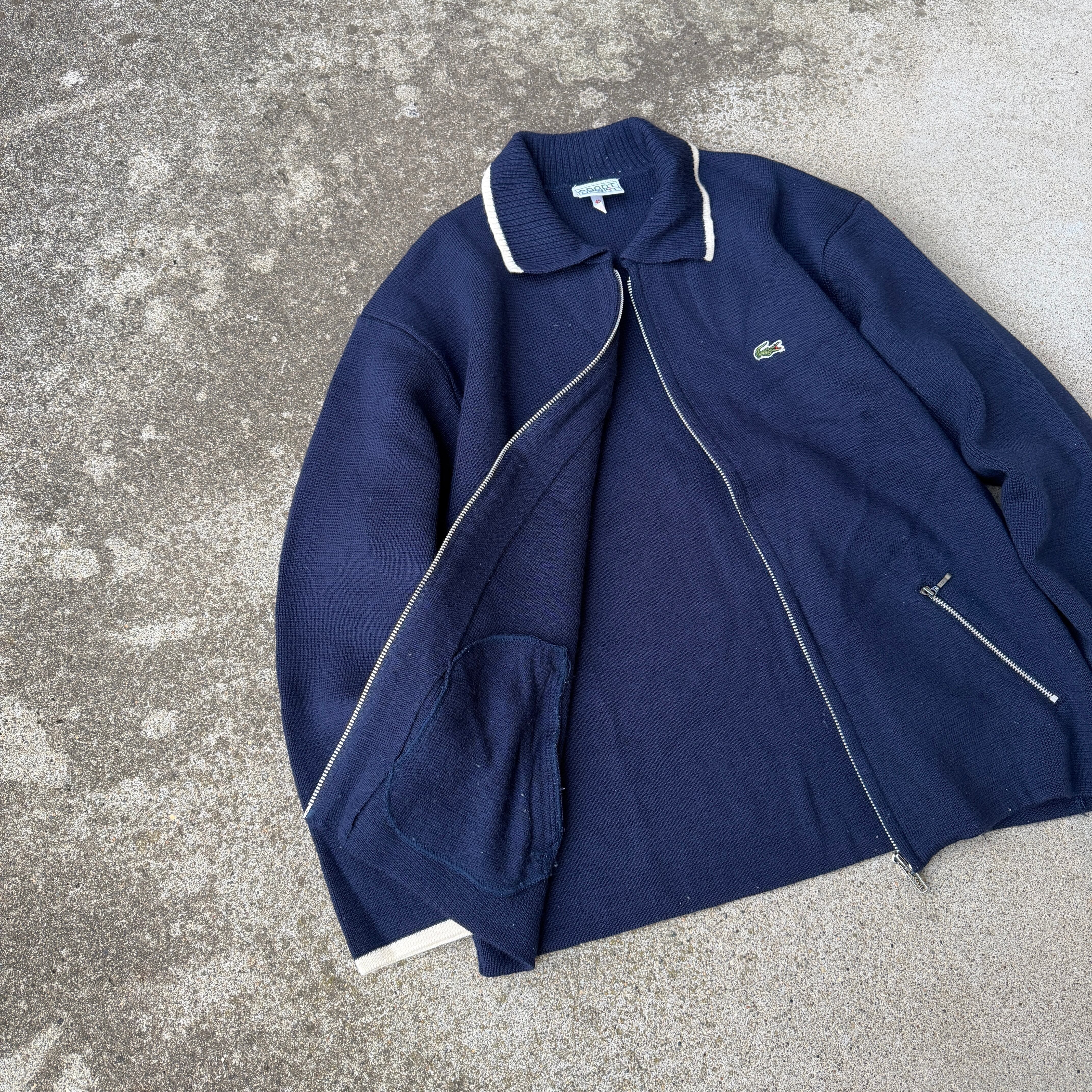 1990's "LACOSTE SPORT" wool zip up jacket 42 navy / 90年代 "ラコステスポーツ" ウールジャケット ジップアップ ネイビー