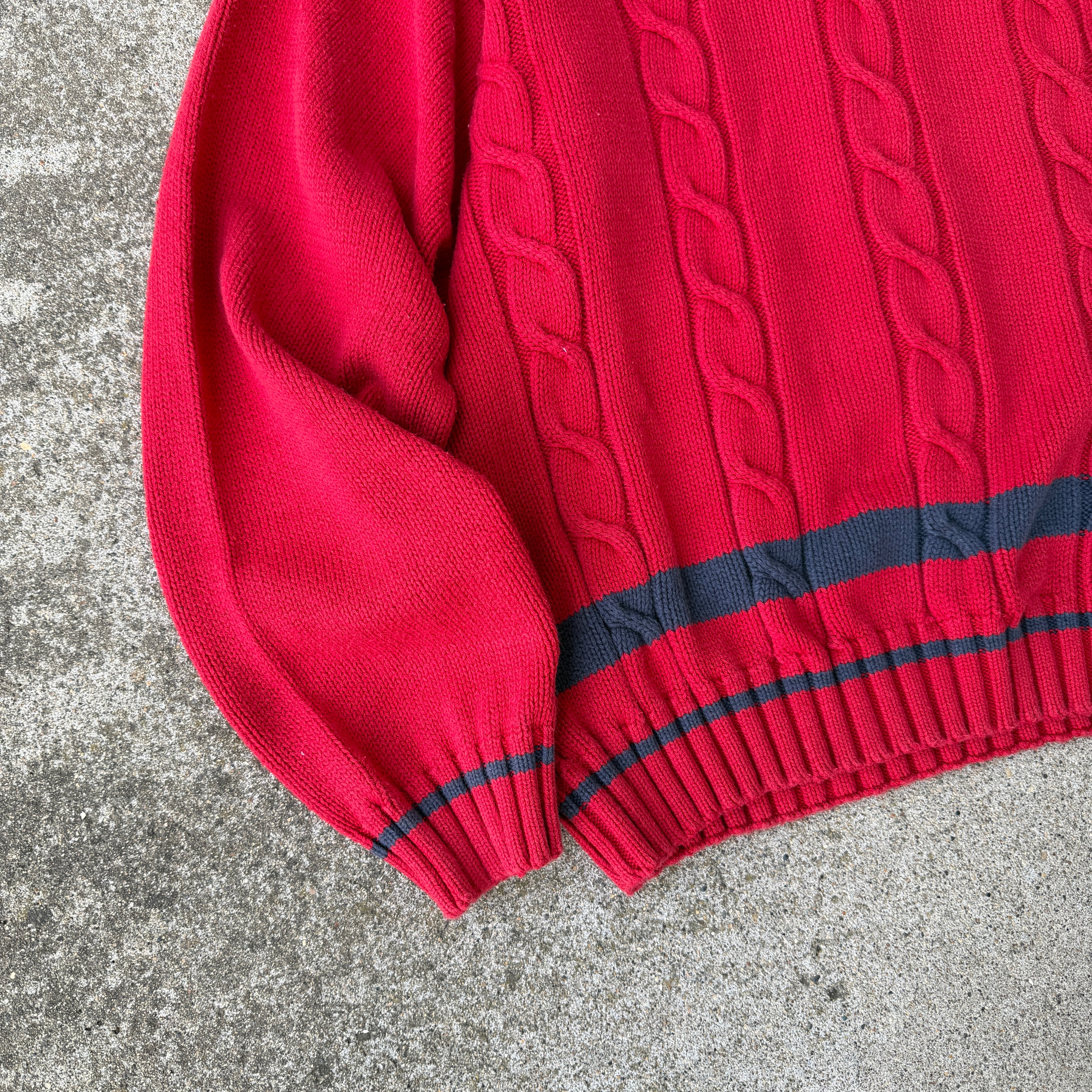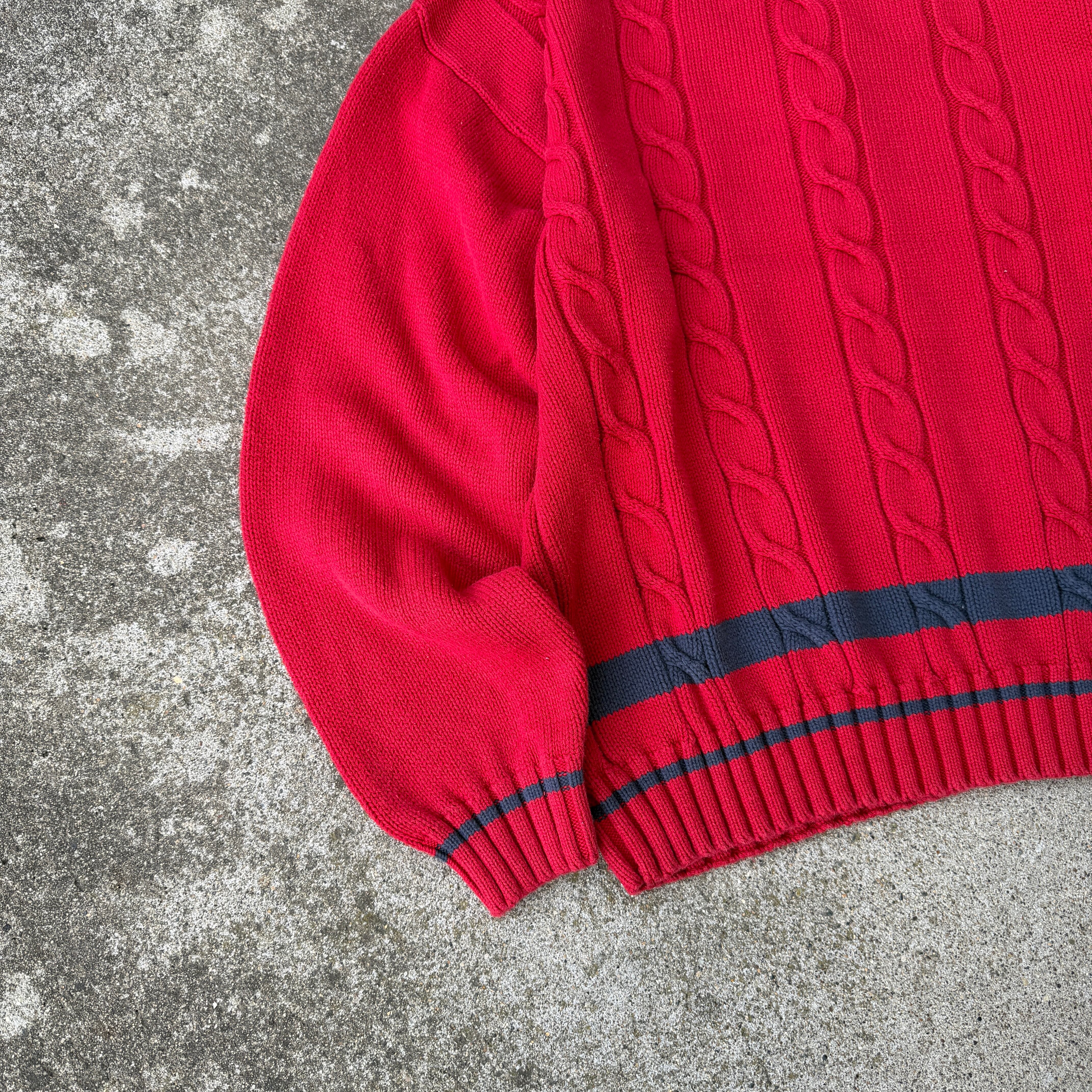 1990's "OLD GAP" tilden knit sweater Vneck Xmas red L / 90年代 "オールドギャップ" チルデンニット セーター Vネック レッド クリスマス