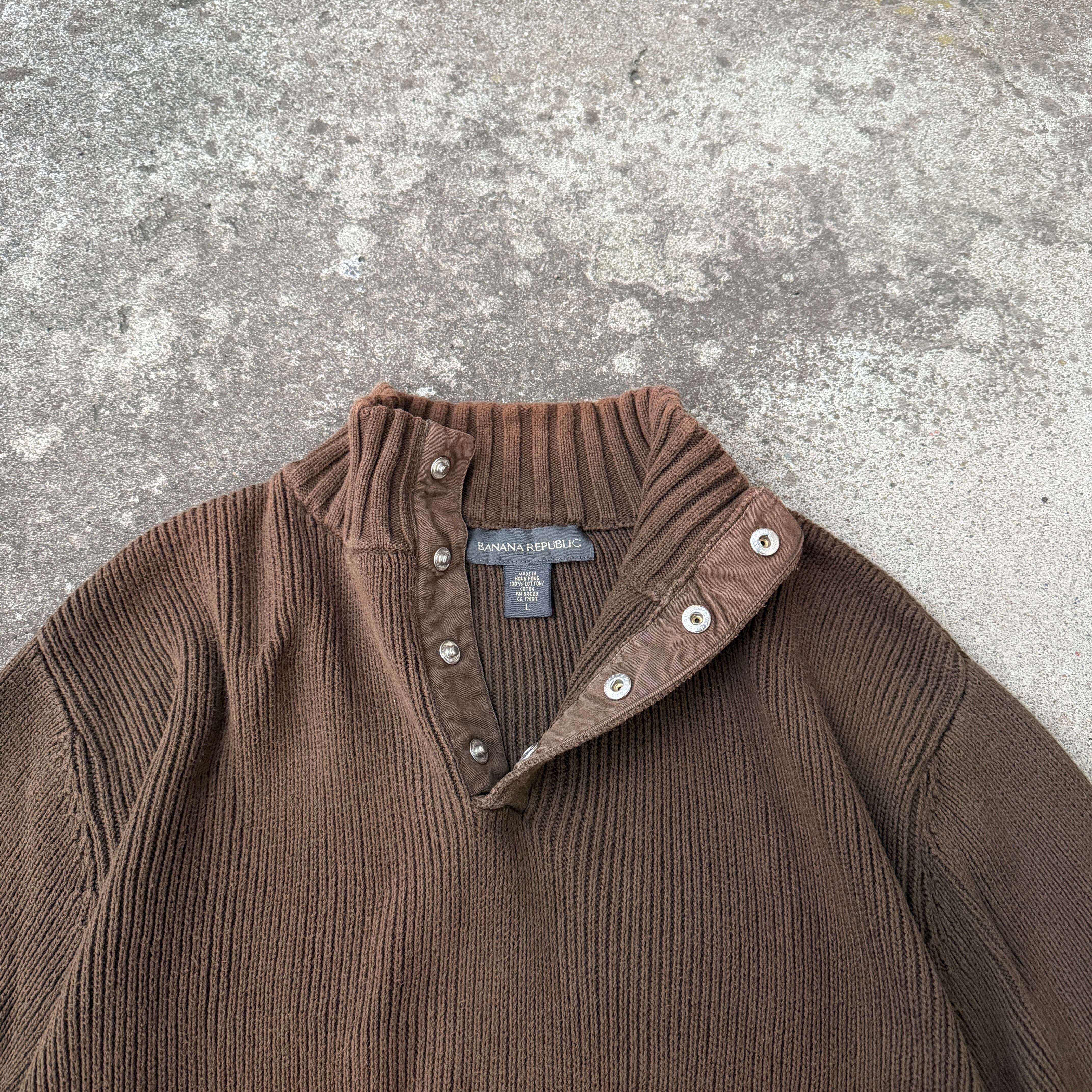 1990's~ "BANANA REPUBLIC" cotton knit sweater brown L / 90年代〜 "バナナリパブリック" コットンニット セーター ブラウン