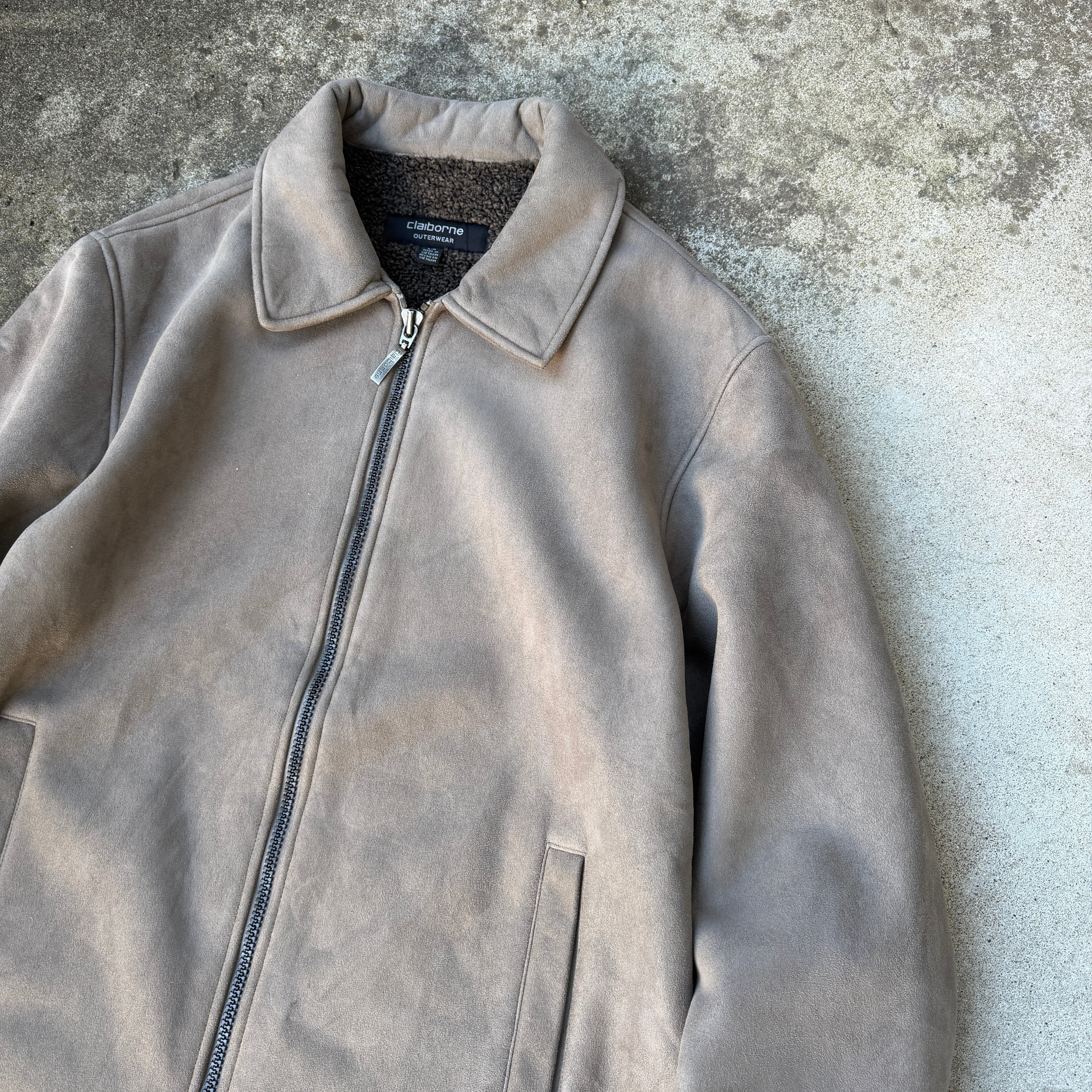 1990's "claiborne" fake leather jacket zip up boa L / 90年代 "クライボーン" フェイクレザージャケット ジップアップ ボア