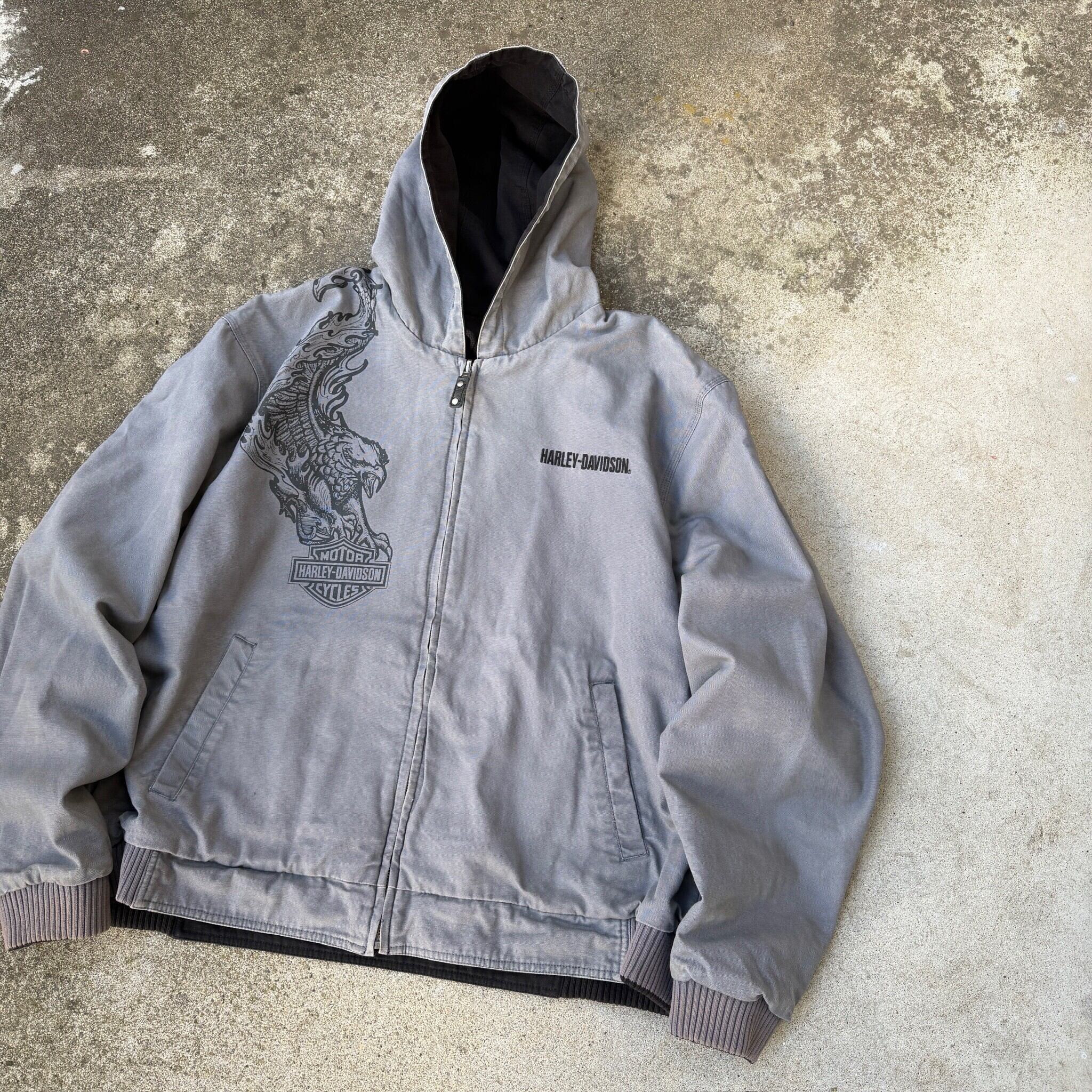 Harley Davidson reversible jacket hoodie parka zip up duck / ハーレーダビッドソン リバーシブル フーディー パーカー ダックジャケット