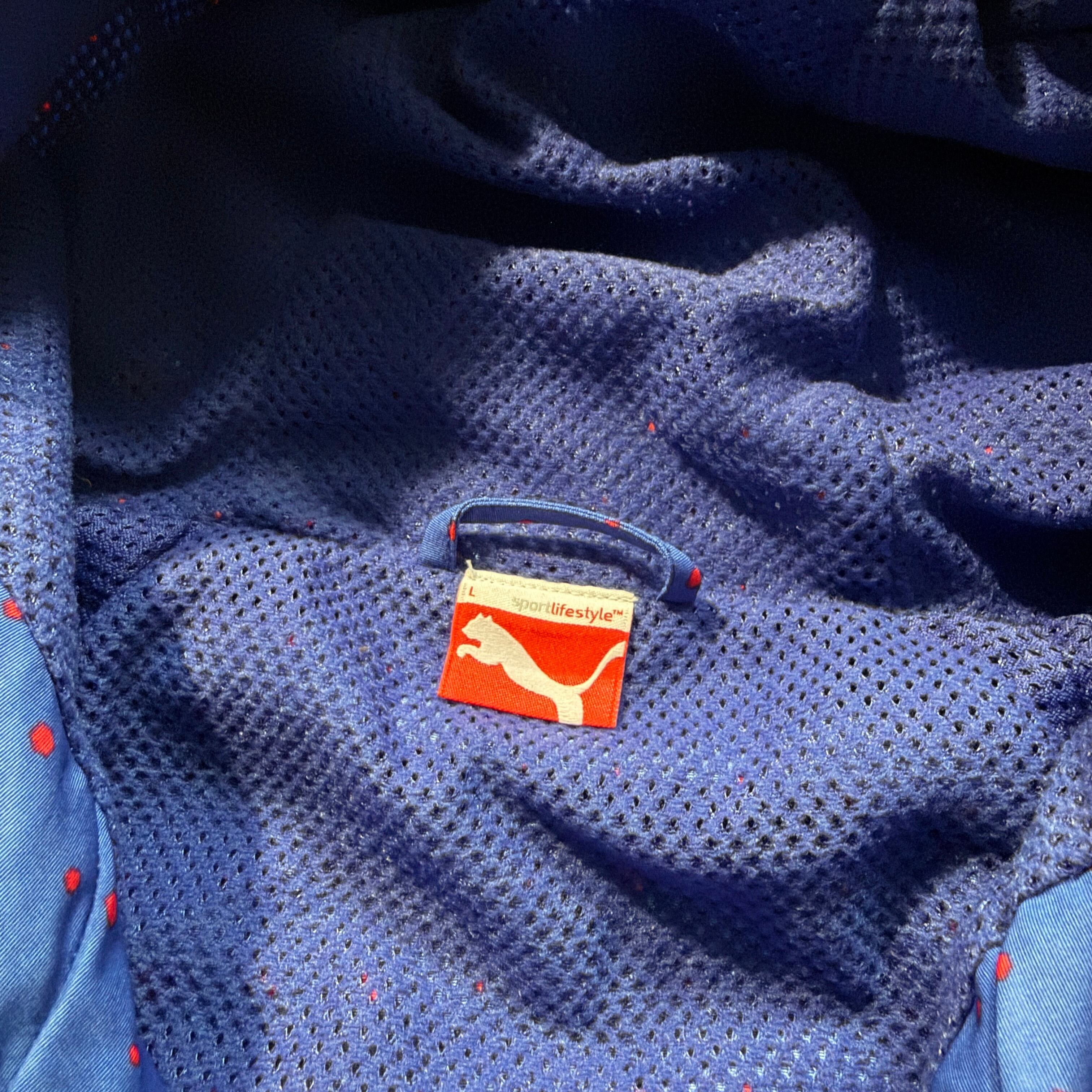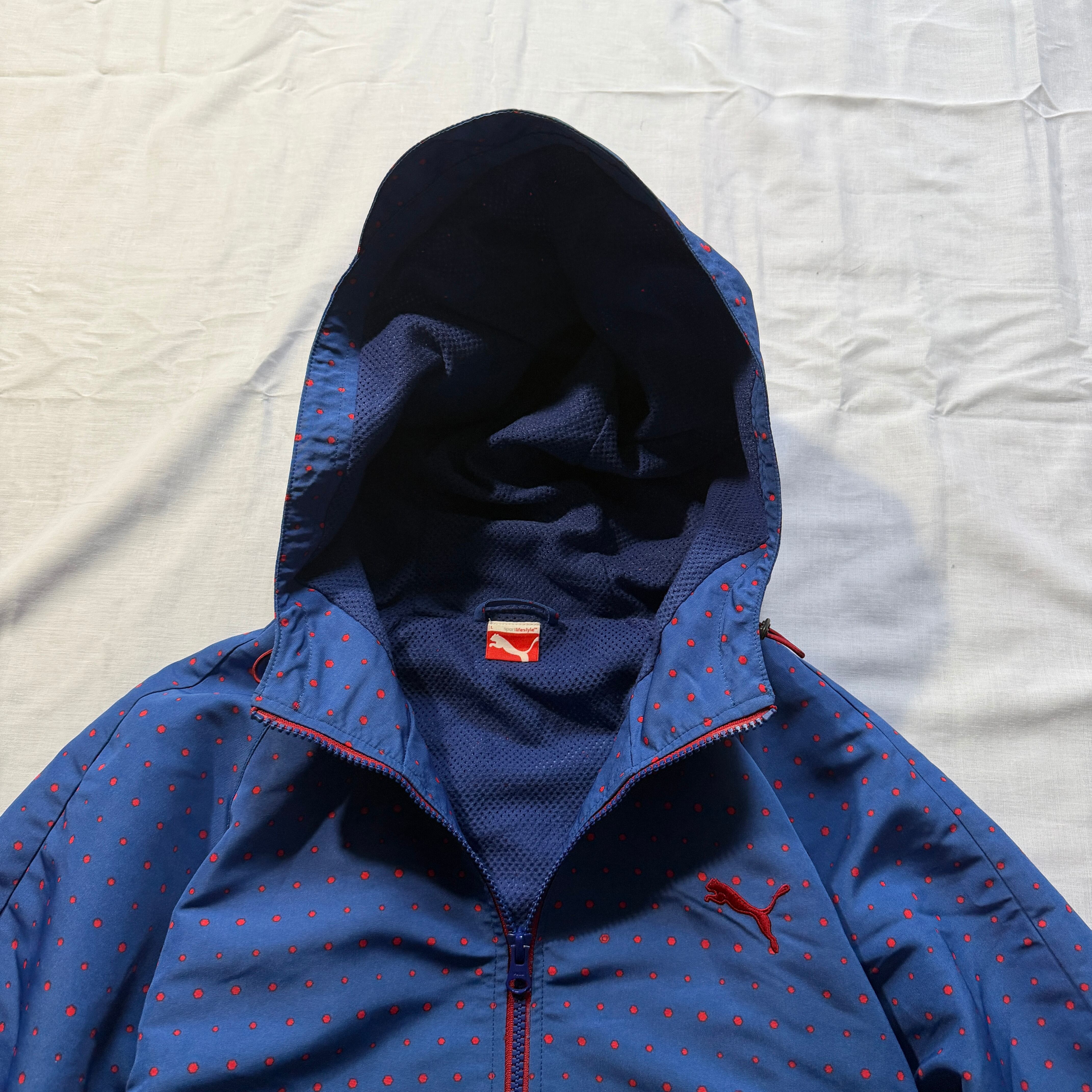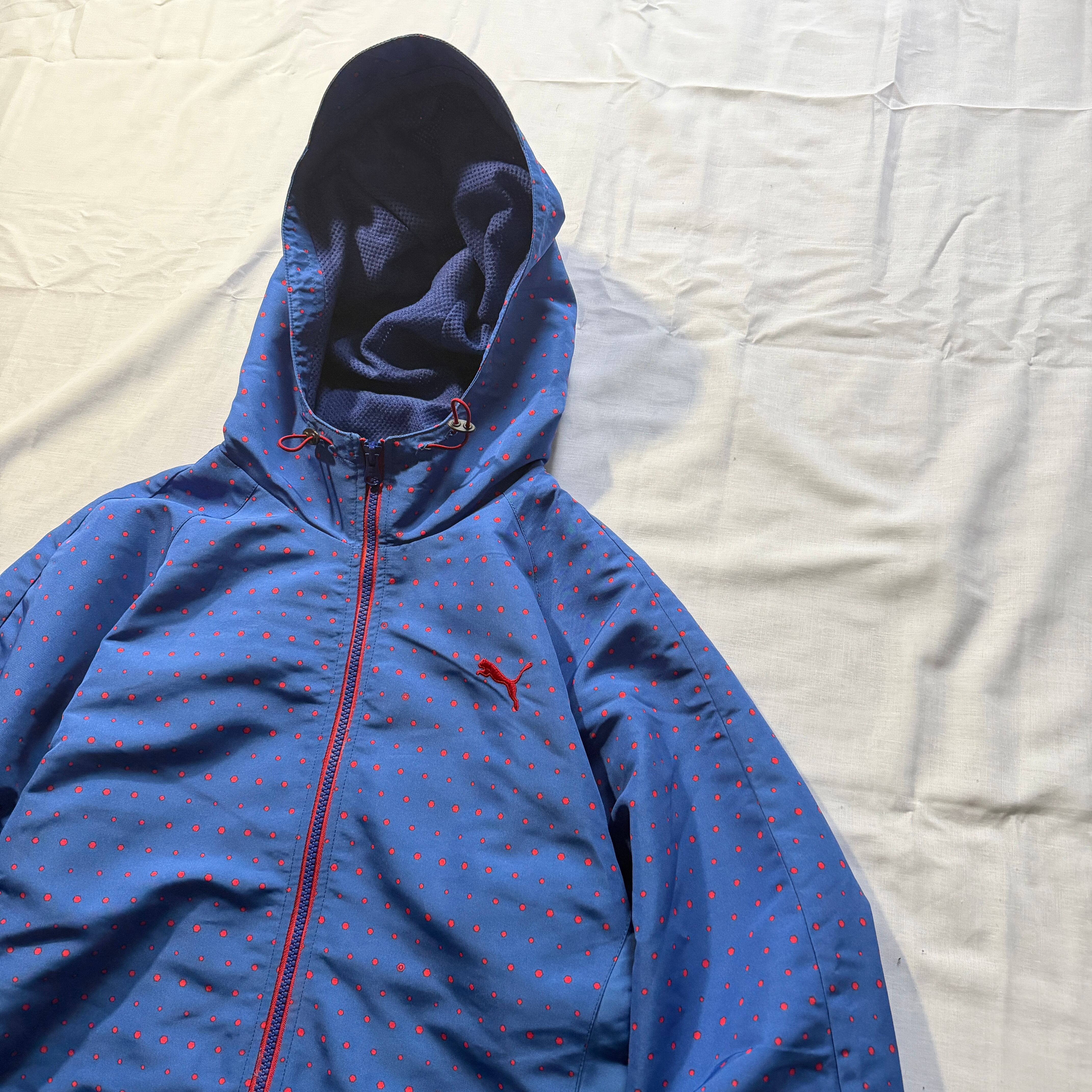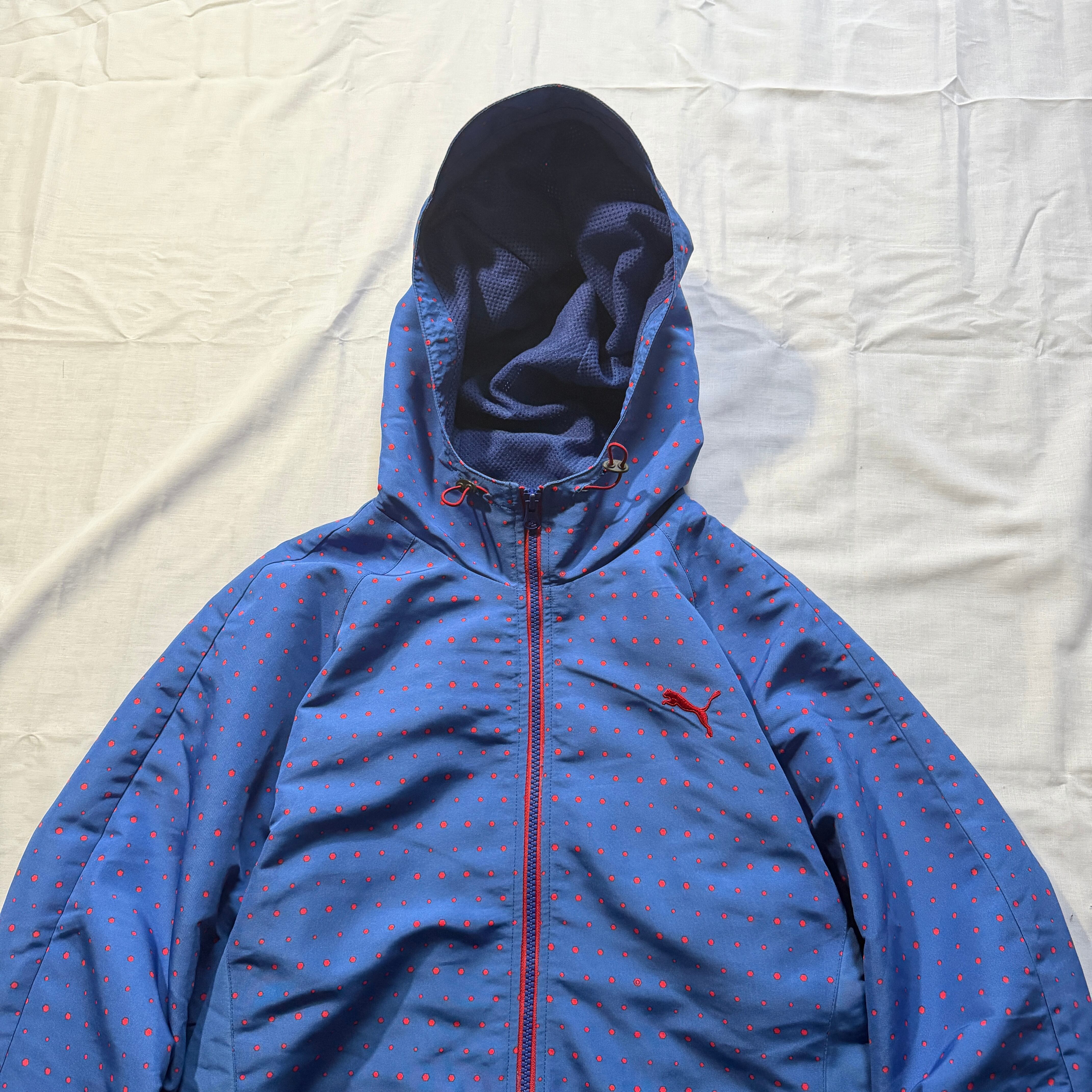 2000's "PUMA" nylon jacket zip up hoodie parka dot blue L / 2000年代 "プーマ" ナイロンジャケット ジップアップ フーディー パーカー ドット柄 水玉 ブルー