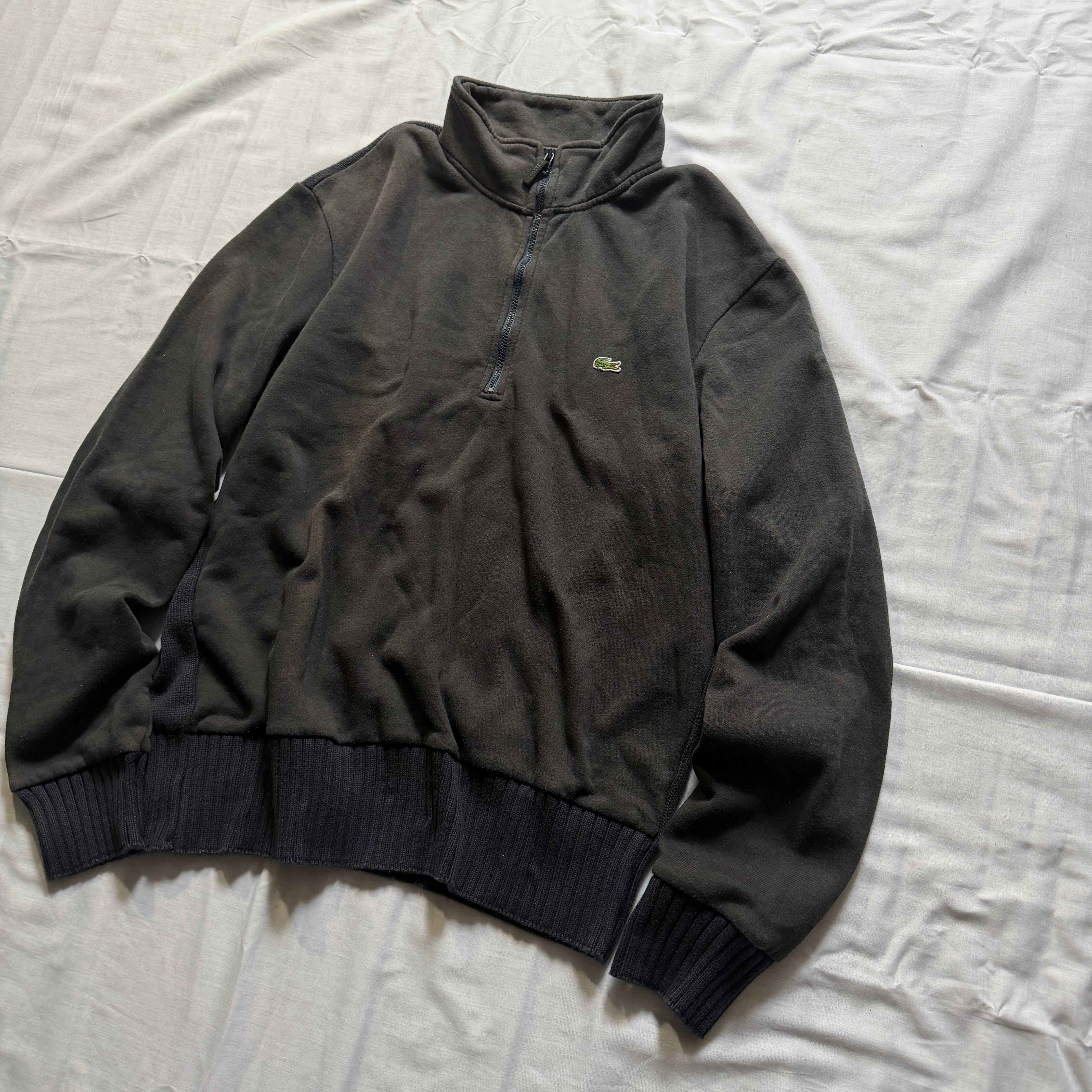 2000's "LACOSTE" half zip sweat trainer black fade 5 / 2000年代 "ラコステ" ハーフジップ スウェット トレーナー ブラック フェード 褪色