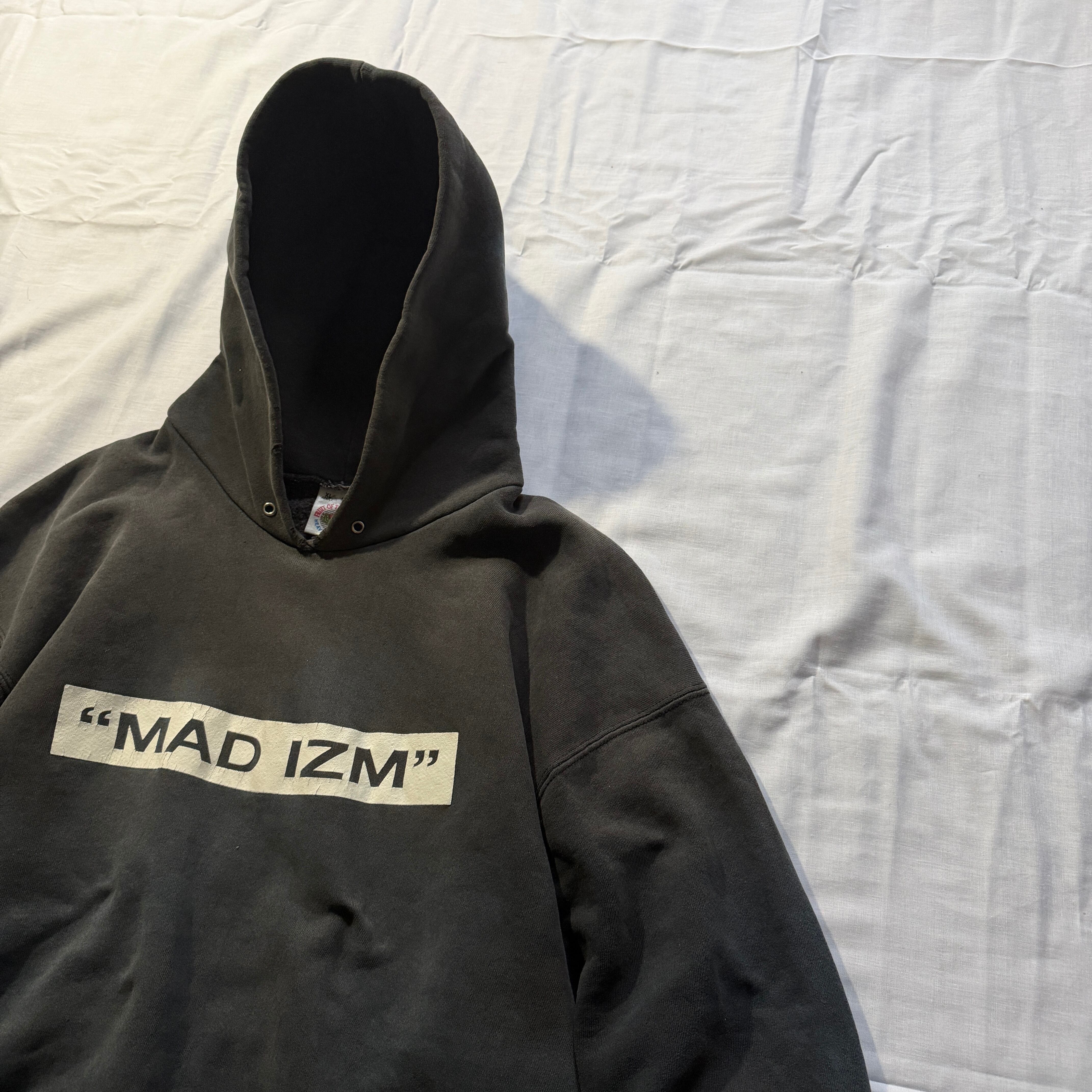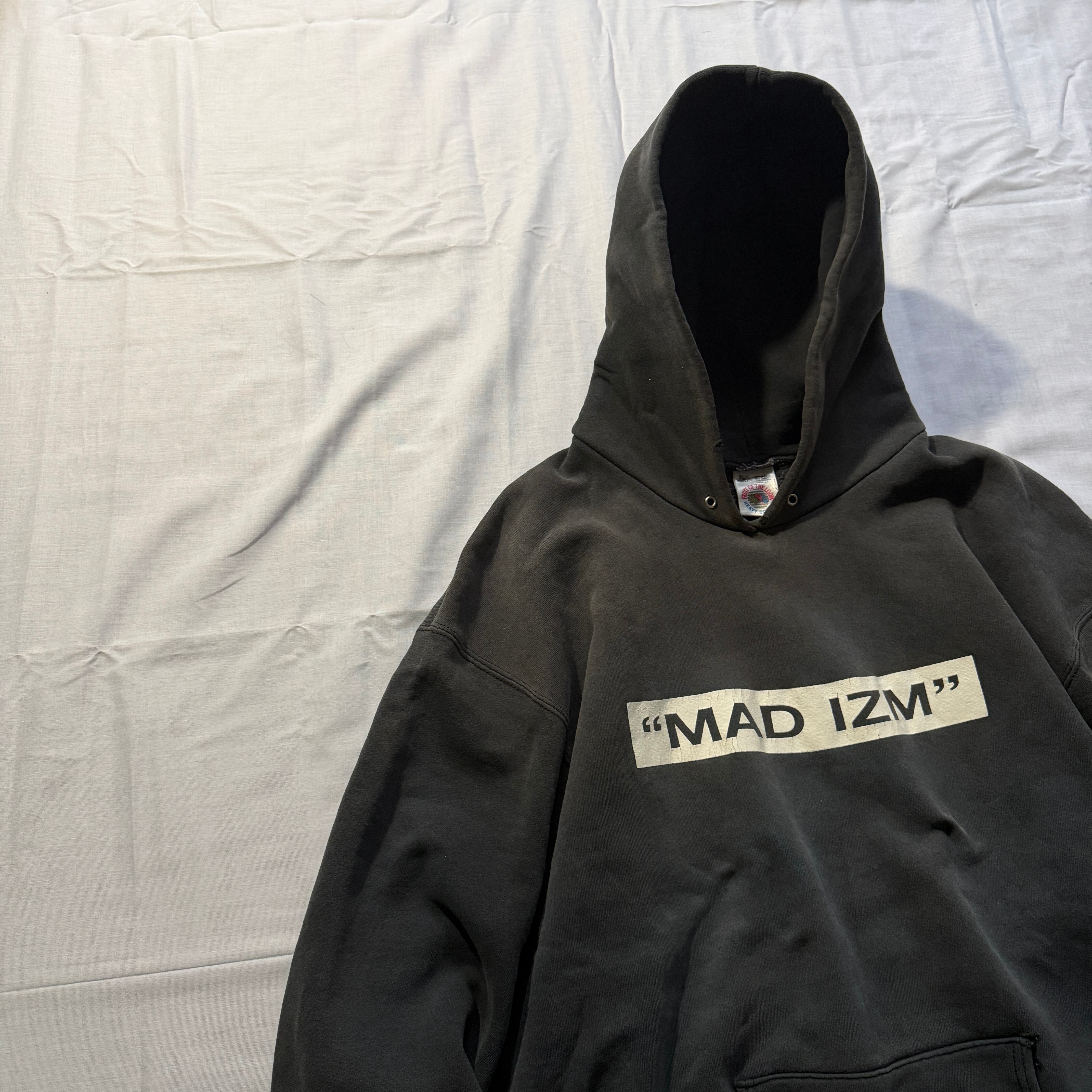 1990's "FRUITS OF THE LOOM" channel live MAD IZM hoodie parka black fade XL / 90年代 "フルーツオブザルーム" チャンネルライブ マッドイズム フーディー パーカー ブラック フェード 褪色