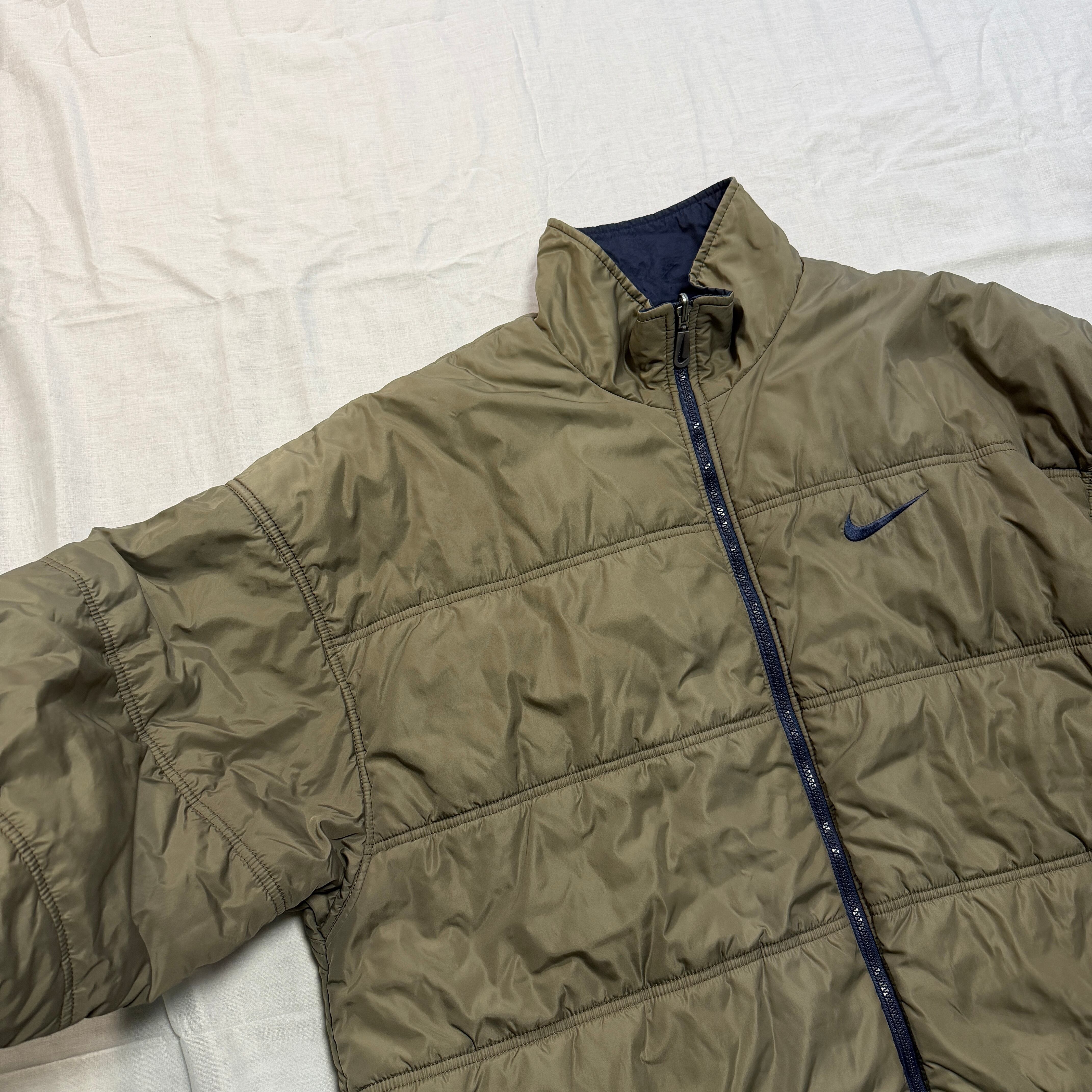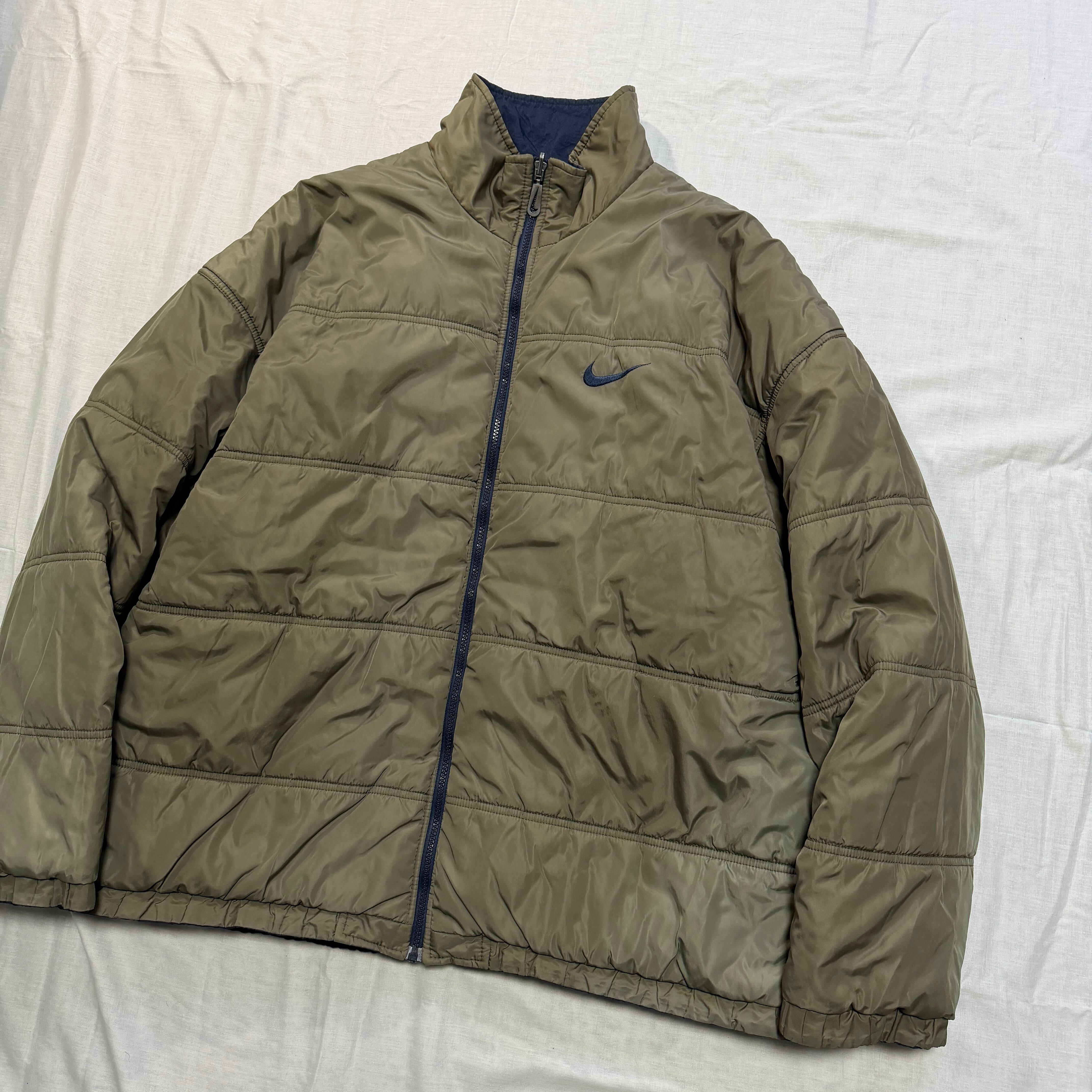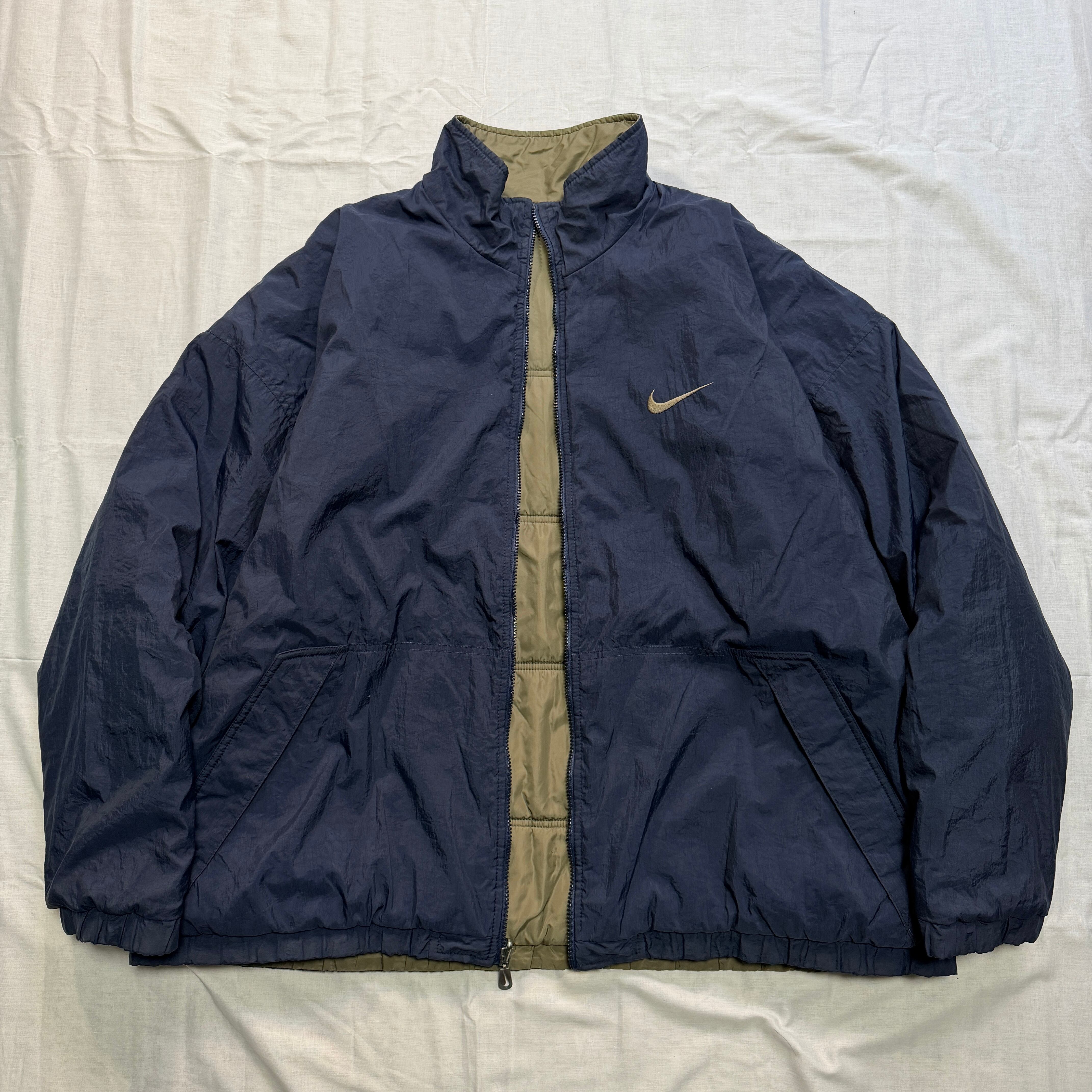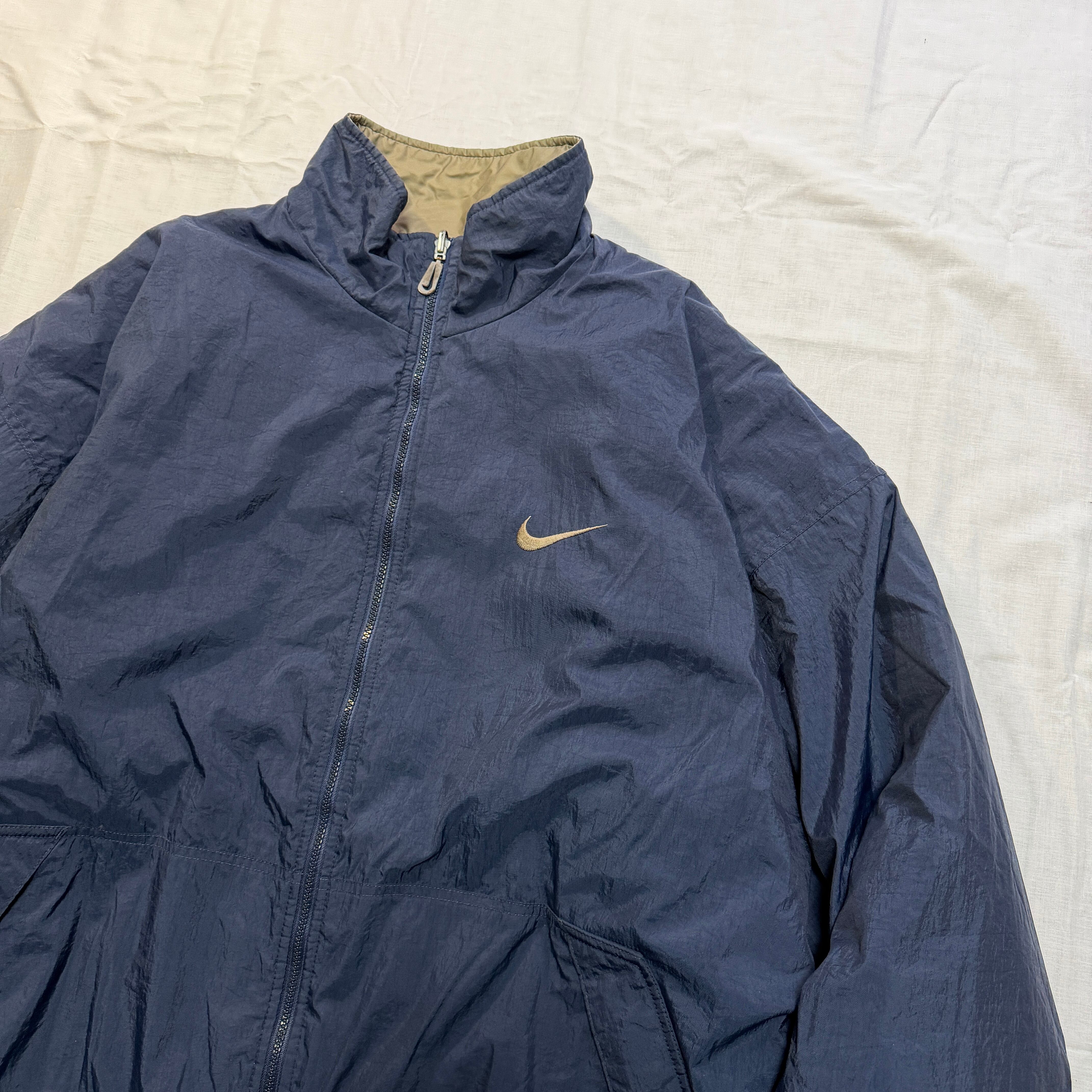 1990's "NIKE" reversible nylon jacket zip up swoosh XXL / 90年代 "ナイキ" リバーシブル ナイロン ジャケット ジップアップ スウッシュ 中綿 銀タグ
