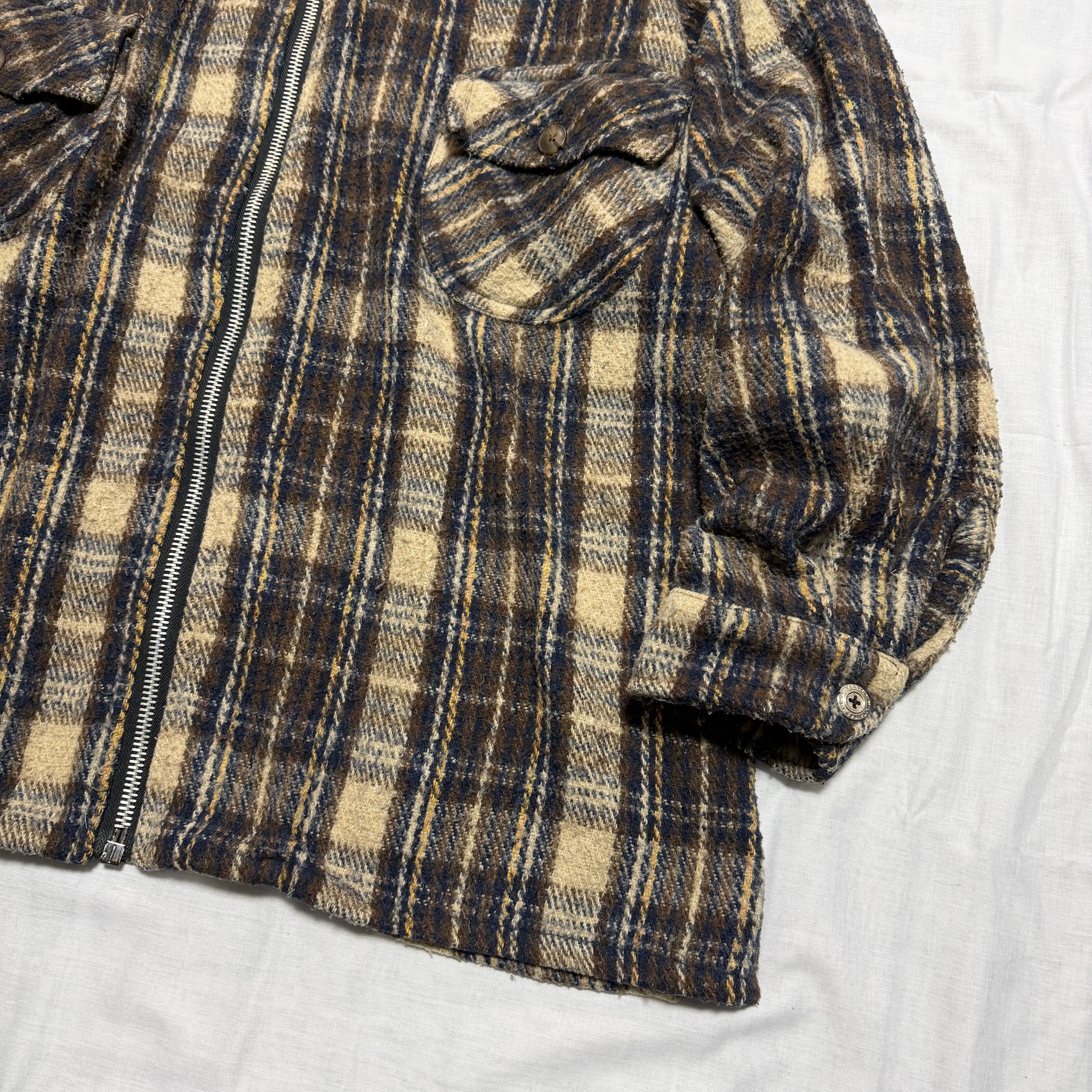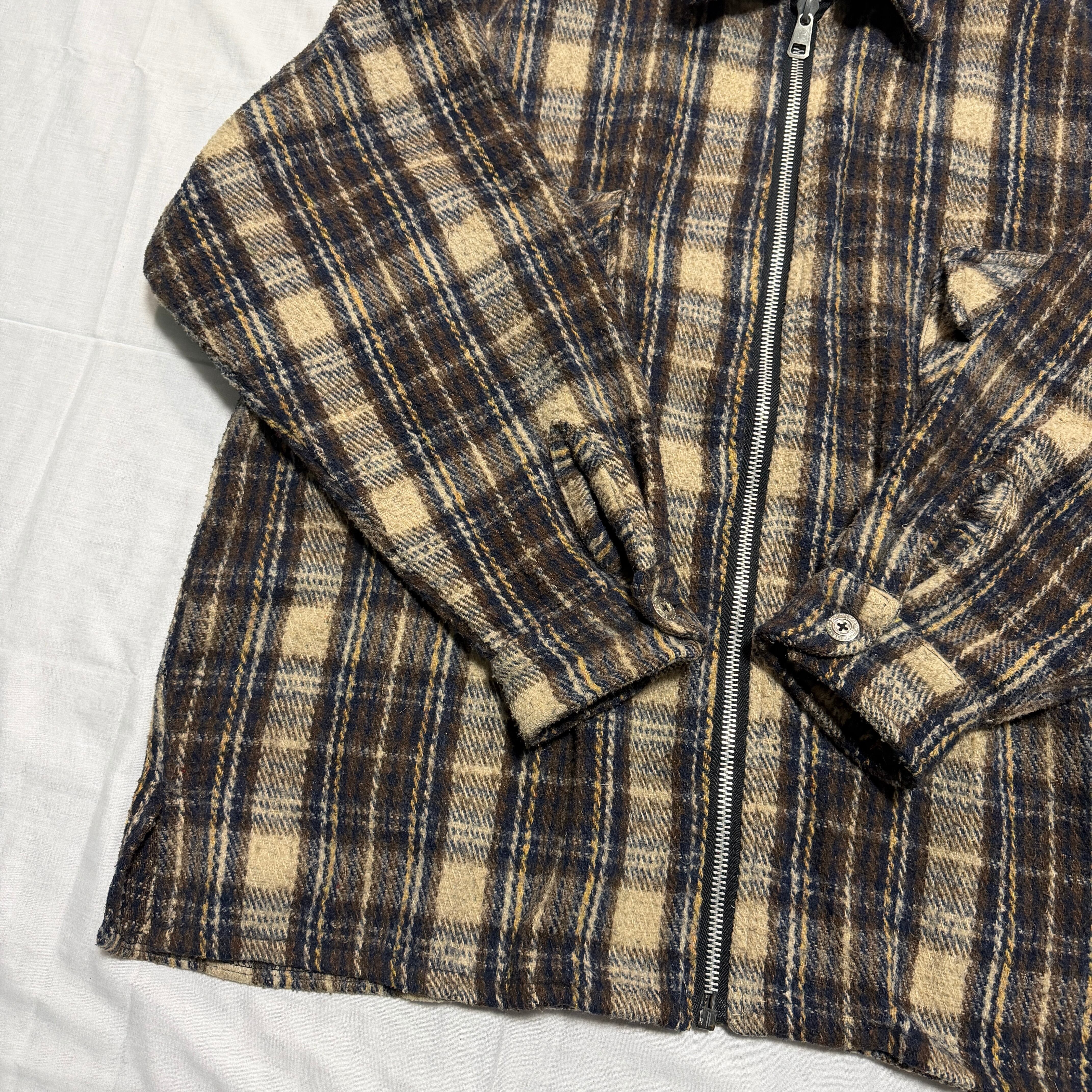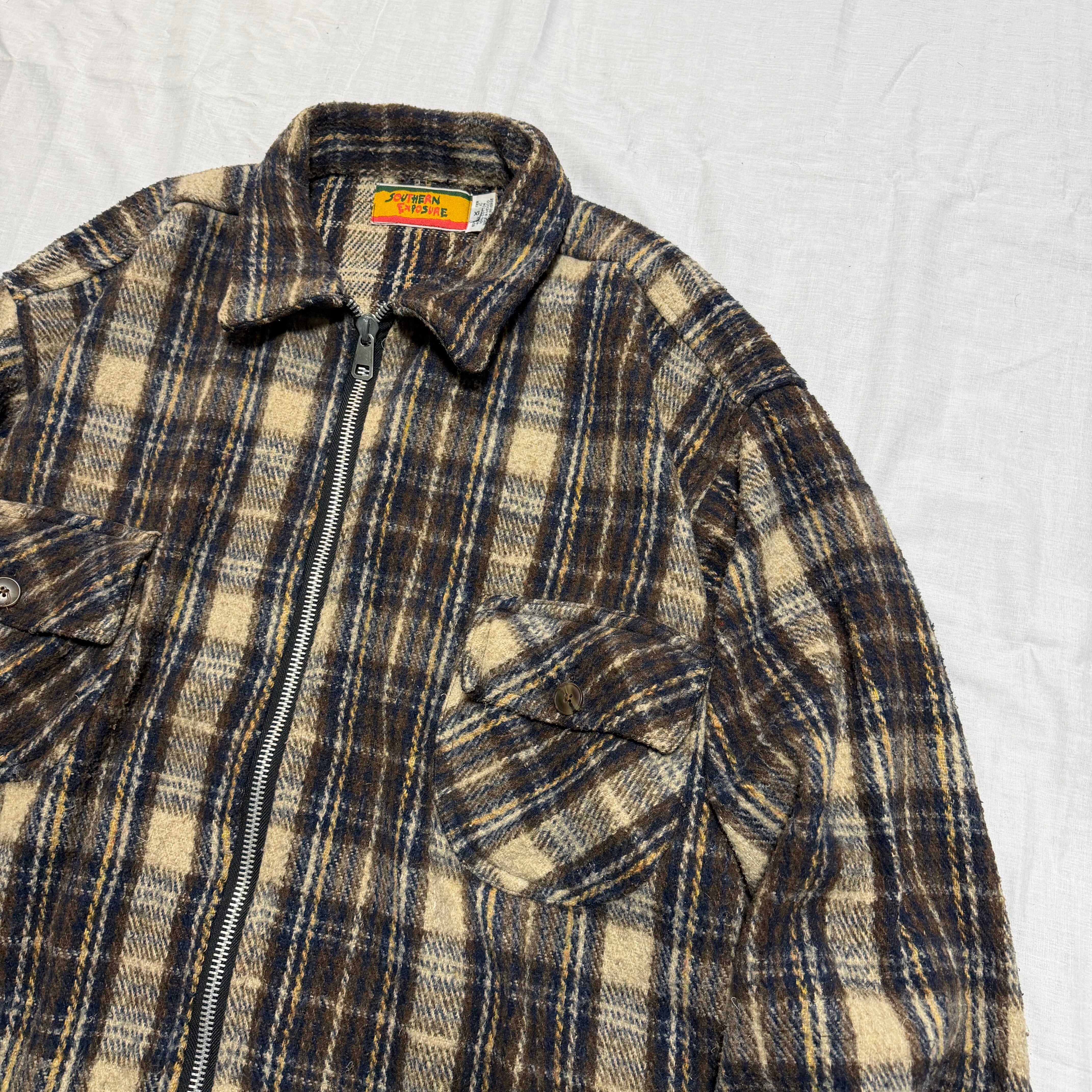 Made in Mexico 1990's "SOUTHERN EXPOSURE" CPO jacket check zip up brown IDEAL XL / メキシコ製 90年代 "サザンエクスポージャー" ジャケット ジップアップ ブラウン アイディール