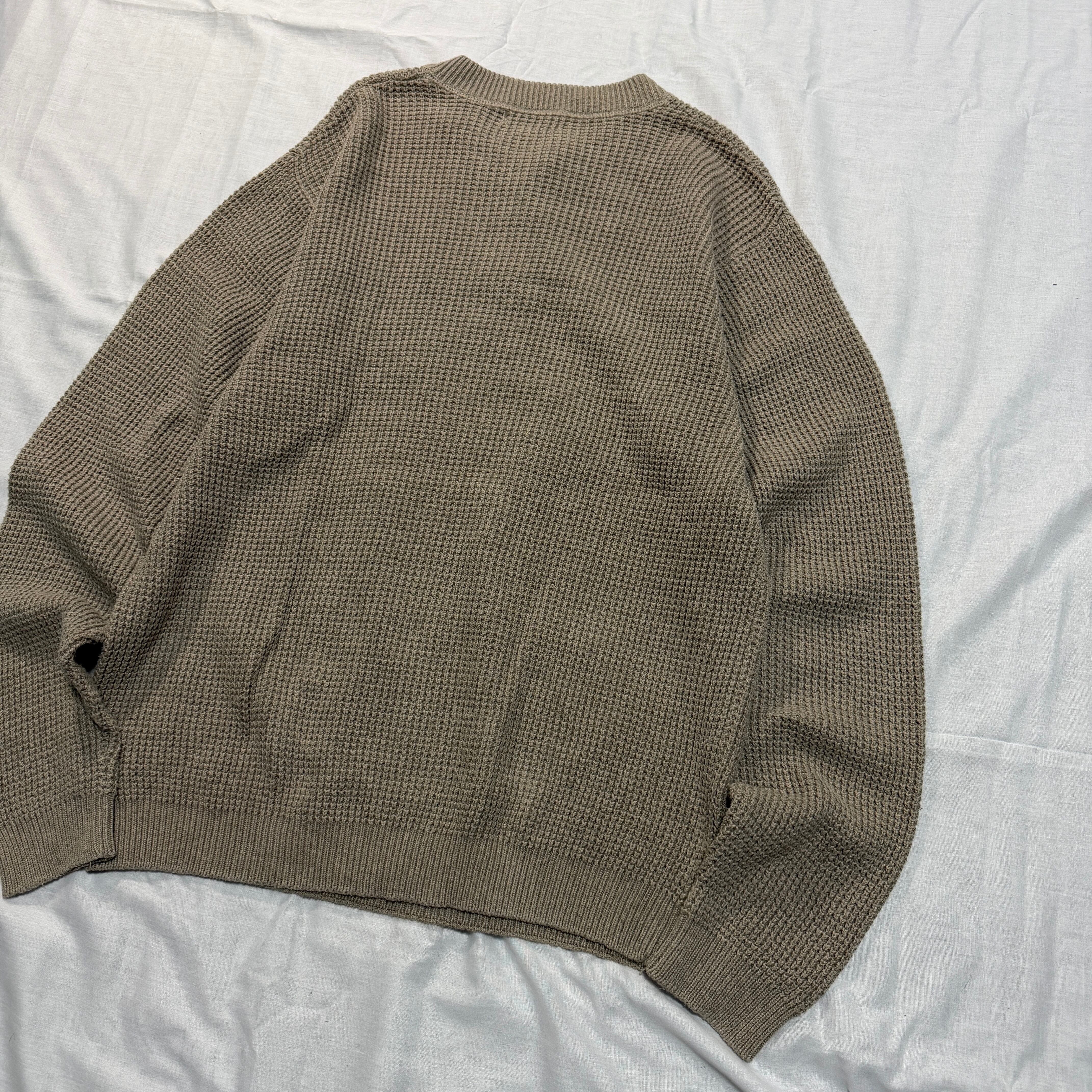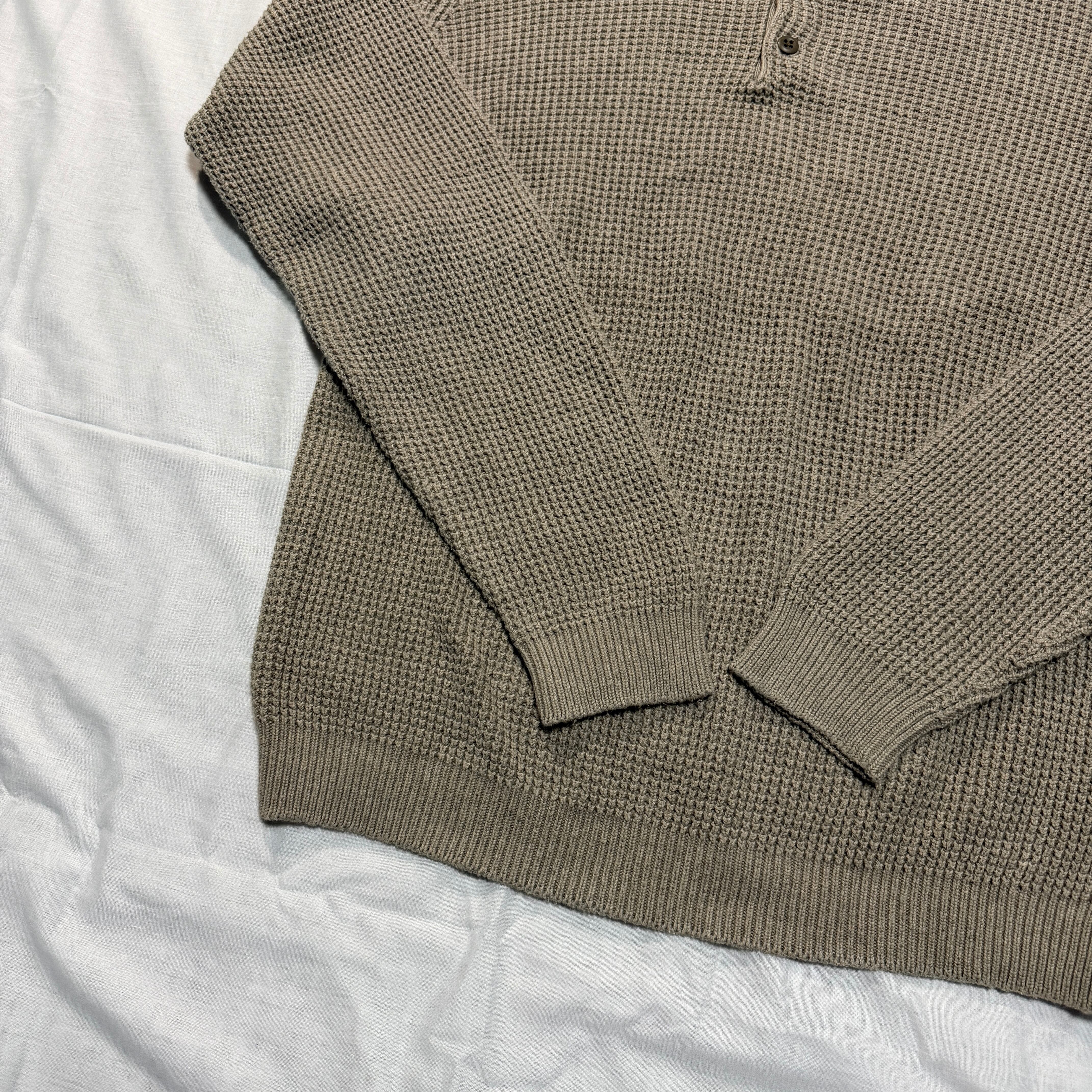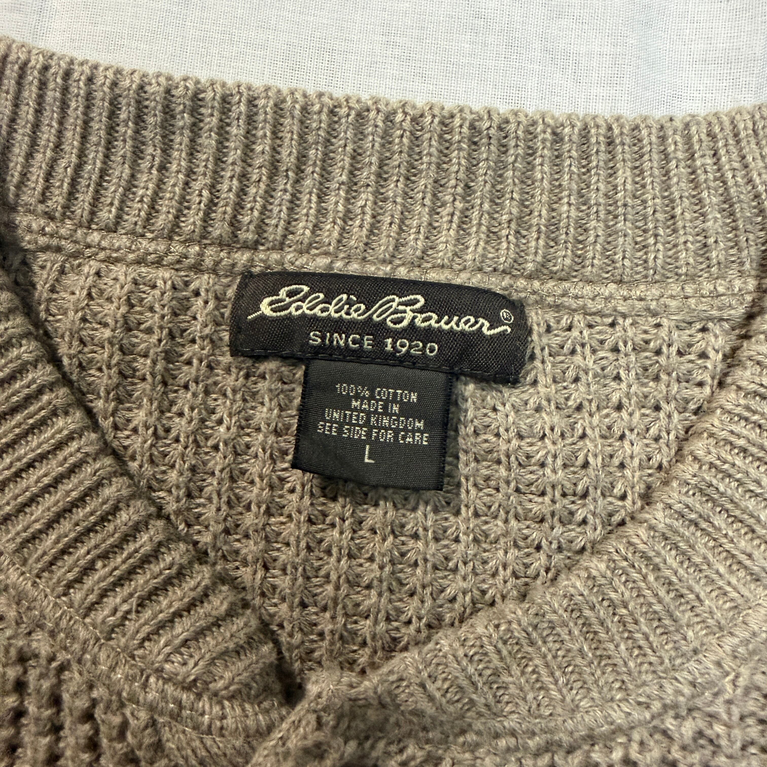 Made in UK 1990's "Eddie Bauer" cotton knit sweater henry neck beige L / イギリス製 90年代 "エディーバウアー" コットンニット セーター ヘンリーネック ベージュ