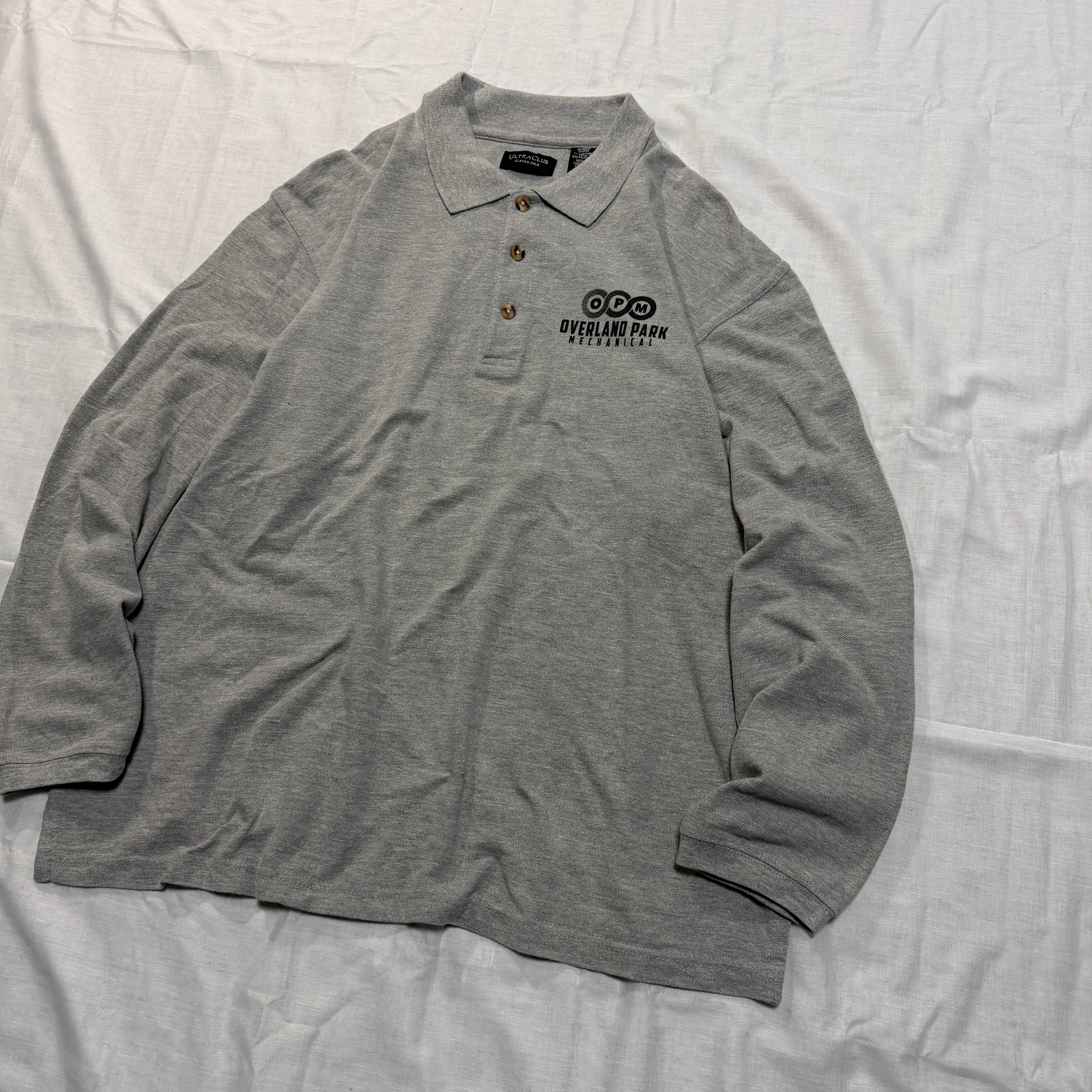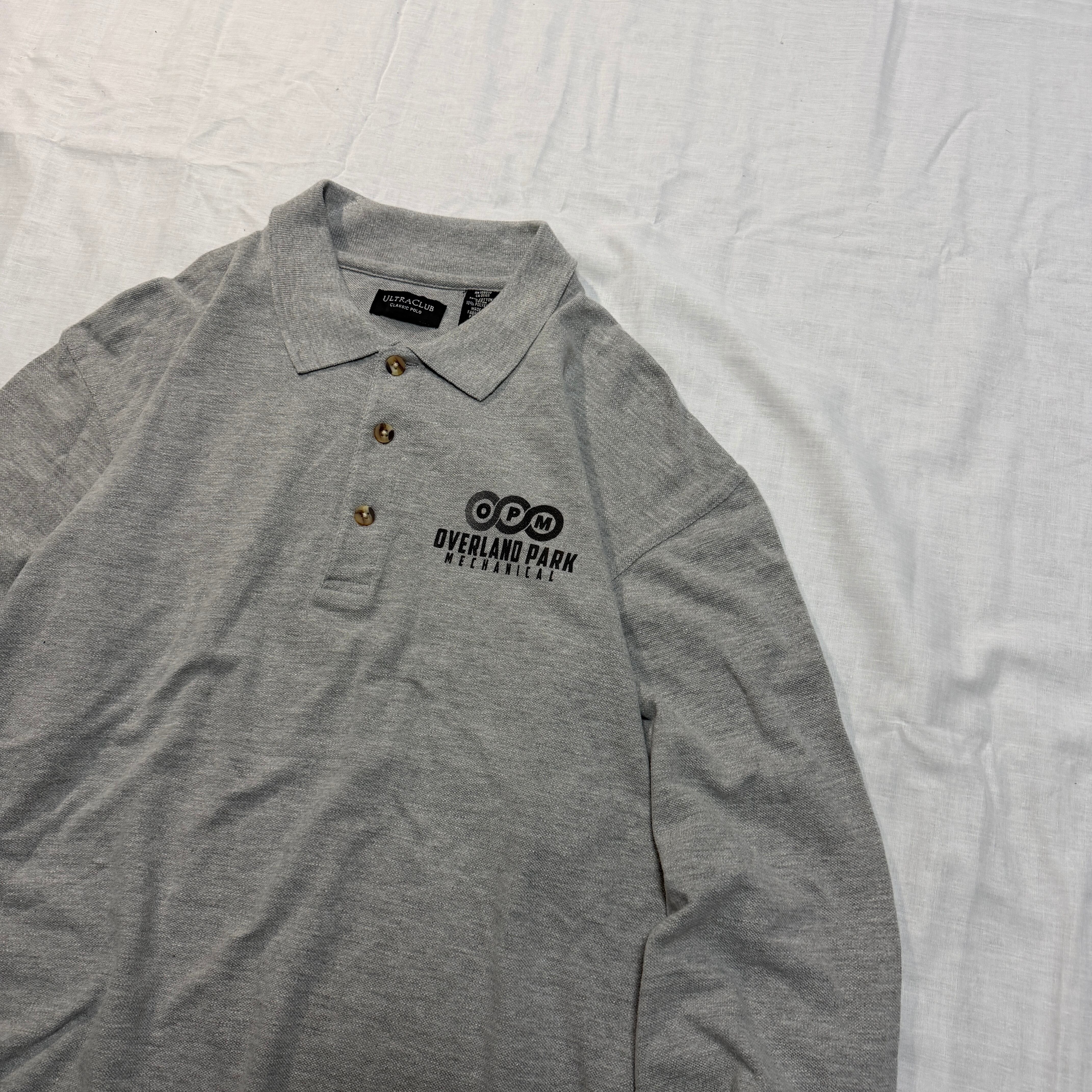 1990's OVERLAND PARK L/S polo shirt gray L / 90年代 オーバーランドパーク 長袖 ポロシャツ 企業 グレー