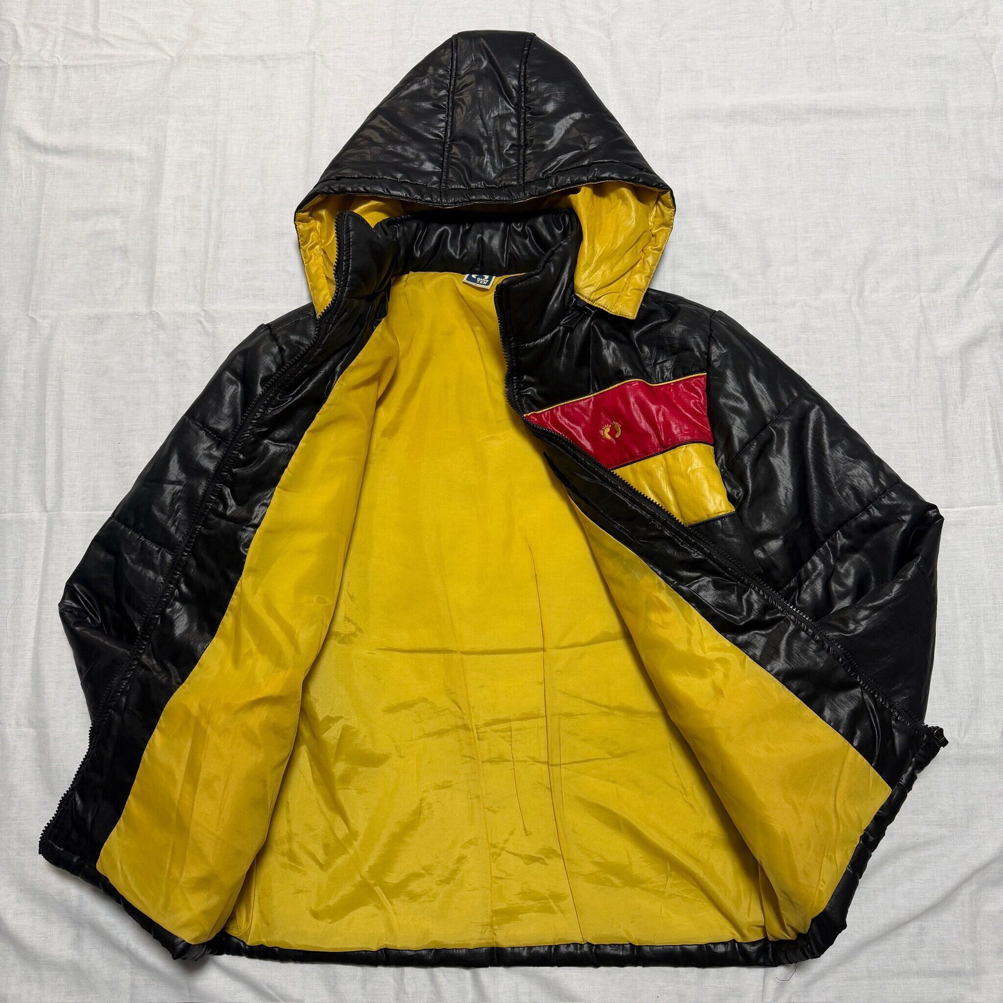 2000's "HANGTEN"nylon jacket hoodie parka black zip up L / 2000年代 "ハンテン" ナイロンジャケット 中綿 フーディー パーカー ブラック ジップアップ