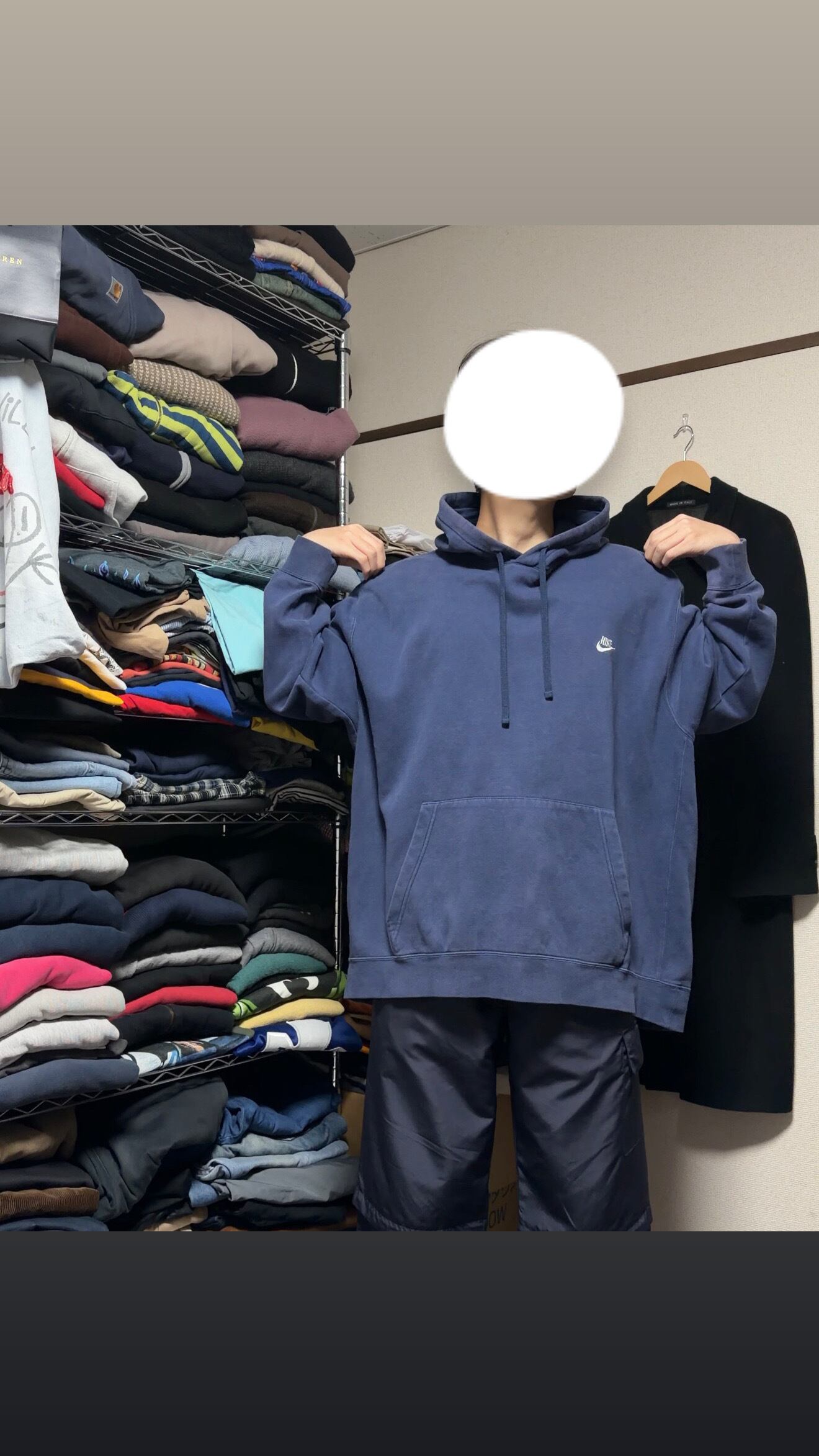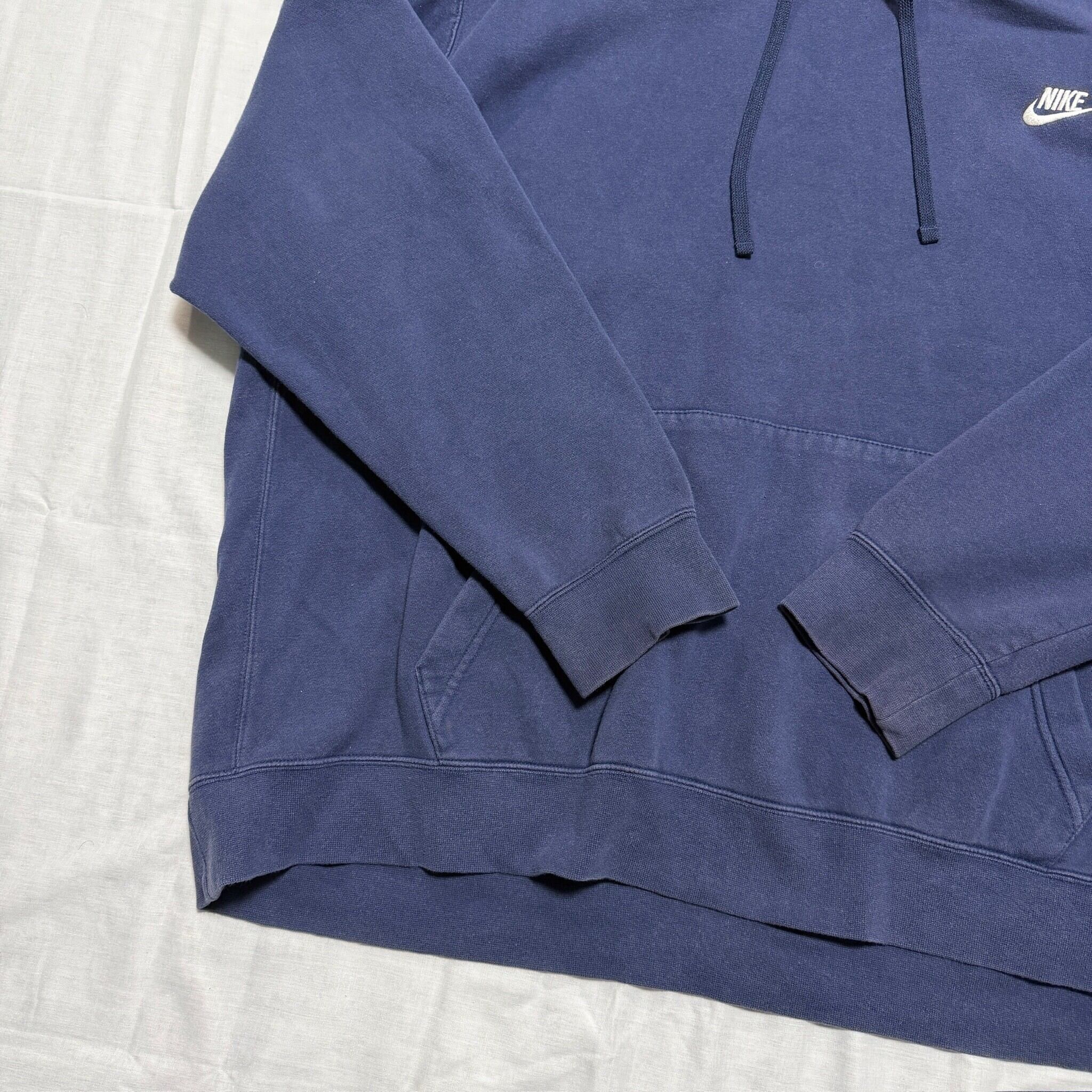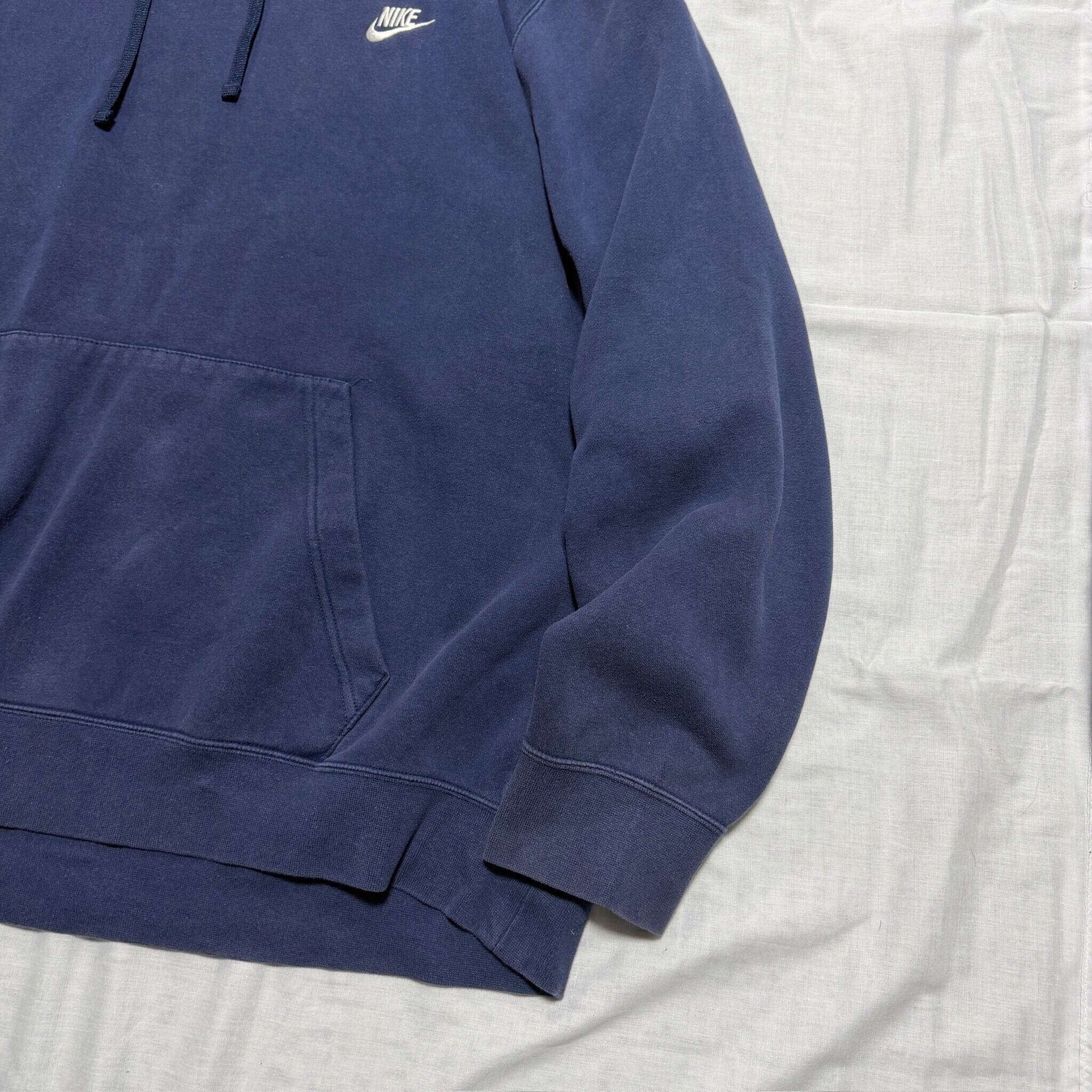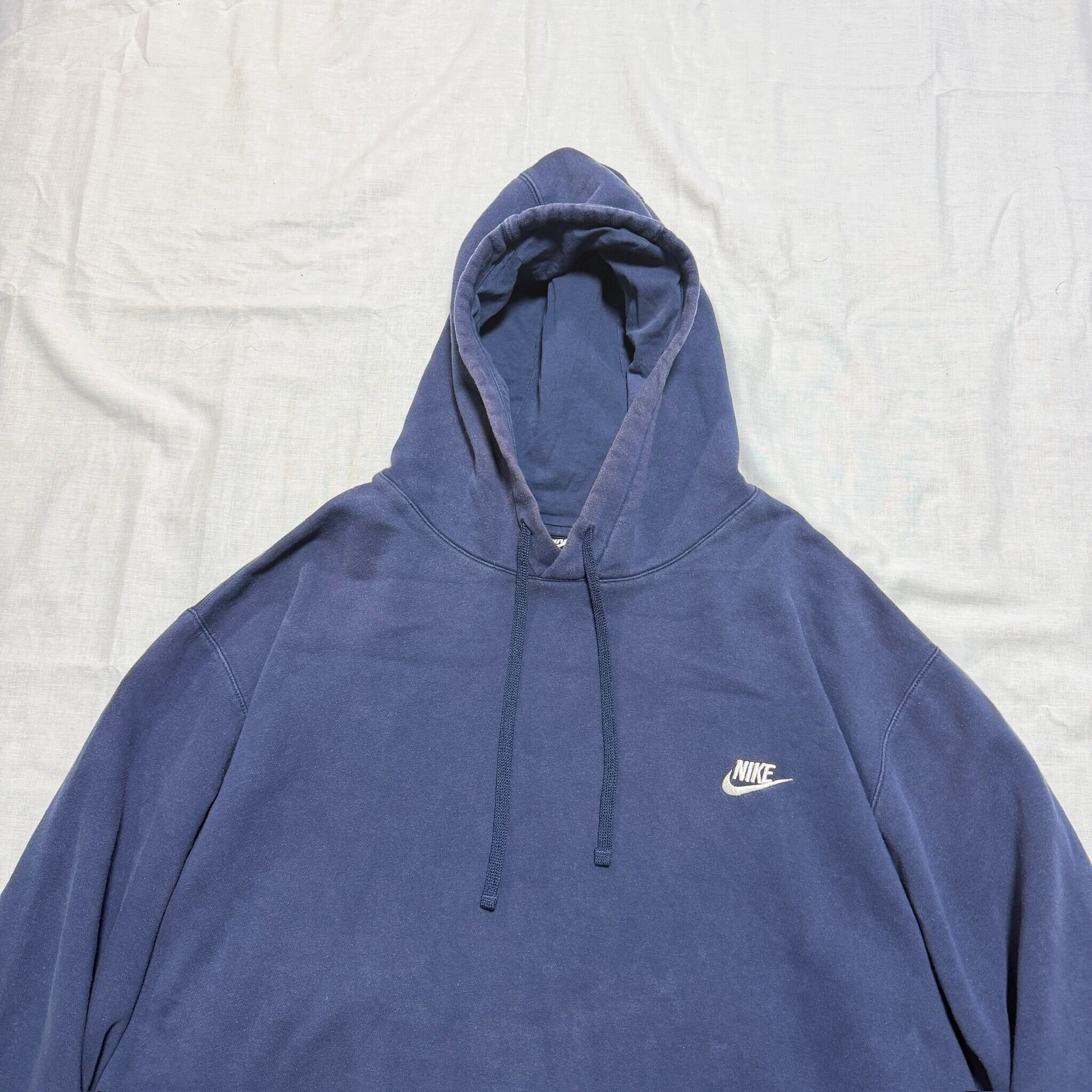 2000's "NIKE" hoodie parka sweat trainer swoosh Reverse Weave navy 4XL / 2000年代 "ナイキ" フーディー パーカー スウェット トレーナー スウッシュ 刺繍ロゴ リバースウィーブ型 ネイビー