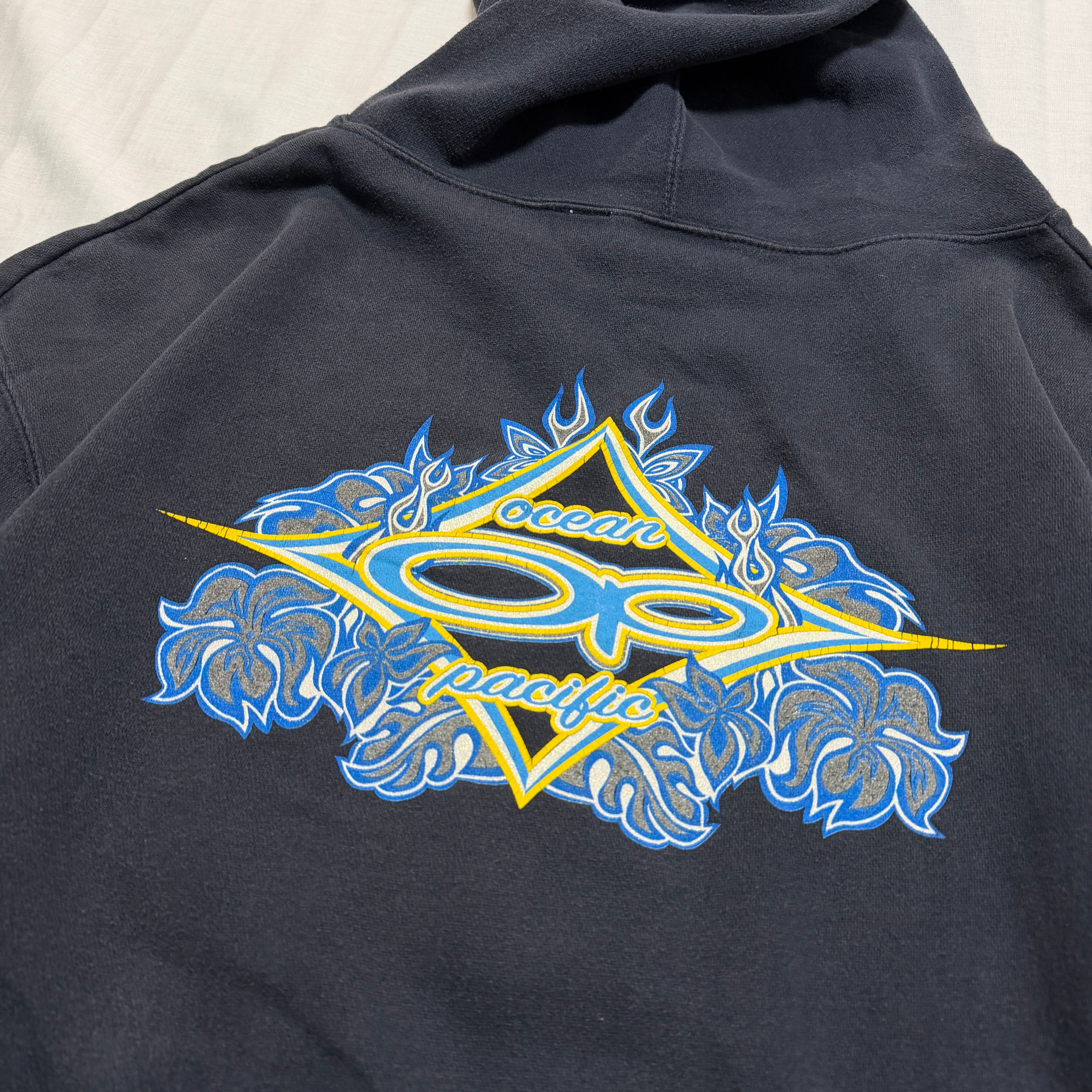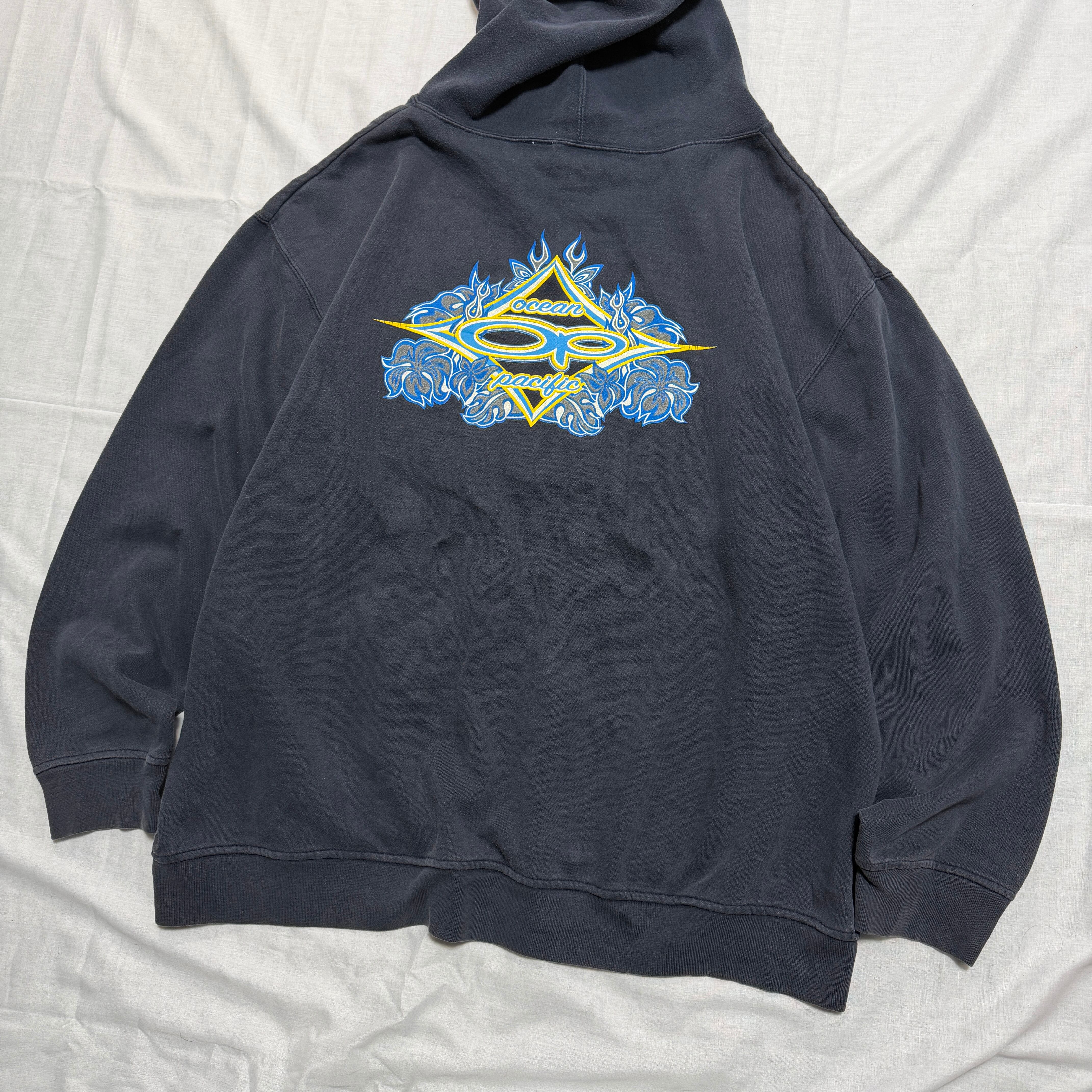 1990's~ "Ocean Pacific" hoodie parka sweat navy XL / 90年代〜 "オーシャンパシフィック" フーディー パーカー スウェット ネイビー 「センターロゴ」