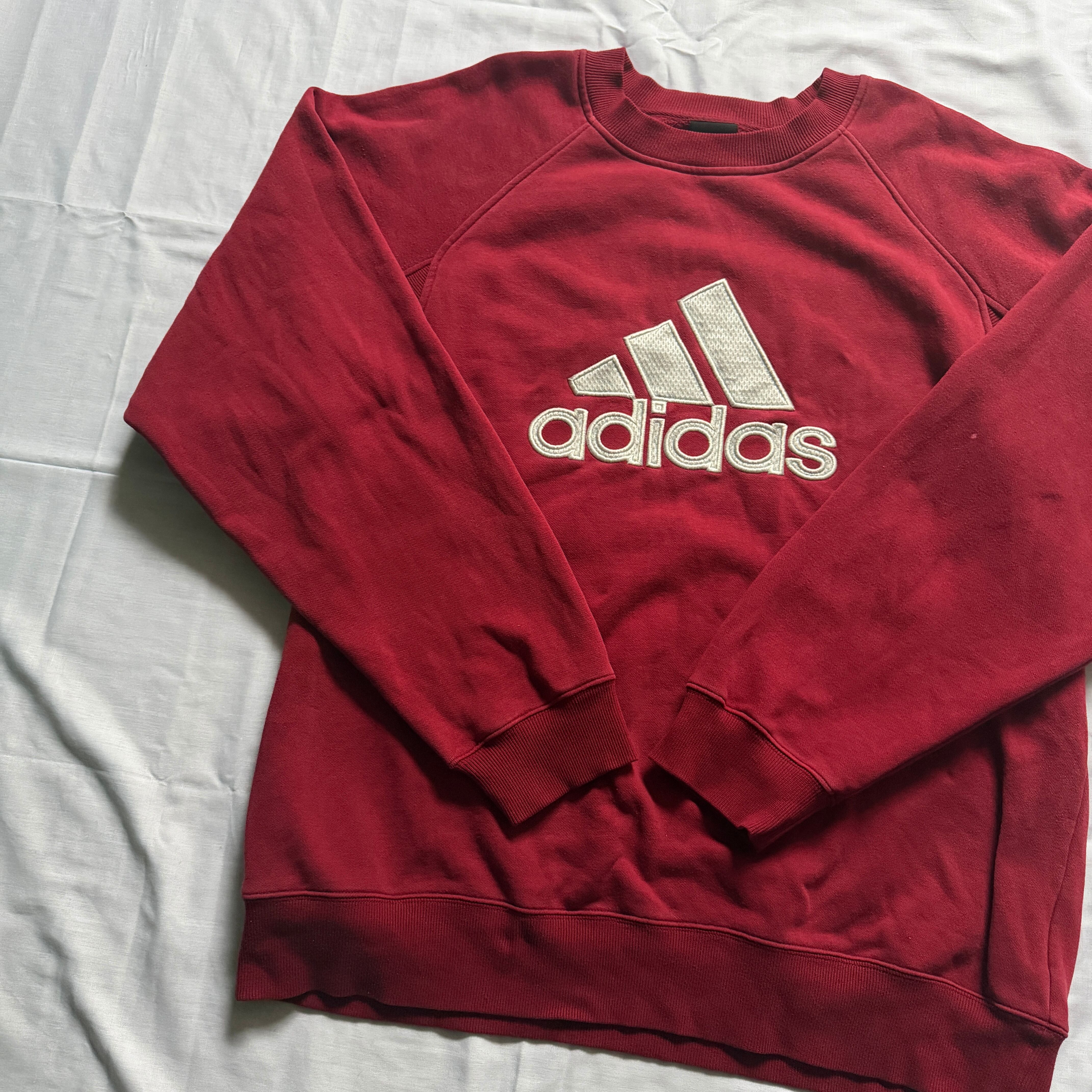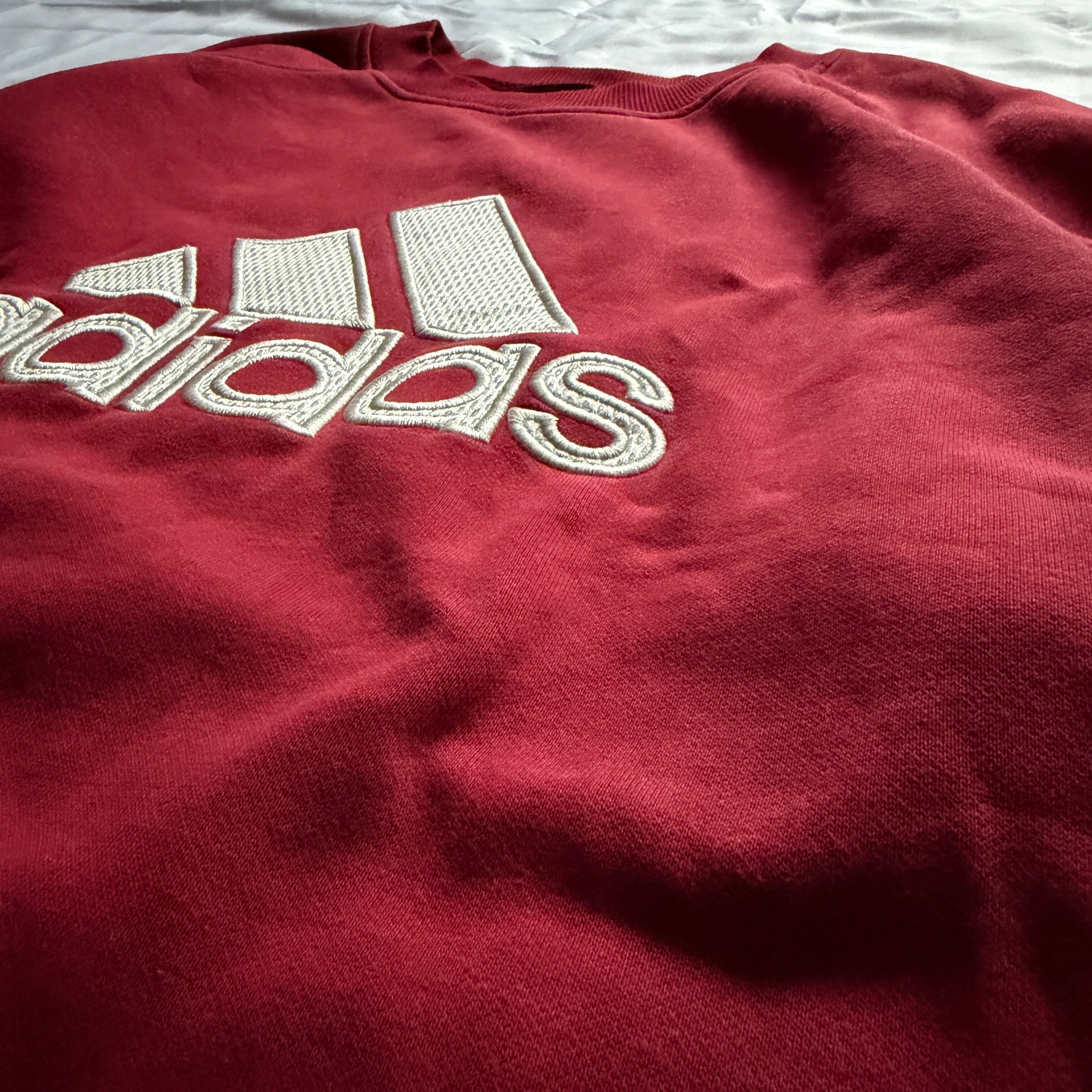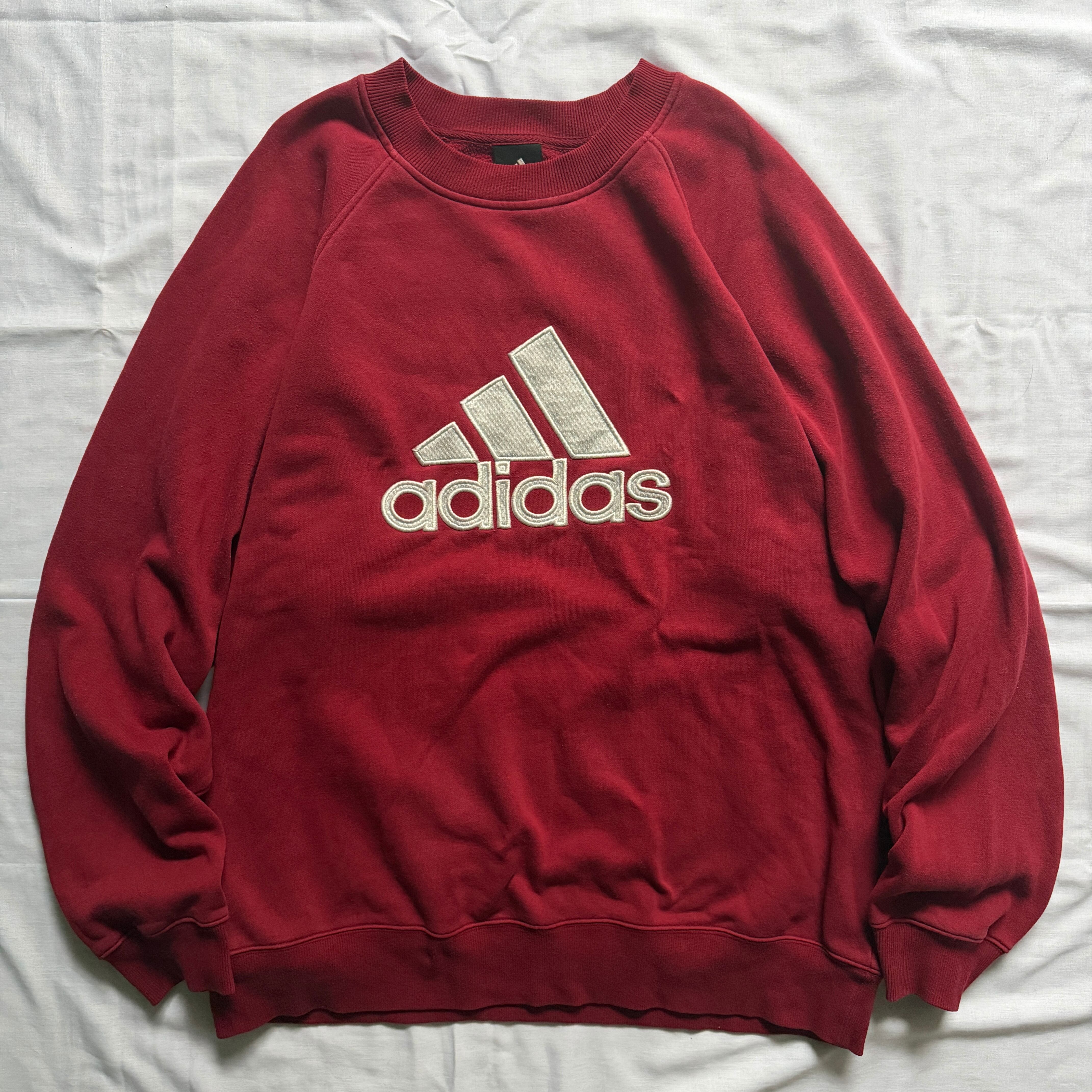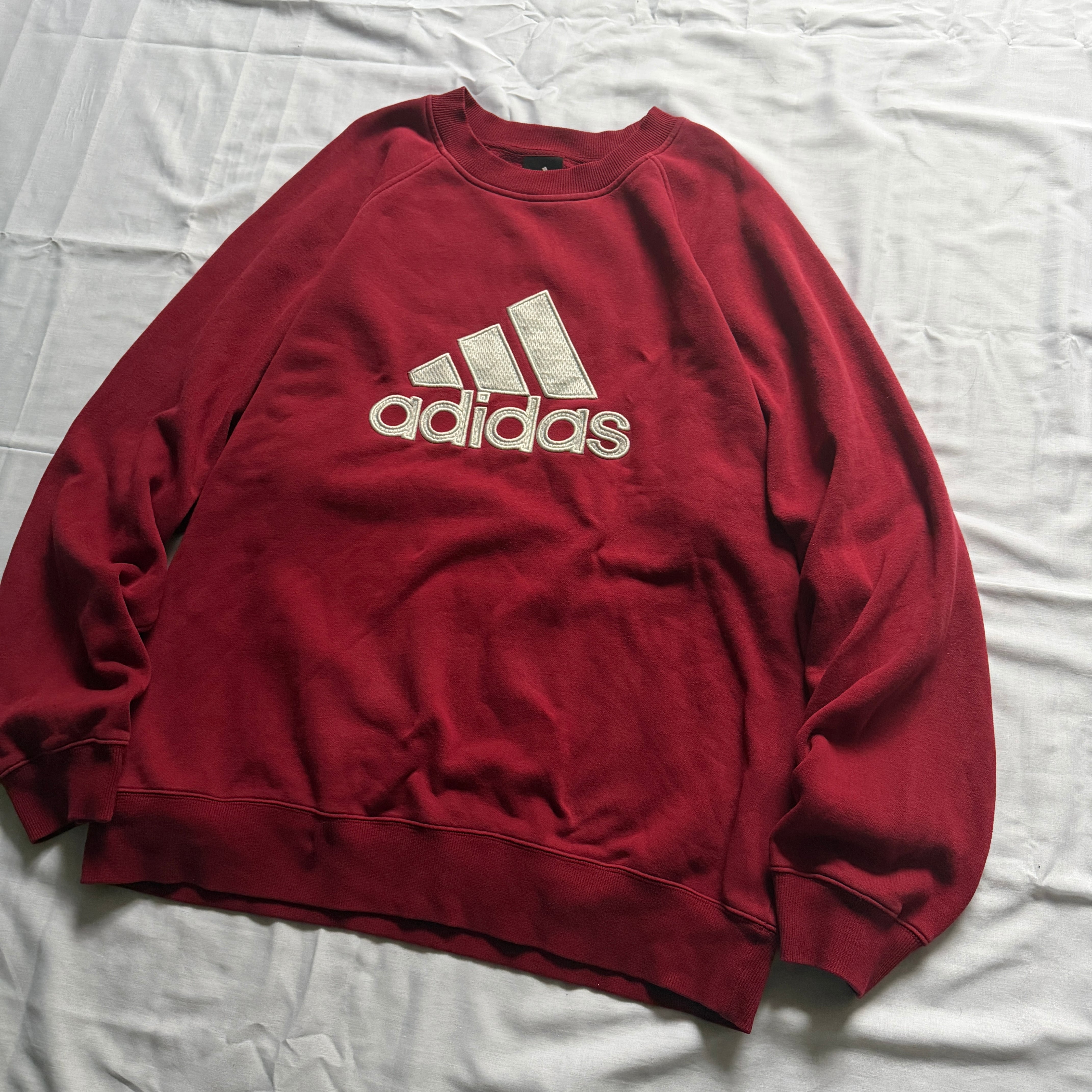 2000's "adidas" sweat trainer burgundy 4XL / 2000年代 "アディダス" スウェット トレーナー バーガンディ 「ロゴドン」