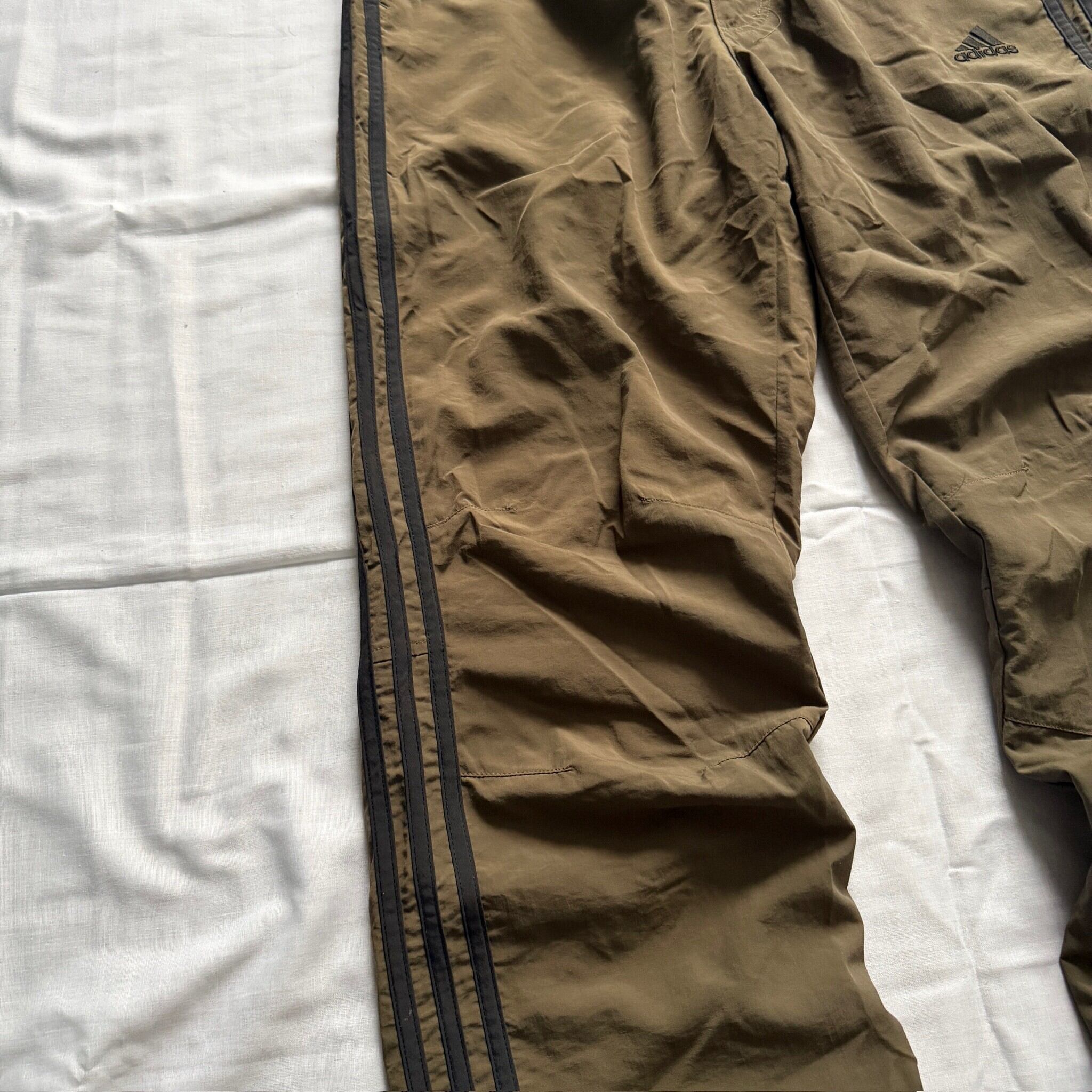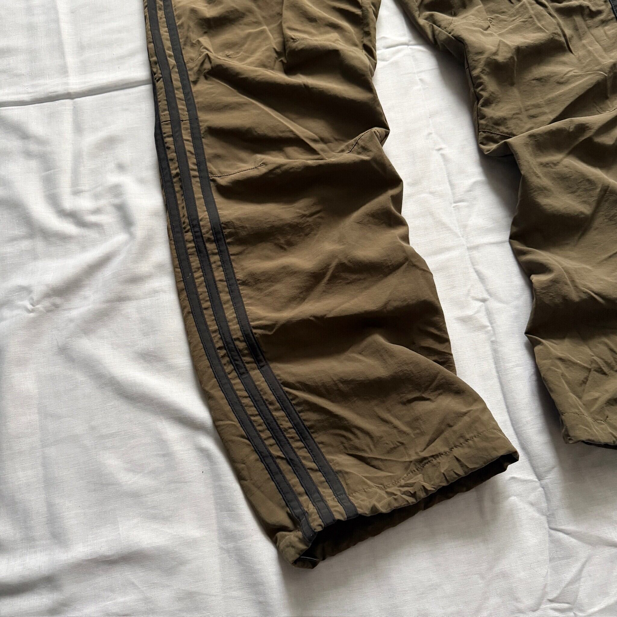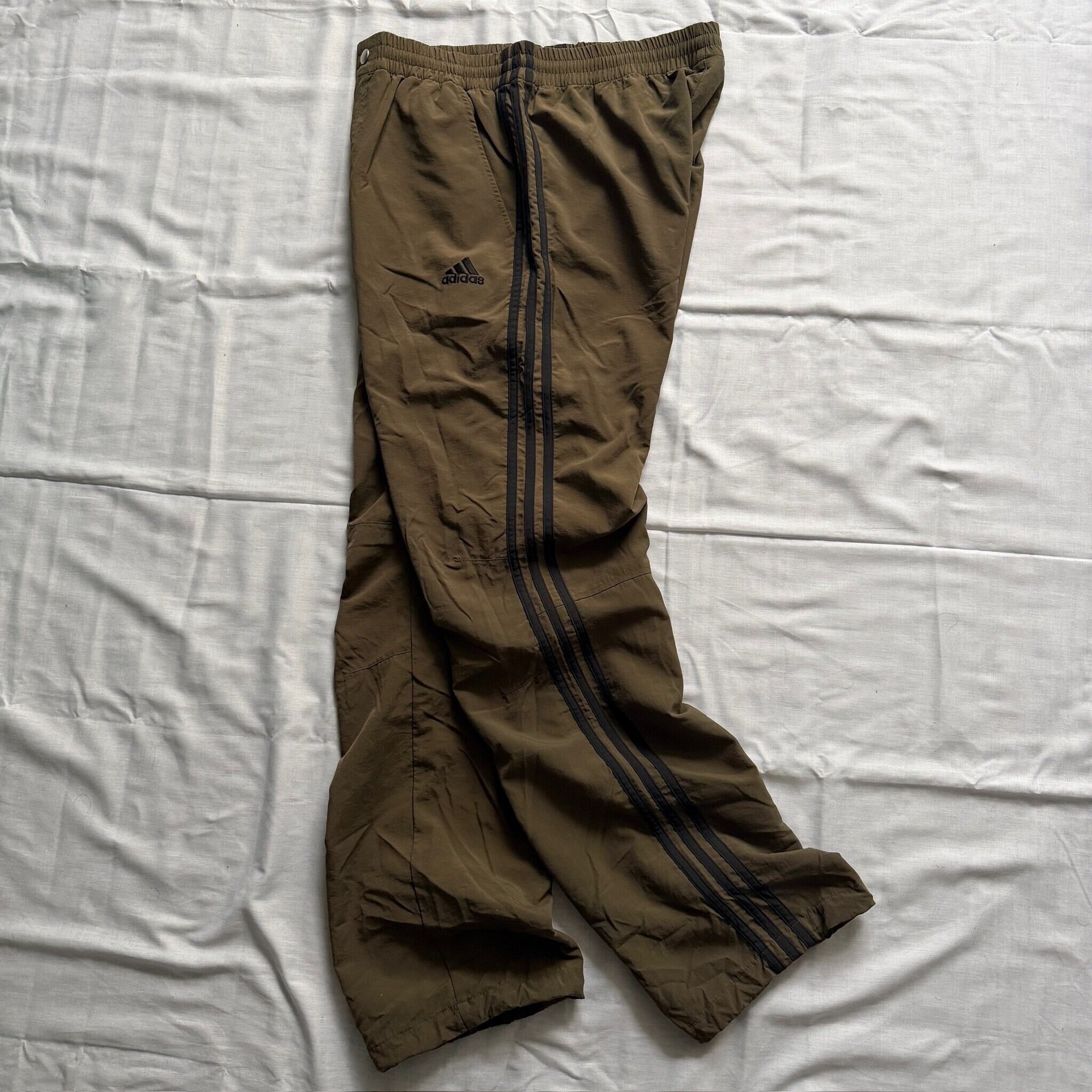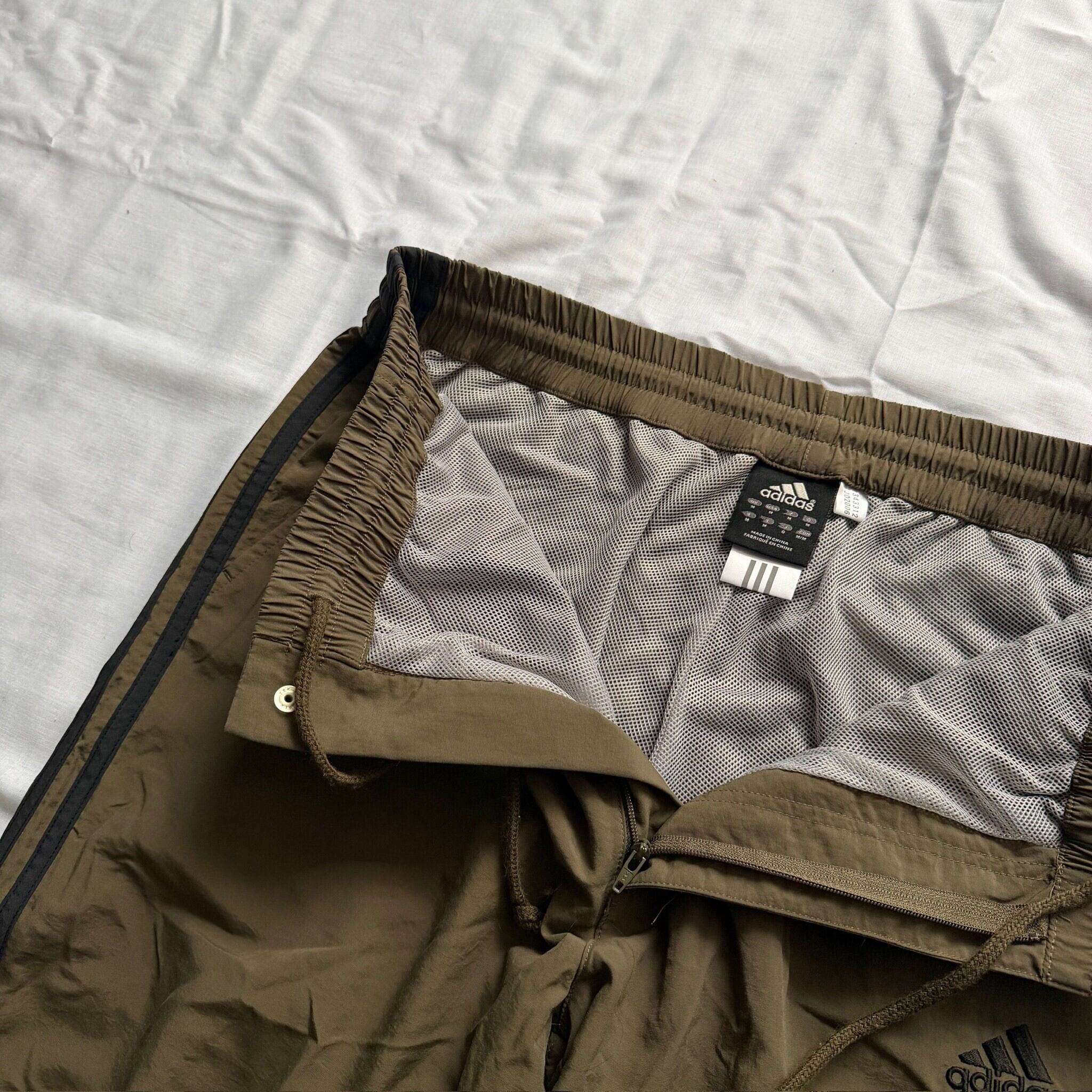 2000's "adidas" wide track pants nylon 3line khaki / 2000年代 "アディダス" ワイドトラックパンツ ナイロン 3ライン カーキ